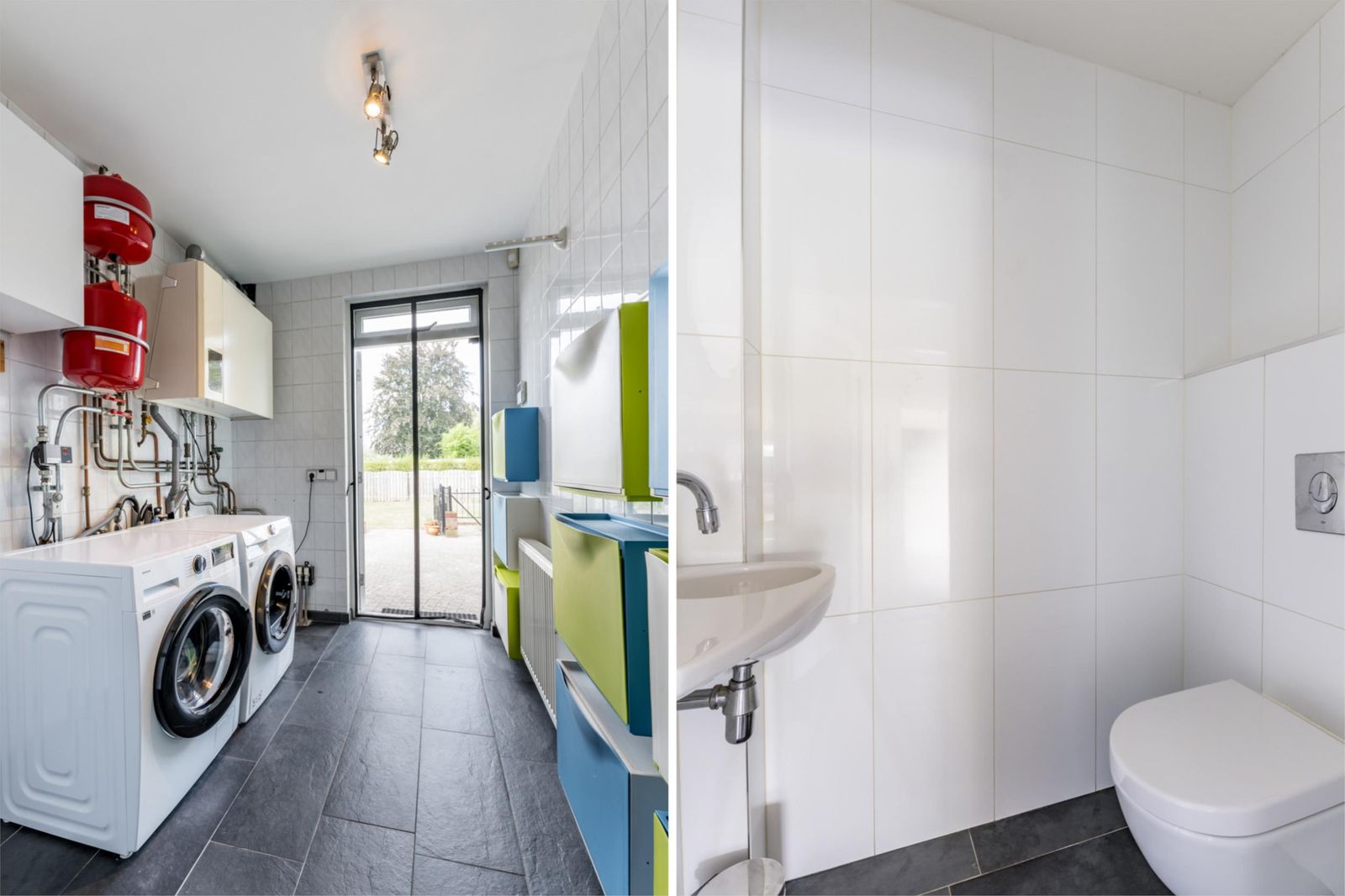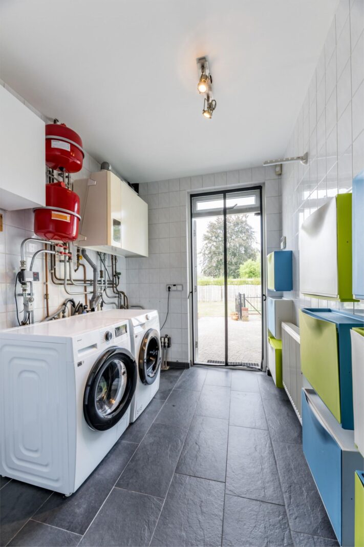 Vanuit de woonkeuken is er direct toegang tot de bijkeuken met toilet, cv en aansluitingen voor wasmachine en droger.