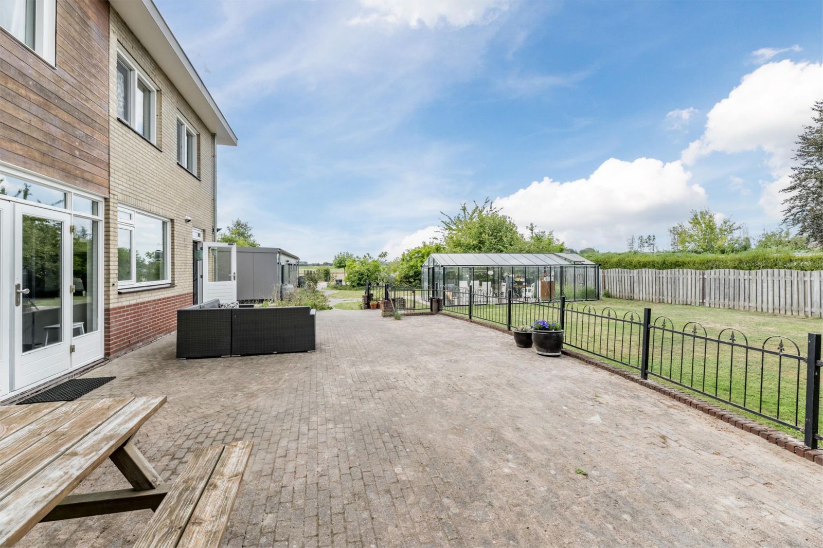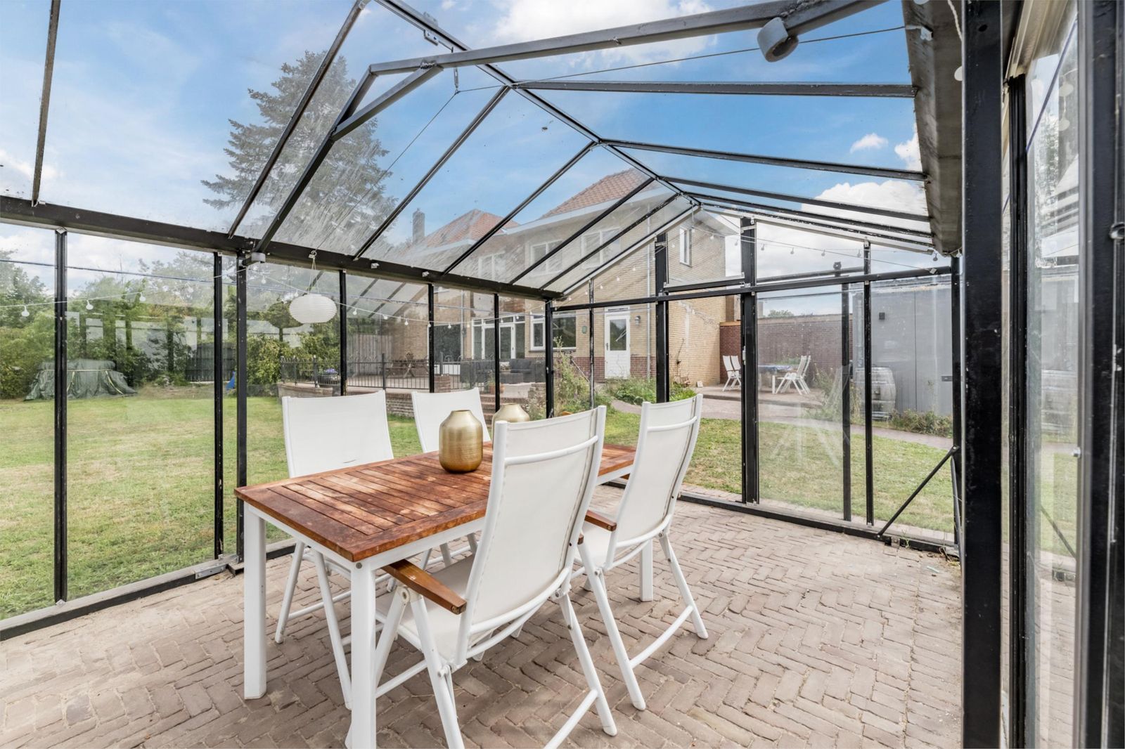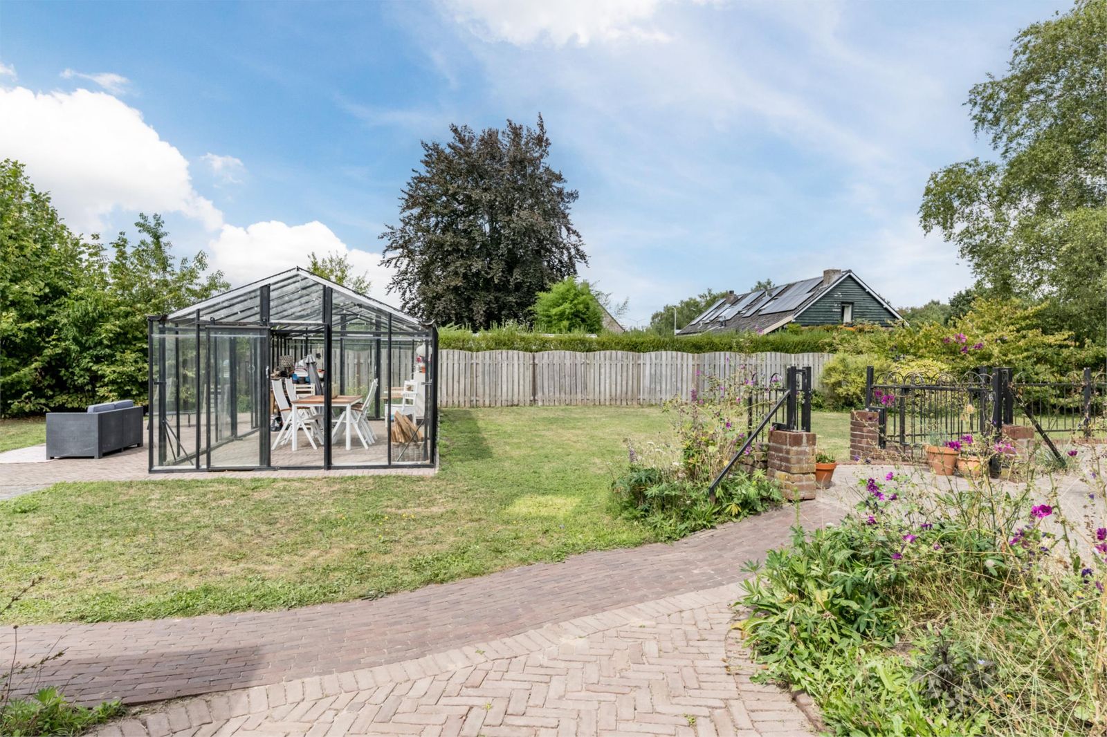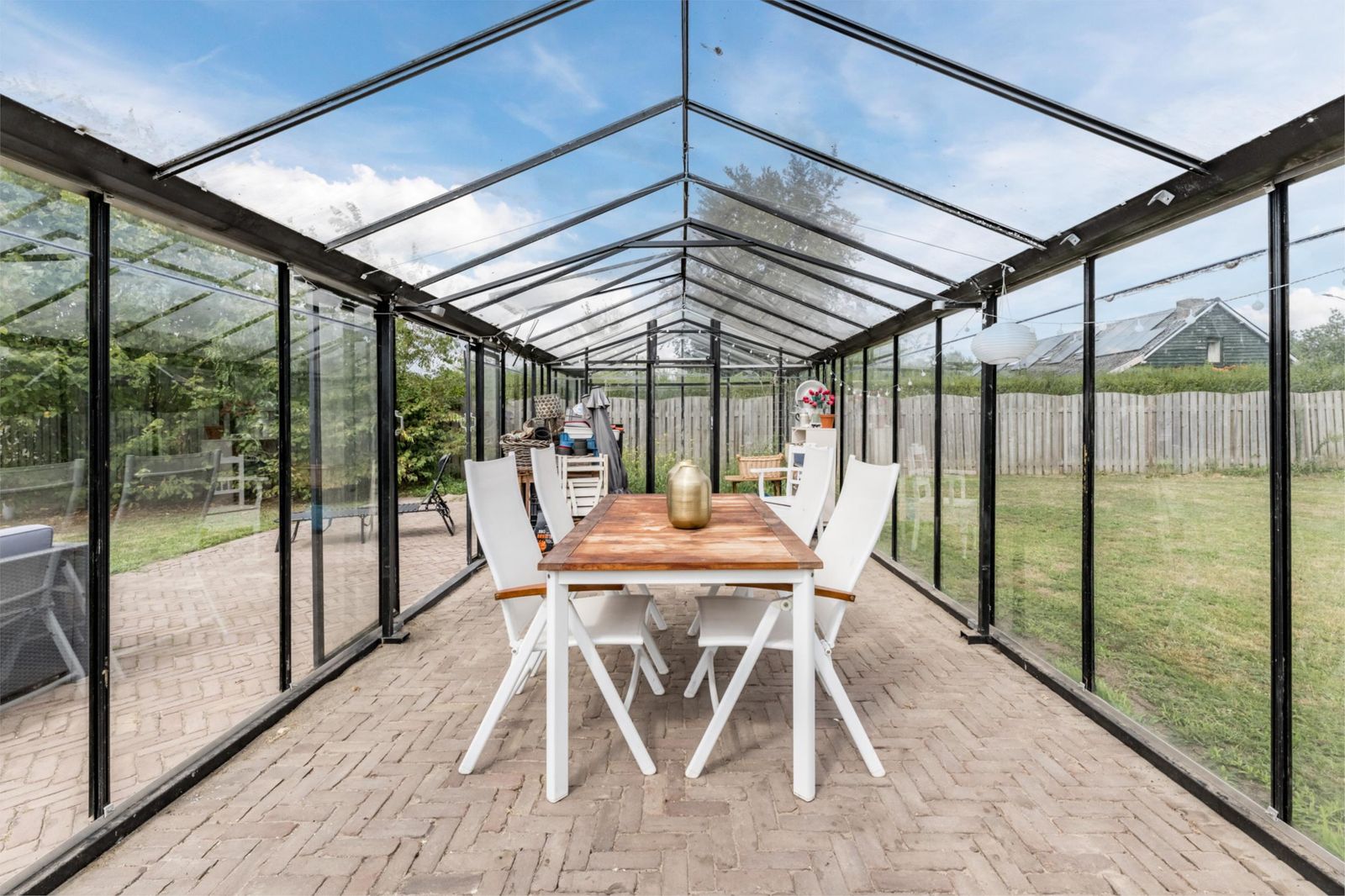 Grote kas met 2 twee gedeeltes; 1 waarin je gezellig samen kunt zitten en een gedeelte waarin je je eigen groenten kunt kweken.