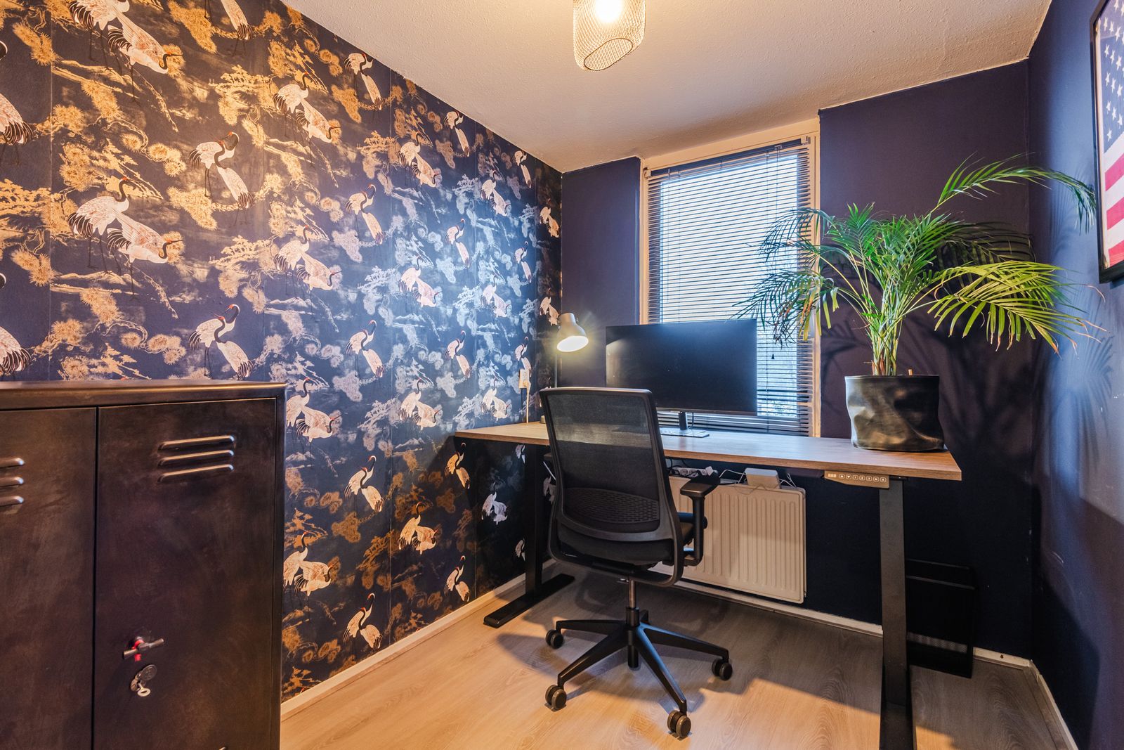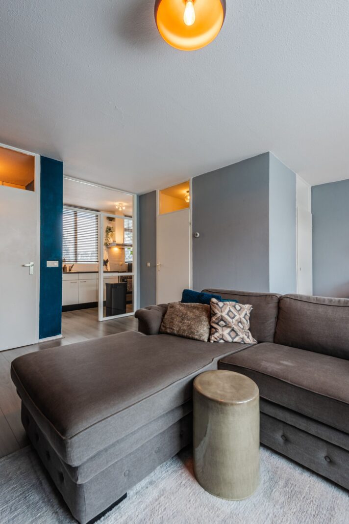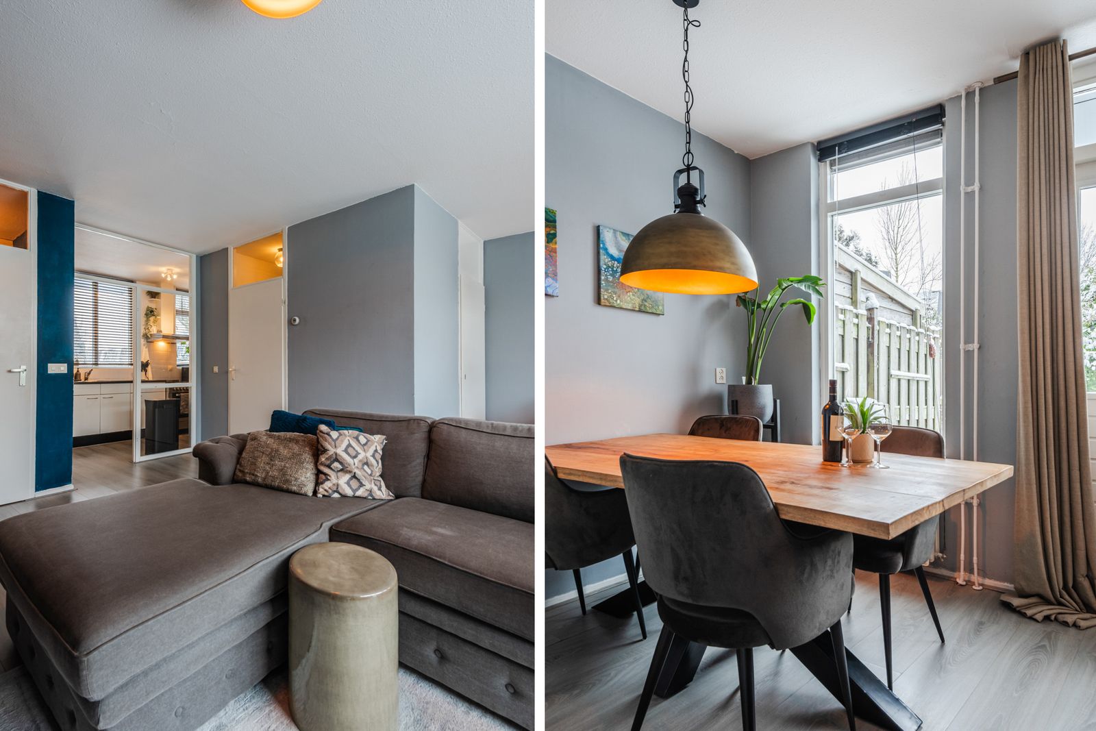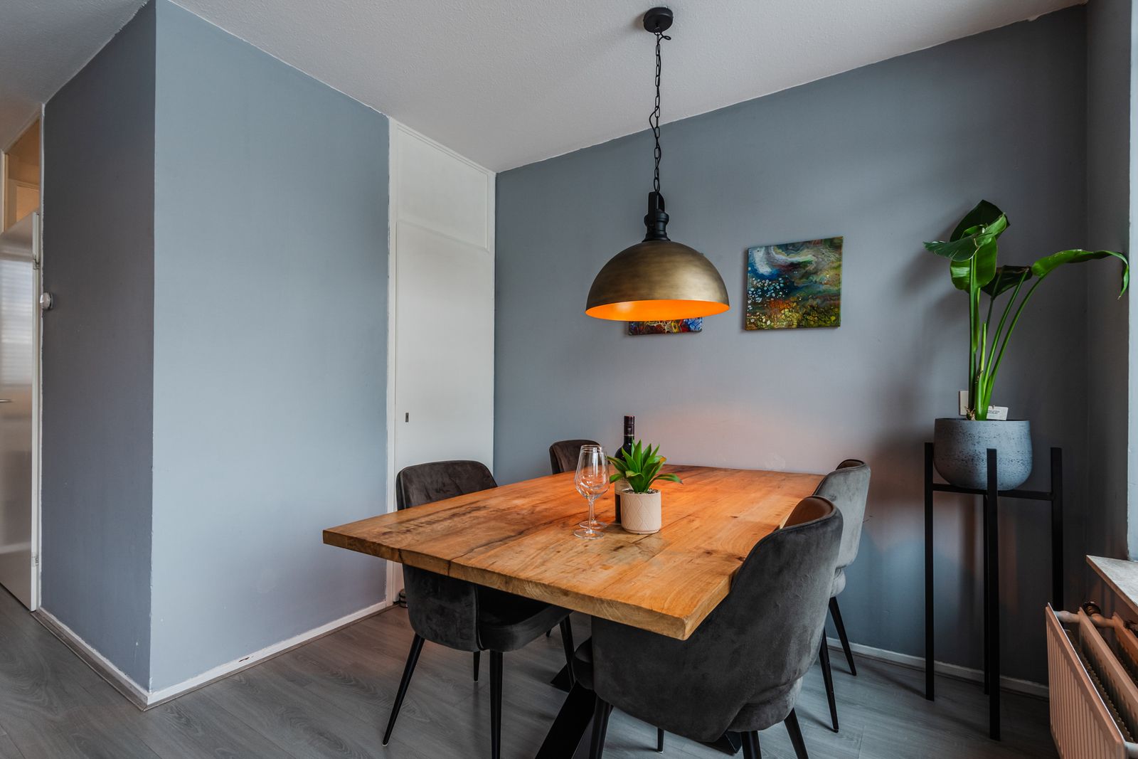 Begane grond: Ruime hal met vernieuwde meterkast (glasvezel aanwezig). Lichte woonkamer voorzien van laminaat met voldoende ruimte voor een eethoek. Ruime kast bevindt zich onder de trap voor praktische doeleinden. Dichte keuken met een rechte opstelling bestaande uit witte kastjes, gasfornuis en vaatwasser. Nieuw betegeld en modern toilet (2025).