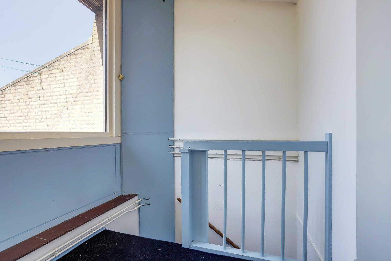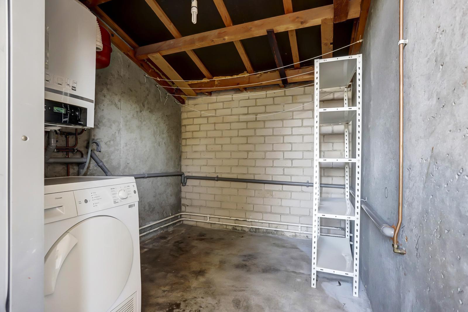 Tweede verdieping Via een vaste trap bereik je de tweede verdieping met een ruime overloop en een grote berging met opstelplaats voor de cv-ketel. De berging biedt volop opbergruimte en mogelijkheden voor bijvoorbeeld wasmachine en droger. Hier bevindt zich een vierde slaapkamer met toegang tot een ruim dakterras en een grote berging met opstelplaats voor de cv-ketel.