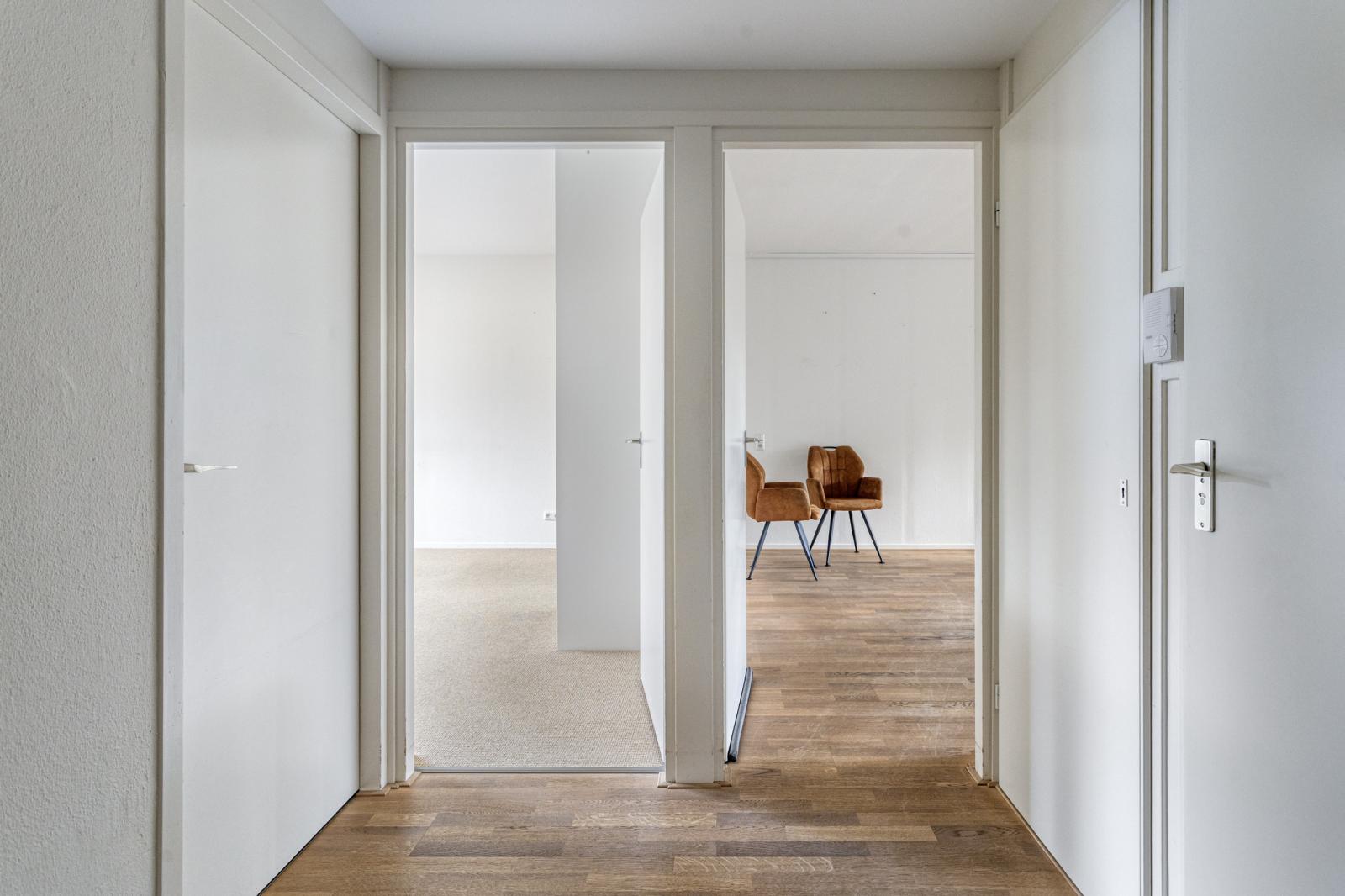 Via de centrale entree van het complex bereik je het appartement. De woning beschikt over een ruime hal die toegang geeft tot alle vertrekken.