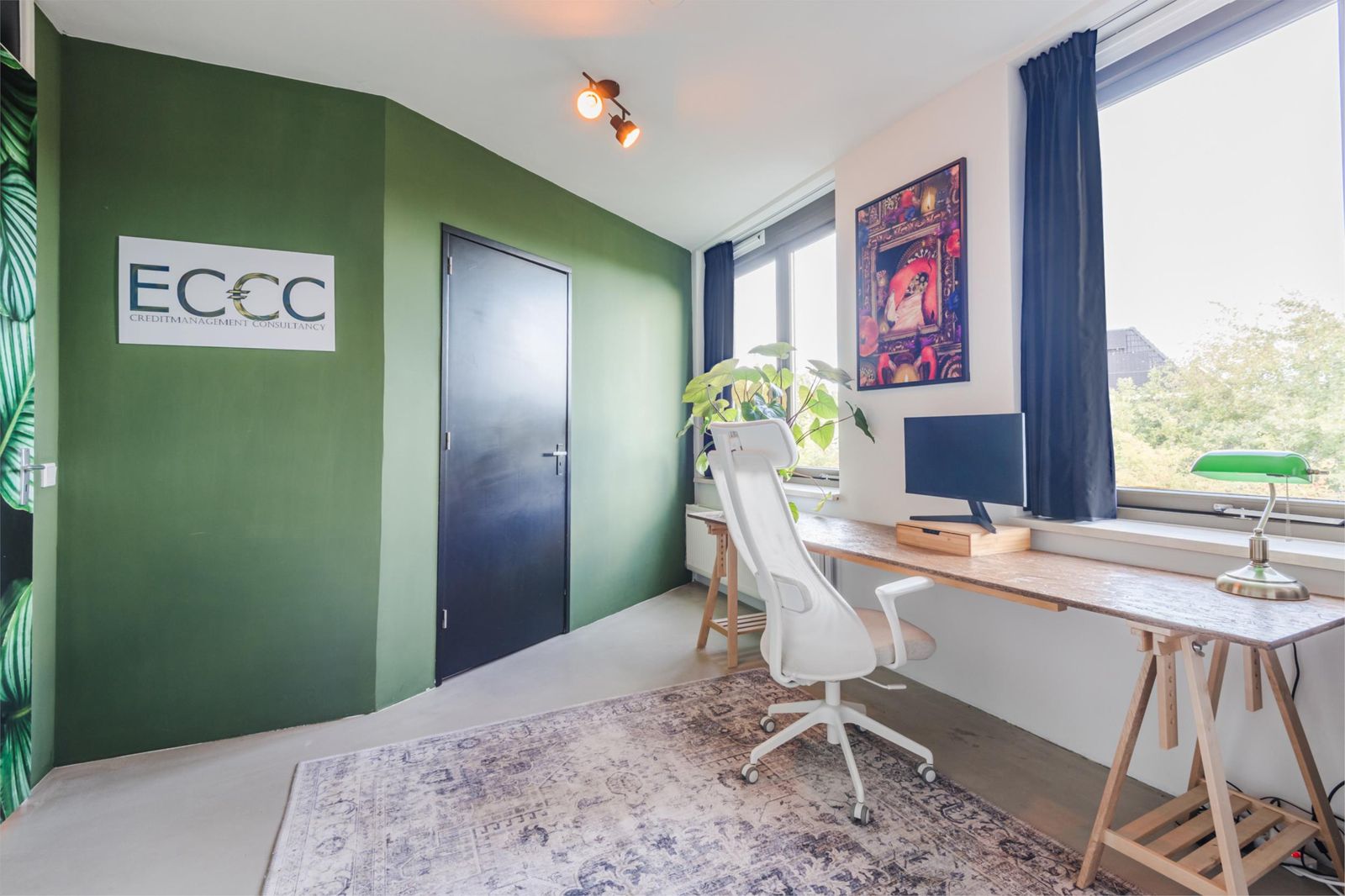 •Slaapkamer 2 (achterzijde): Momenteel ingericht als thuiswerkkantoor voor twee personen, eveneens voorzien van twee grote ramen met veel lichtinval en cv-unit.