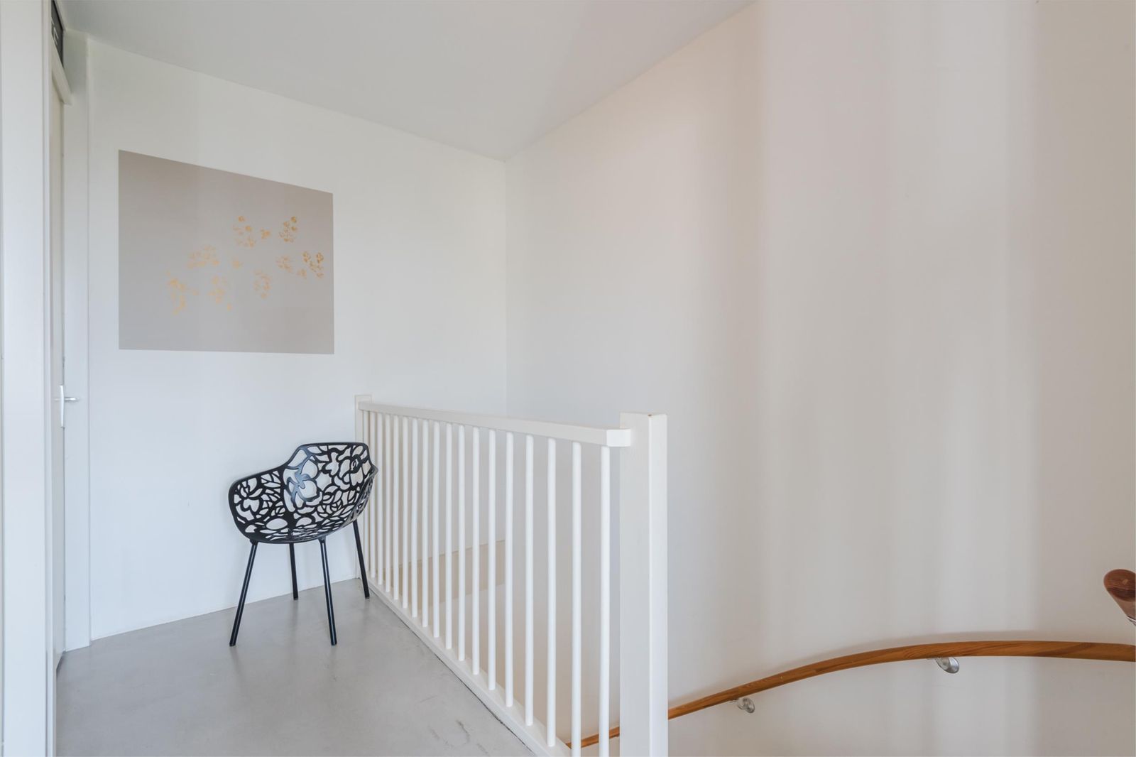 Met de zogenaamde ‘luie’, gestoffeerde trap bereik je de eerste verdieping met een royale overloop. Deze verdieping biedt toegang tot twee ruime slaapkamers, een badkamer, een apart toilet en een praktische was-/opslagruimte.
