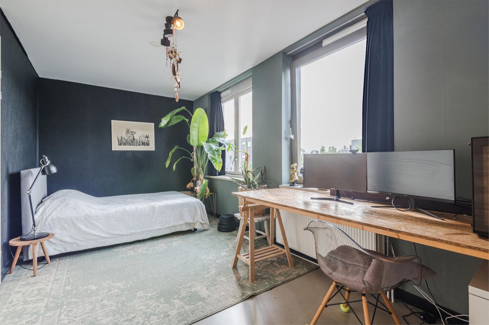 •Slaapkamer 1 (voorzijde): Een bijzonder ruime kamer met twee grote ramen, waaronder een draai-/kiepraam dat volledig open kan. De kamer biedt ruimte voor een brede kledingkast, een bureau en een tweepersoonsbed. Inclusief cv-unit.