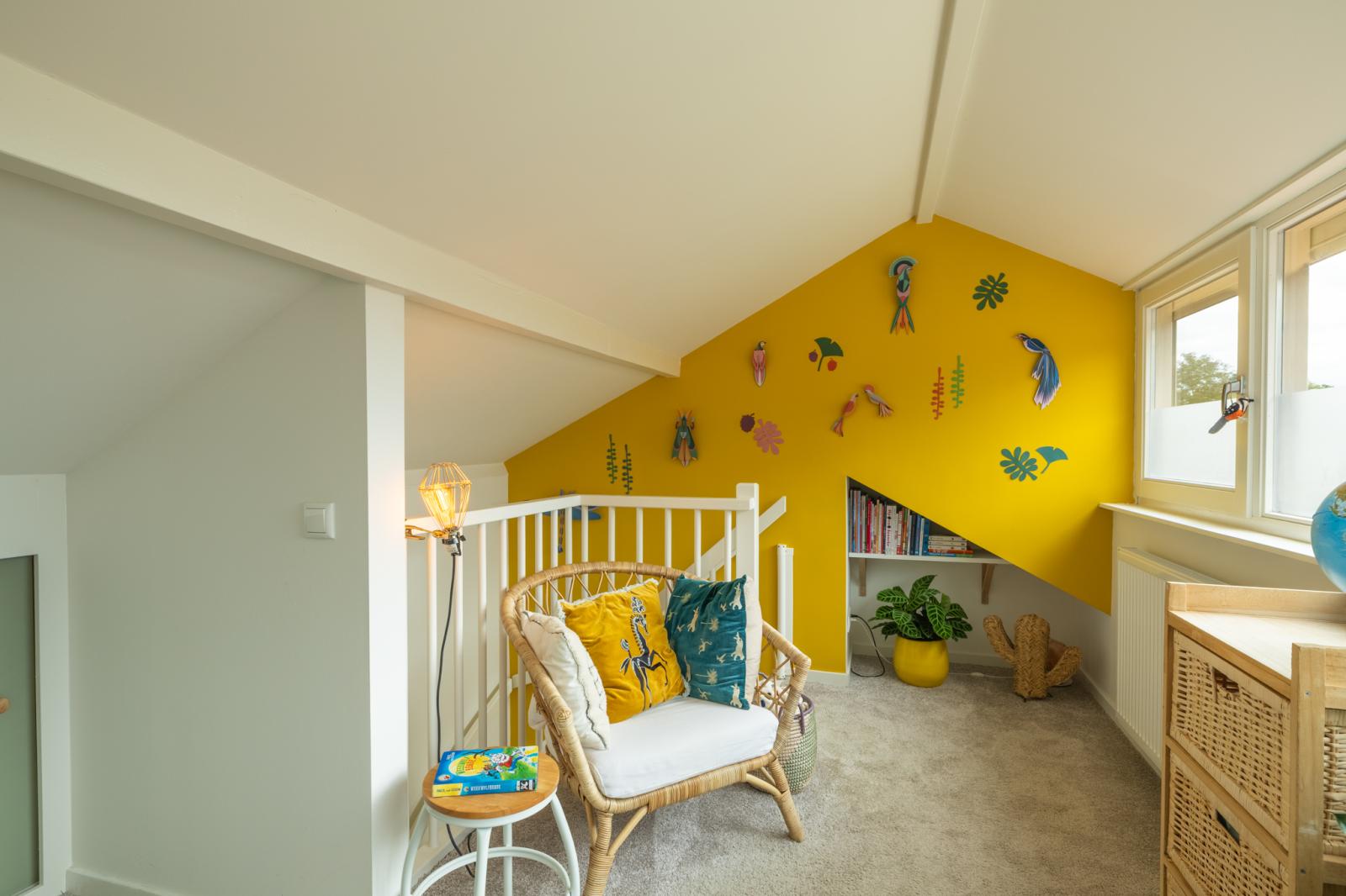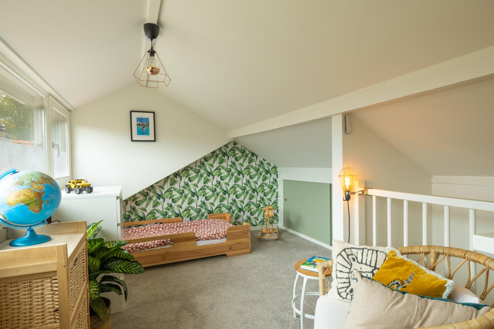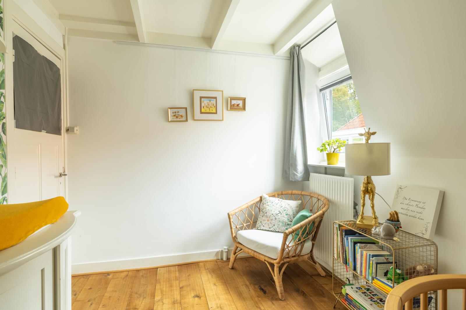 De zolderverdieping is in 2022 volledig vernieuwd en geïsoleerd. Hier is een prachtige kinderkamer ontstaan met veel licht en ruimte, dankzij de dakkapel van maar liefst vier meter breed, met elektrische rolluiken. Achter de knieschotten is volop bergruimte _ handig voor speelgoed, dozen of seizoensspullen. Een ruimte met karakter én mogelijkheden: van logeerkamer tot speelzolder of creatieve plek voor later.