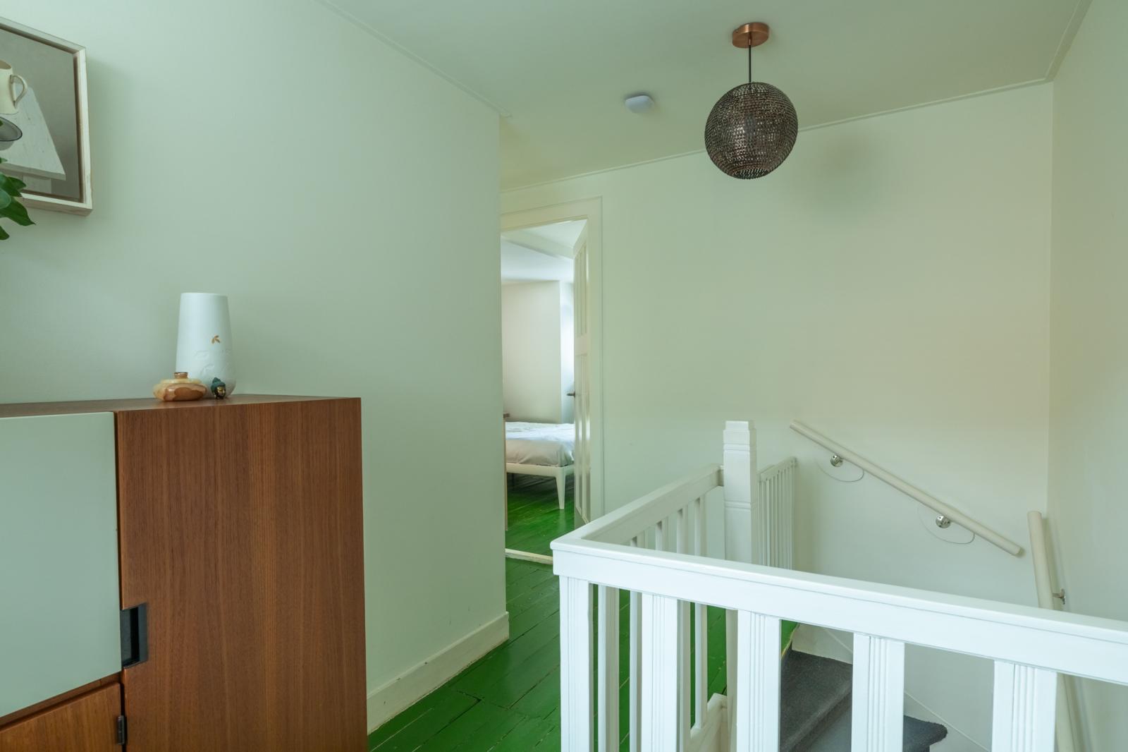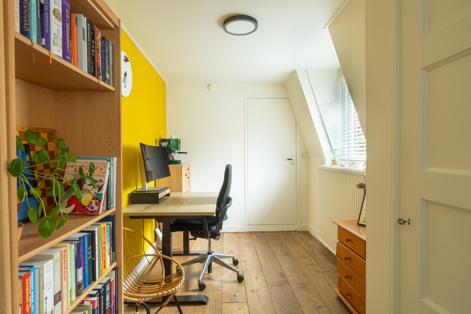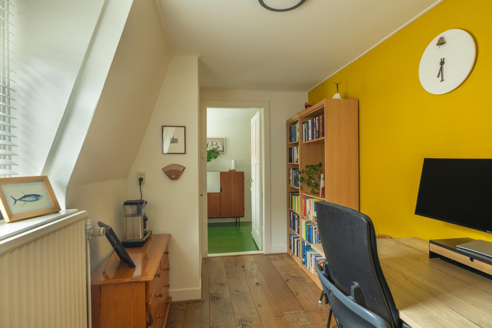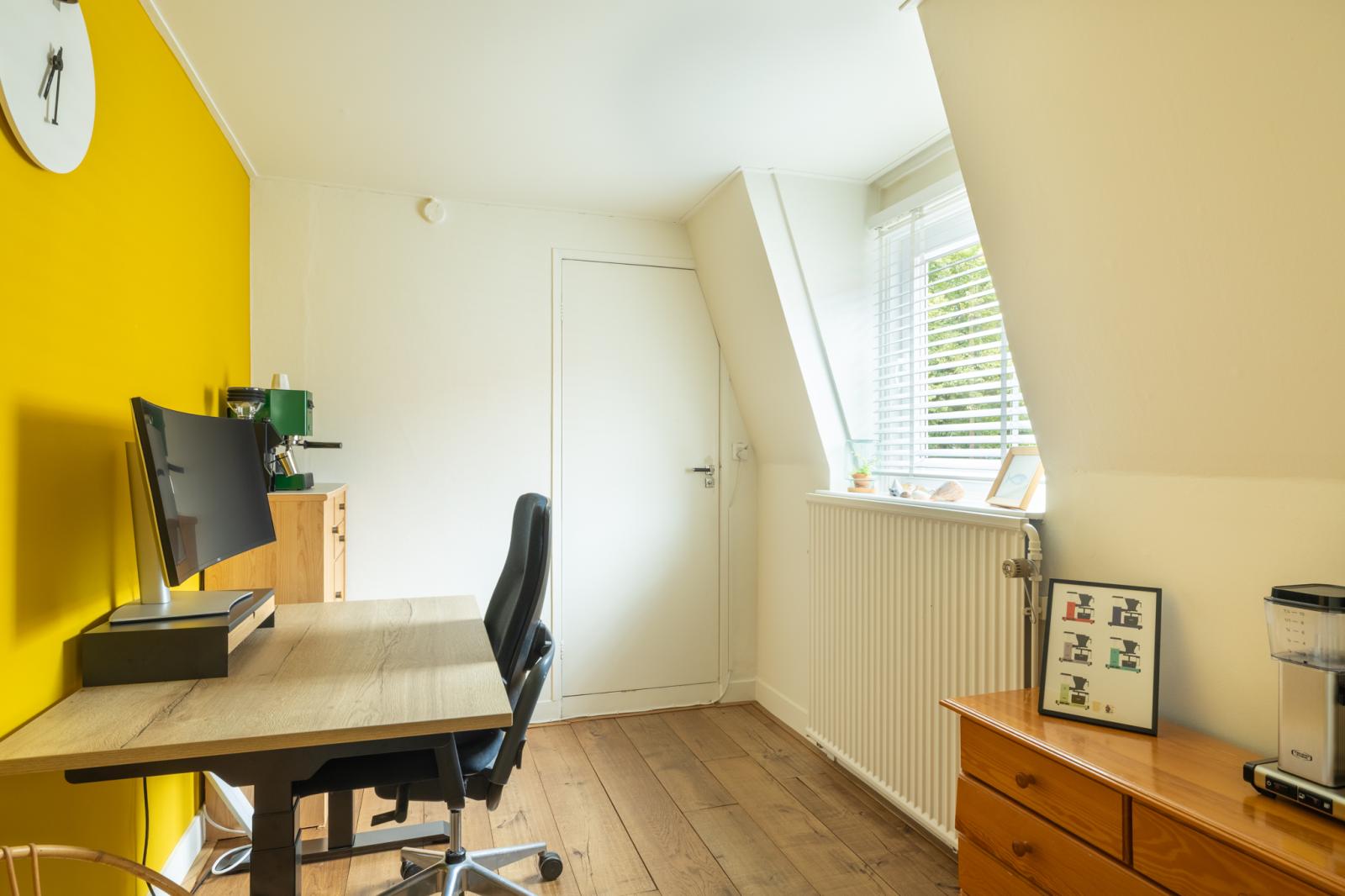 Boven vind je twee fijne slaapkamers en een aparte werkkamer _ perfect voor thuiswerken of als babykamer. De kamers zijn licht afgewerkt met houten vloeren, met genoeg ruimte voor kasten en een bed. De badkamer heeft een frisse, moderne uitstraling en is voorzien van een ligbad, aparte douche en wastafelmeubel. Dankzij het dakraam valt er veel daglicht binnen, wat de ruimte een ontspannen sfeer geeft.