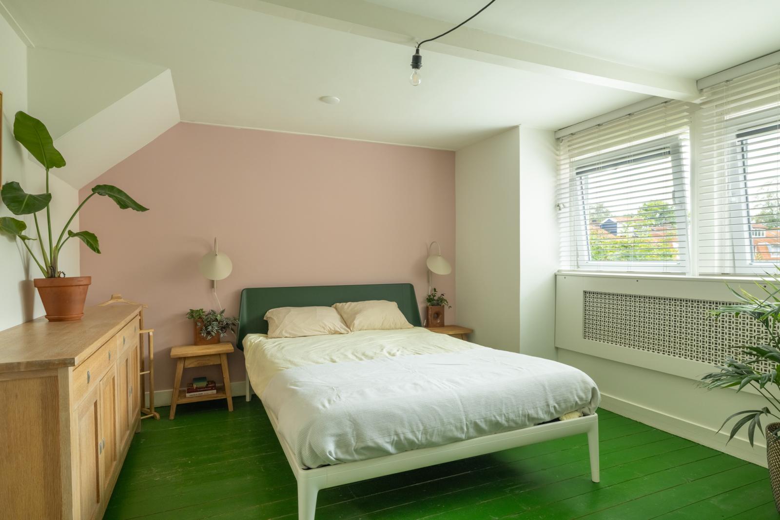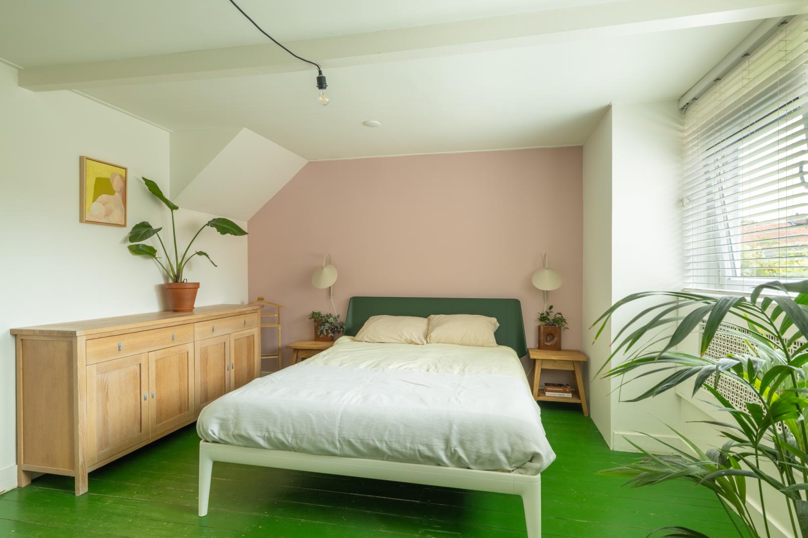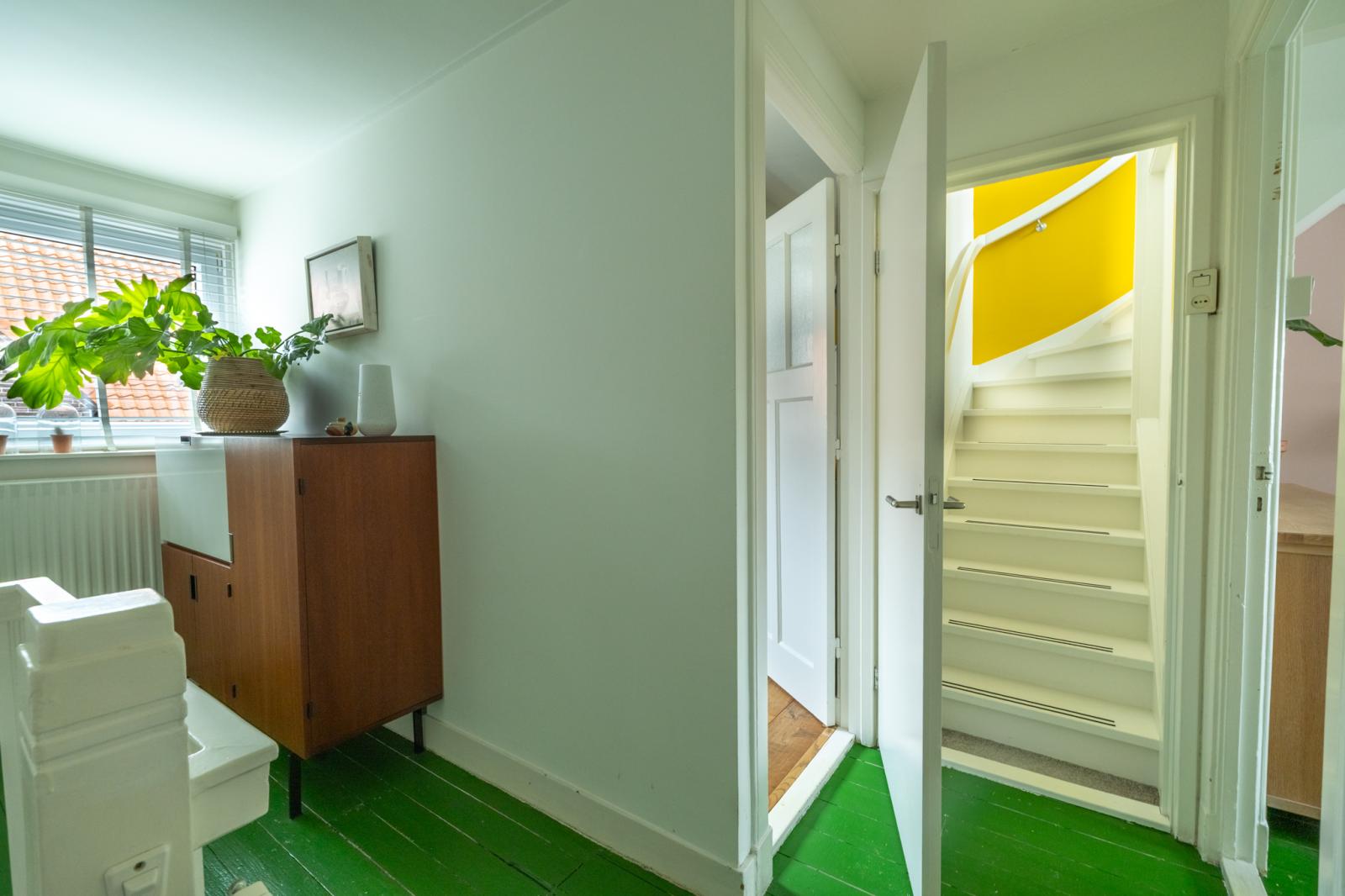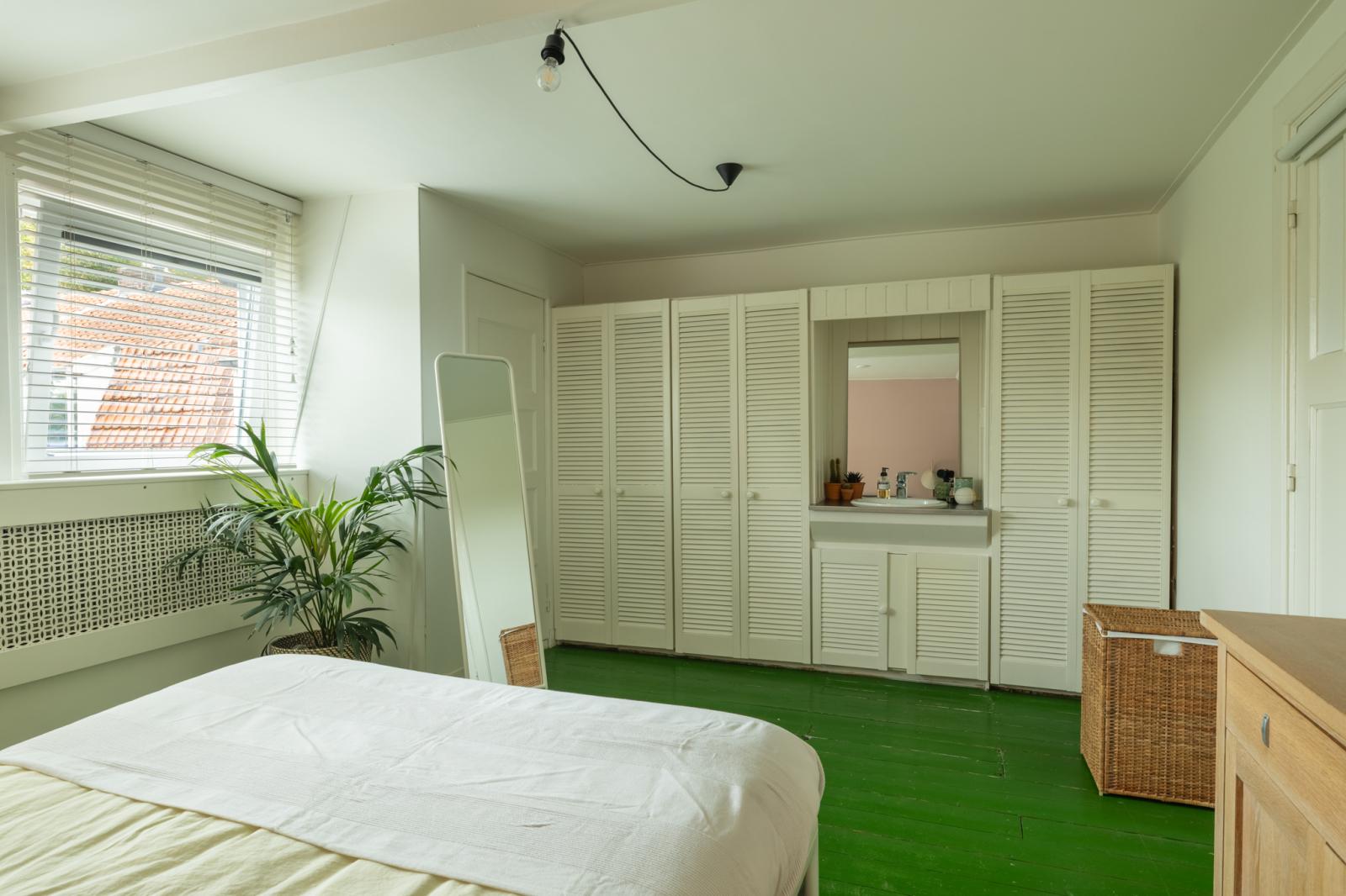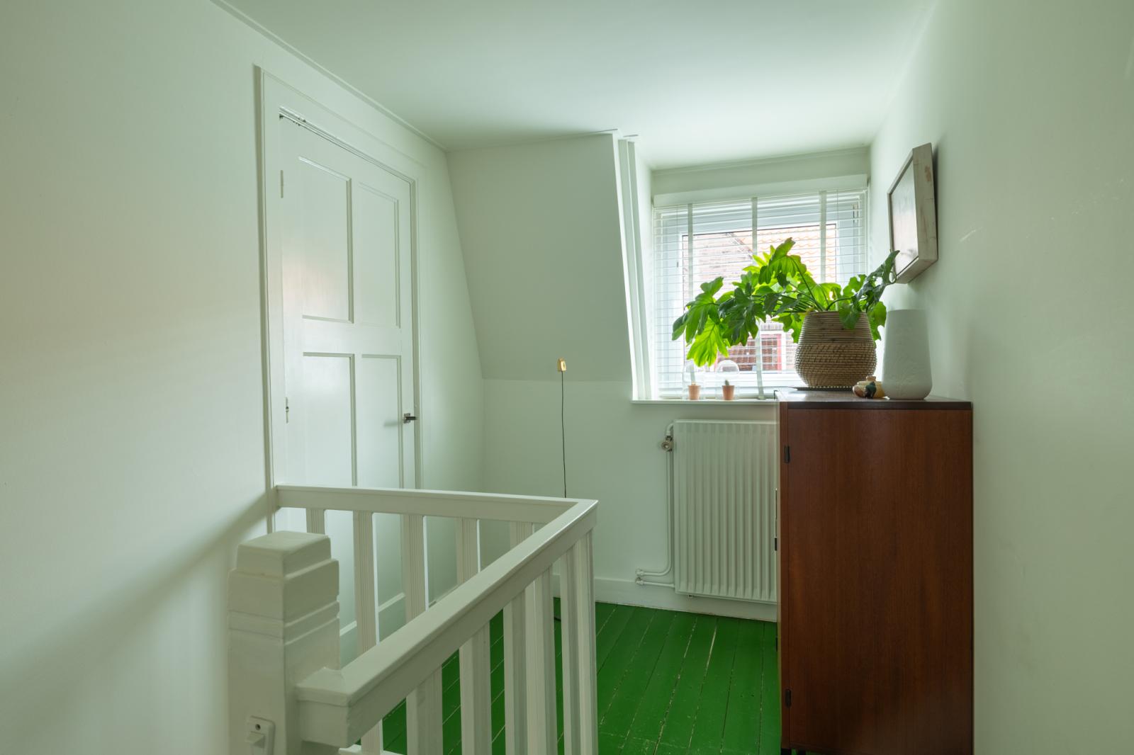 Boven vind je twee fijne slaapkamers en een aparte werkkamer _ perfect voor thuiswerken of als babykamer. De kamers zijn licht afgewerkt met houten vloeren, met genoeg ruimte voor kasten en een bed. De badkamer heeft een frisse, moderne uitstraling en is voorzien van een ligbad, aparte douche en wastafelmeubel. Dankzij het dakraam valt er veel daglicht binnen, wat de ruimte een ontspannen sfeer geeft.