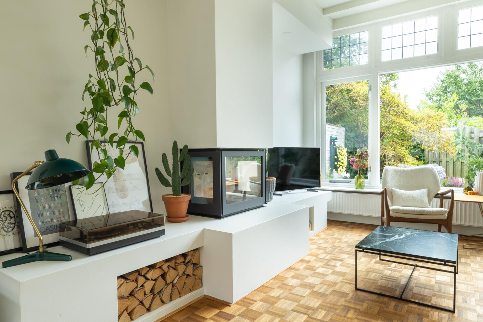 -Moderne houtkachel in de woonkamer