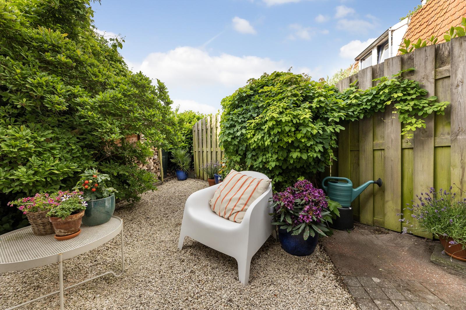 -Beschutte tuin op het zuidoosten met houtopslag