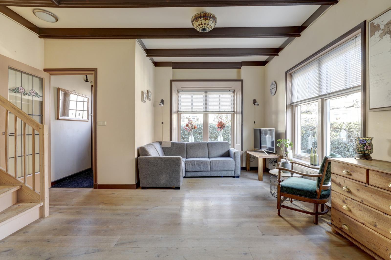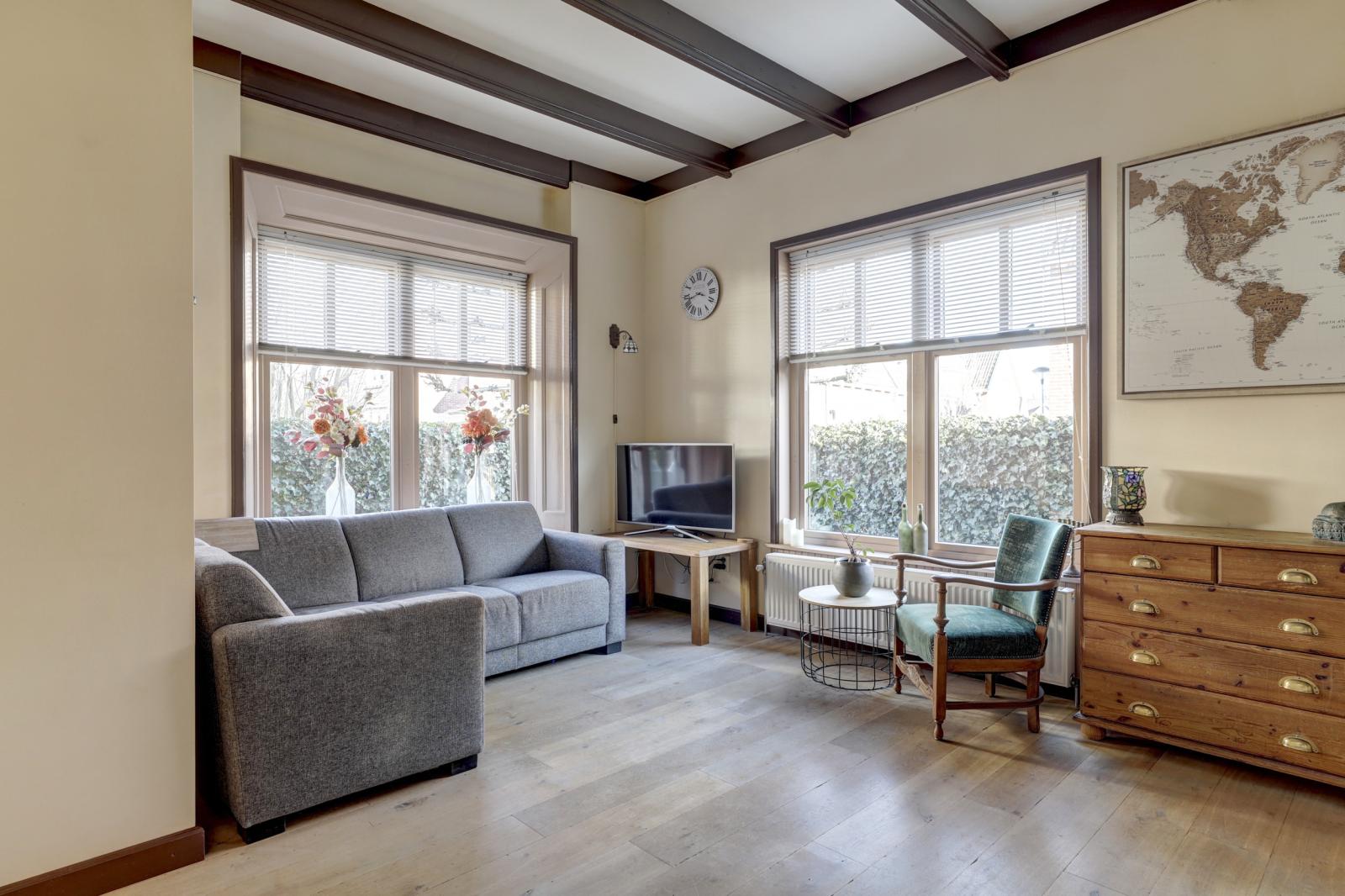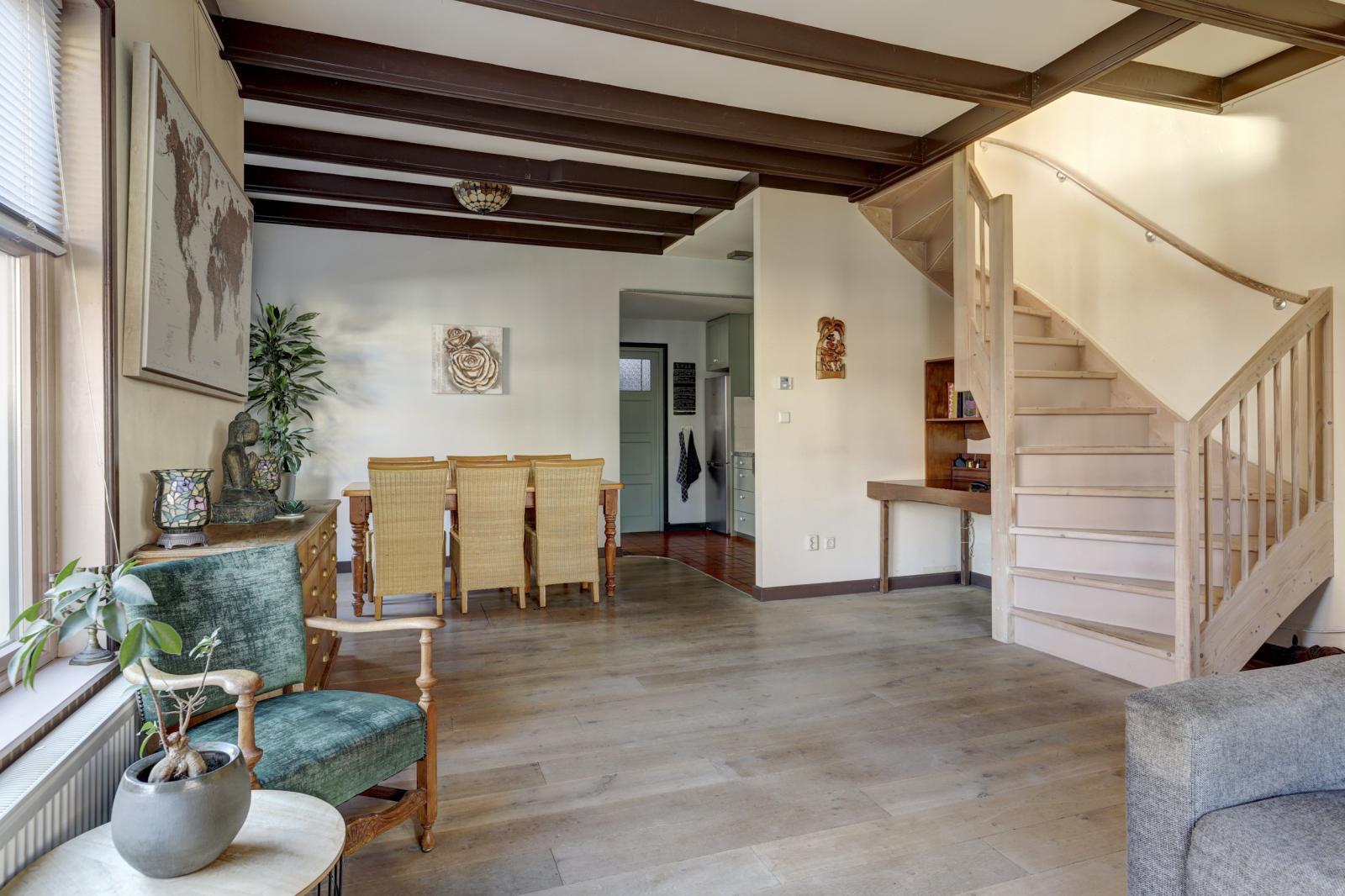 Bij binnenkomst valt direct de prachtige houten vloer op die zorgt voor een warme en stijlvolle basis. De woonkamer is heerlijk licht dankzij de grote raampartijen en heeft een prettige, open sfeer.