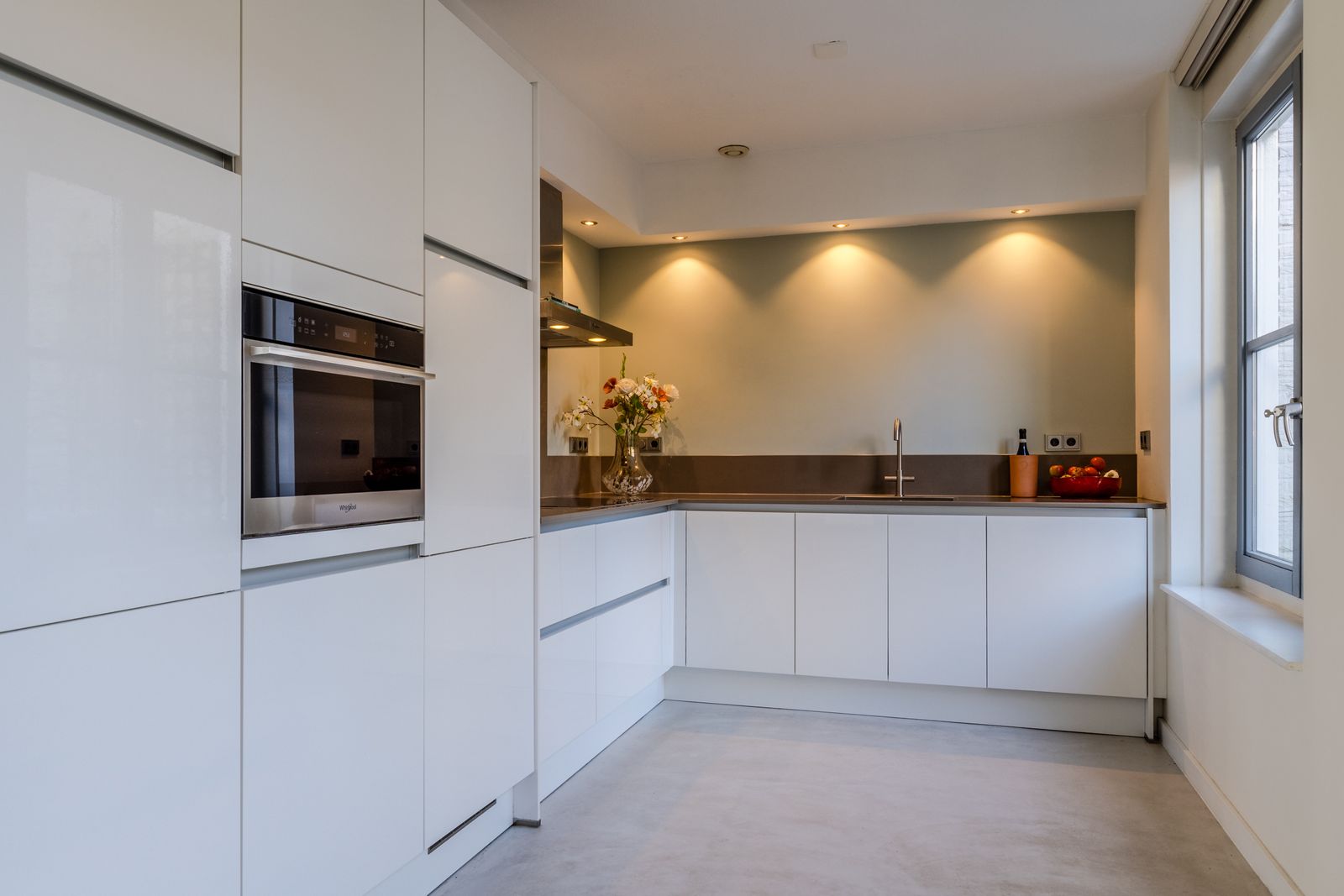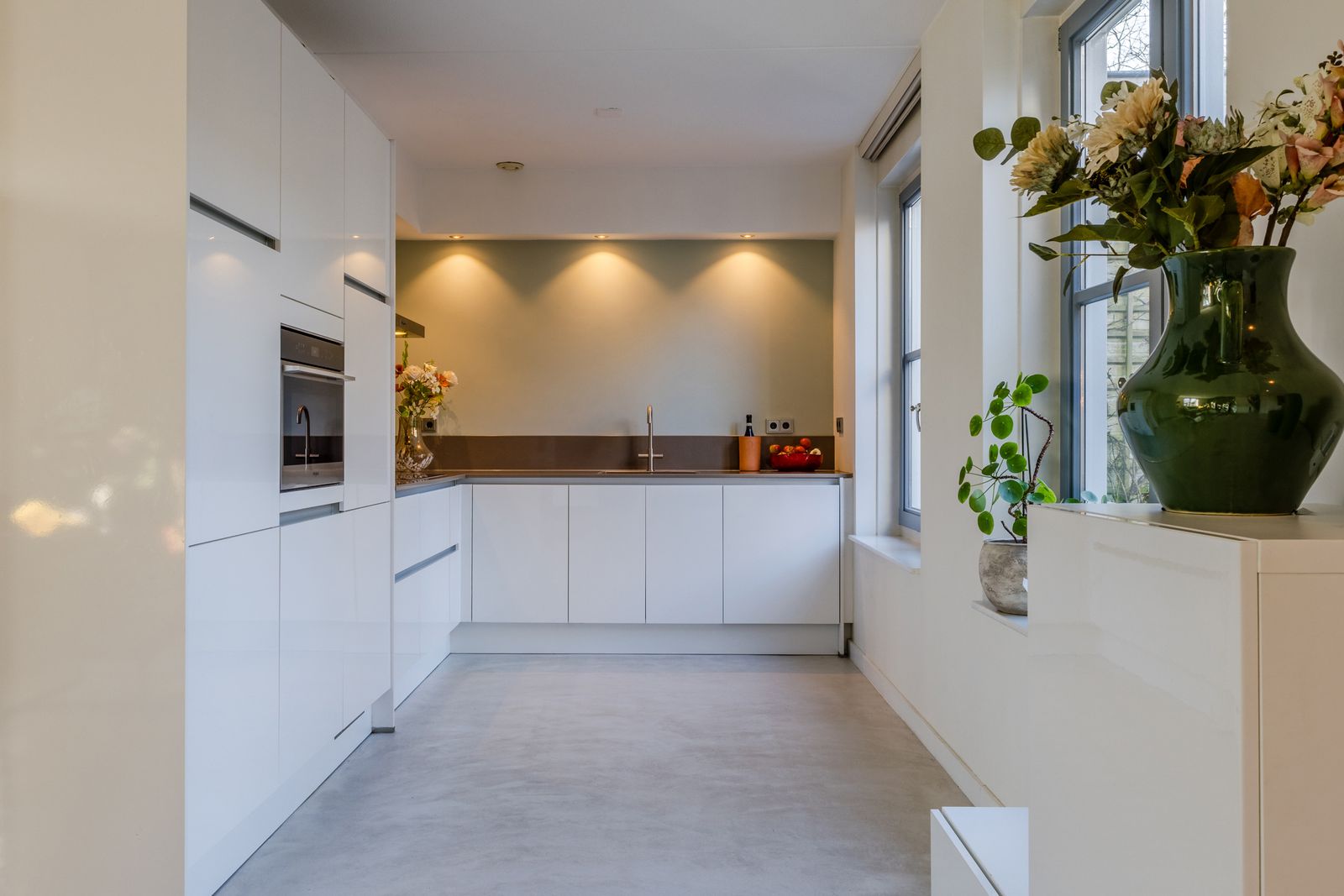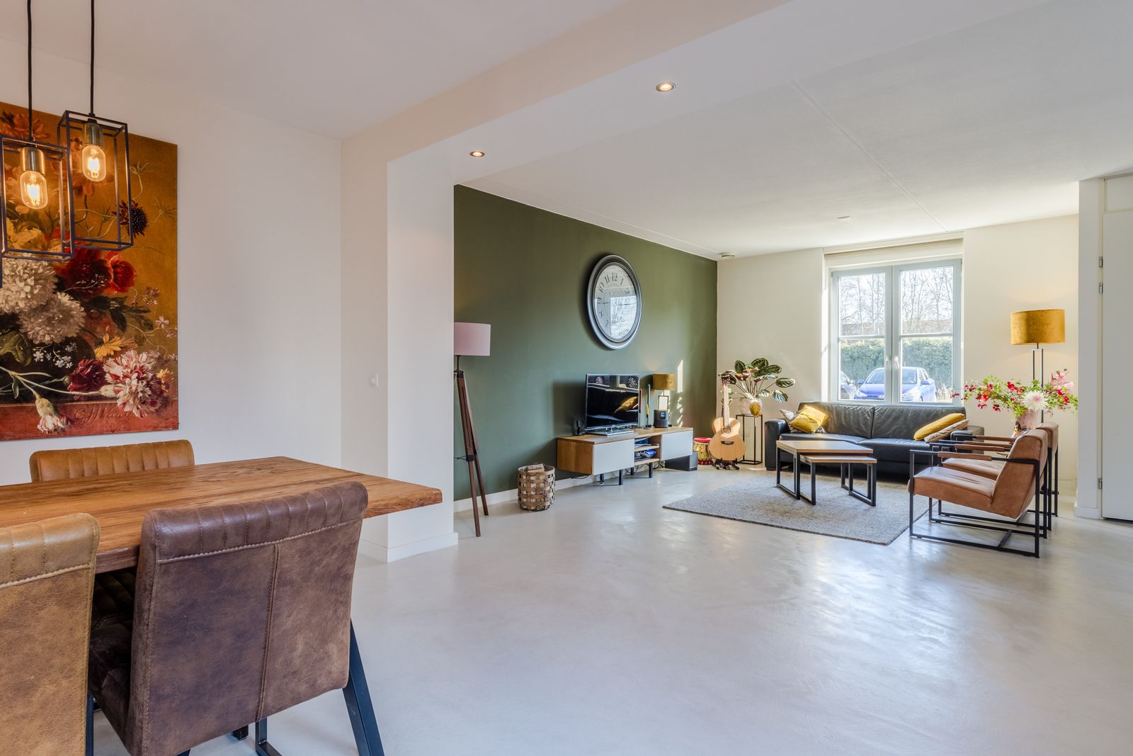Bij binnenkomst kom je in de hal met toilet, meterkast en trapopgang. Vanuit hier bereik je de royale woonkamer, waar dankzij de grote raampartijen en tuindeuren een fijne en open sfeer ontstaat. Er is volop ruimte voor een grote zithoek én een ruime eethoek. De keuken aan de achterzijde is praktisch ingericht met veel werkruimte en diverse inbouwapparatuur, en wordt door de brede ramen voorzien van aangenaam daglicht.