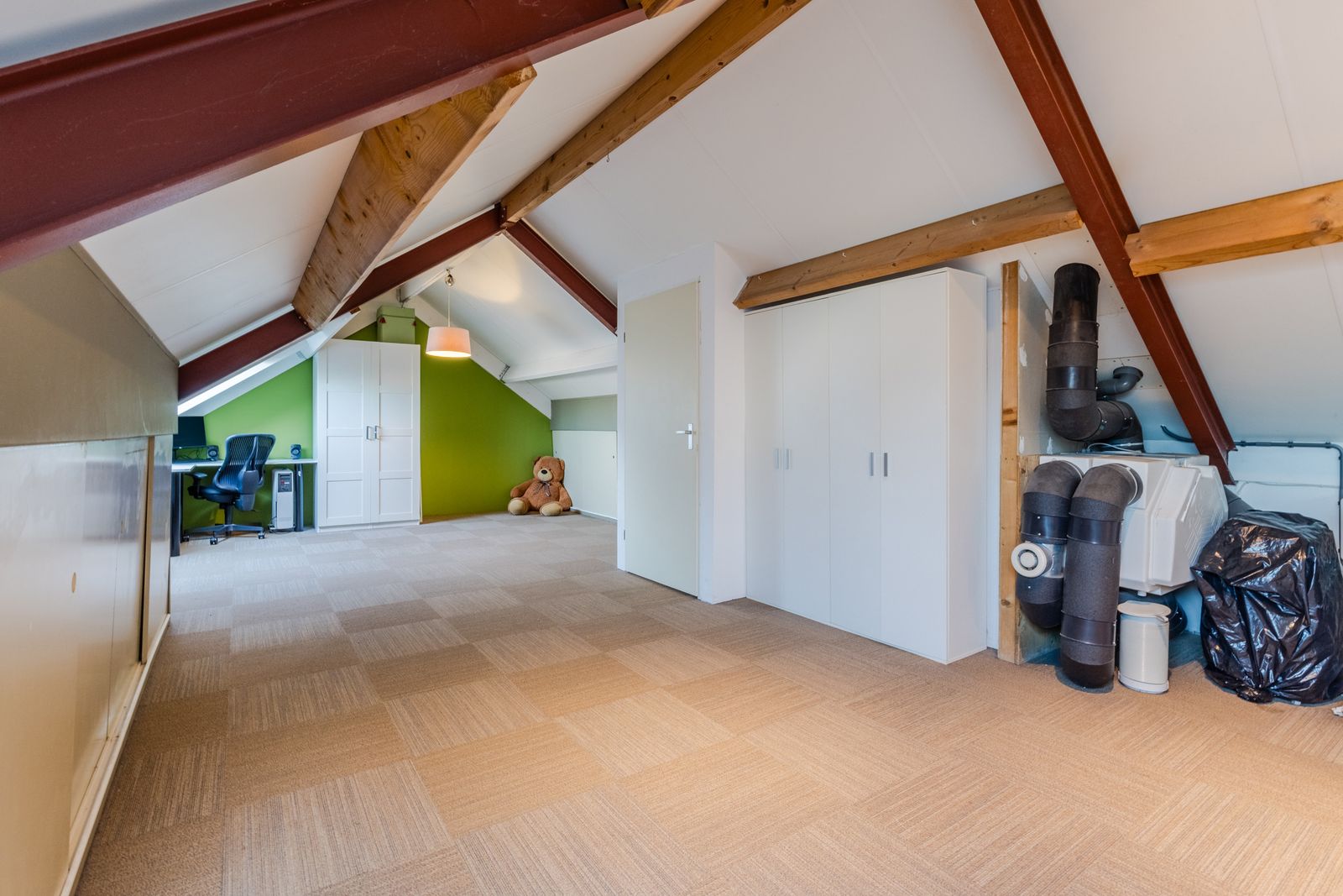 Op de eerste verdieping bevinden zich een drietal slaapkamers, waarvan twee zeer goed bemeten, en een complete badkamer die is uitgerust met een ligbad, open douch, wastafel en een tweede toilet. De woning beschikt over een riante zolderverdieping met veel potentie. Door de ruime indeling is het goed mogelijk om twee extra ruime slaapkamers te creëren. De twee aanwezige dakramen zorgen daarbij voor een aangename lichtinval,