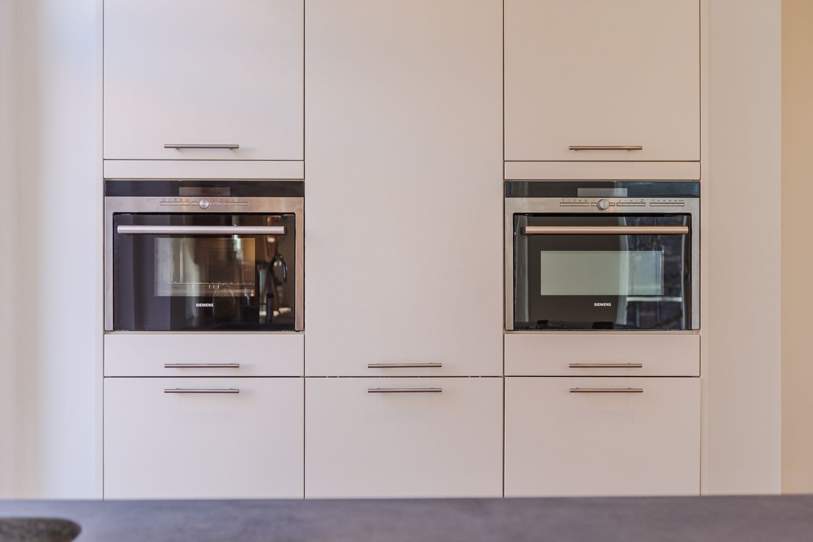 Quooker, vaatwasser, combi-oven (zelfreinigend), stoomoven, grote koelkast met vriesvak.