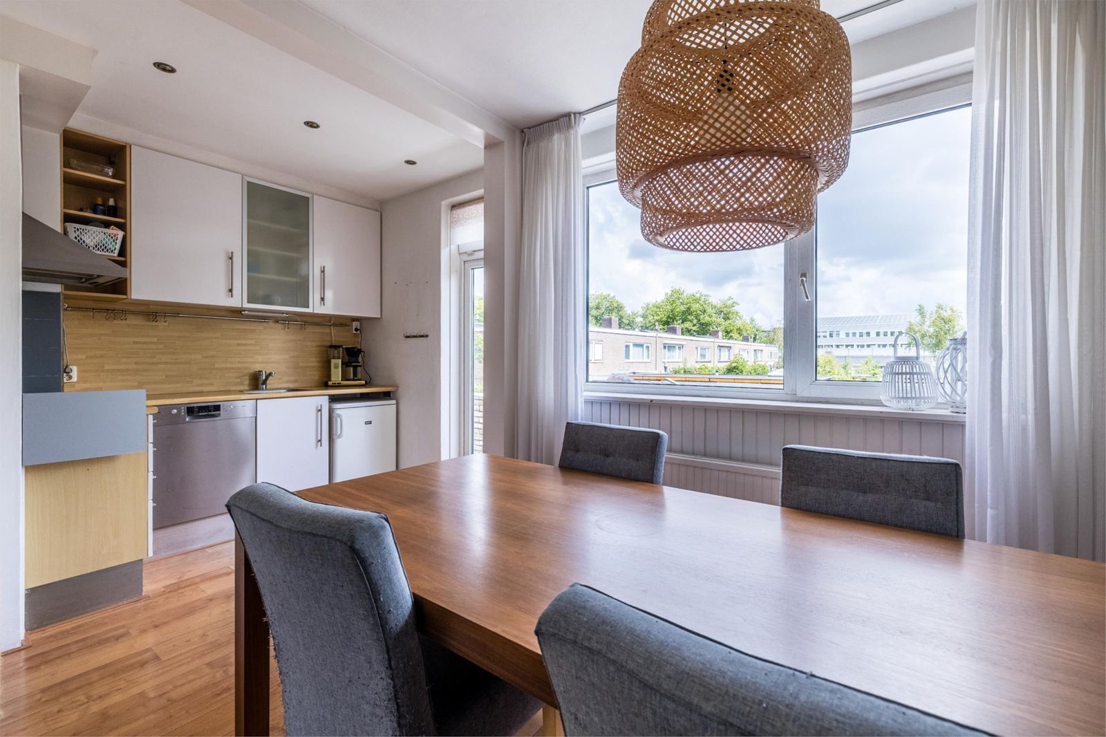 De woning is qua indeling echt anders dan anders. En juist dat maakt dit huis zo aantrekkelijk. Waar je normaal de woonkamer op de begane grond vindt, ligt die hier op de verdieping.