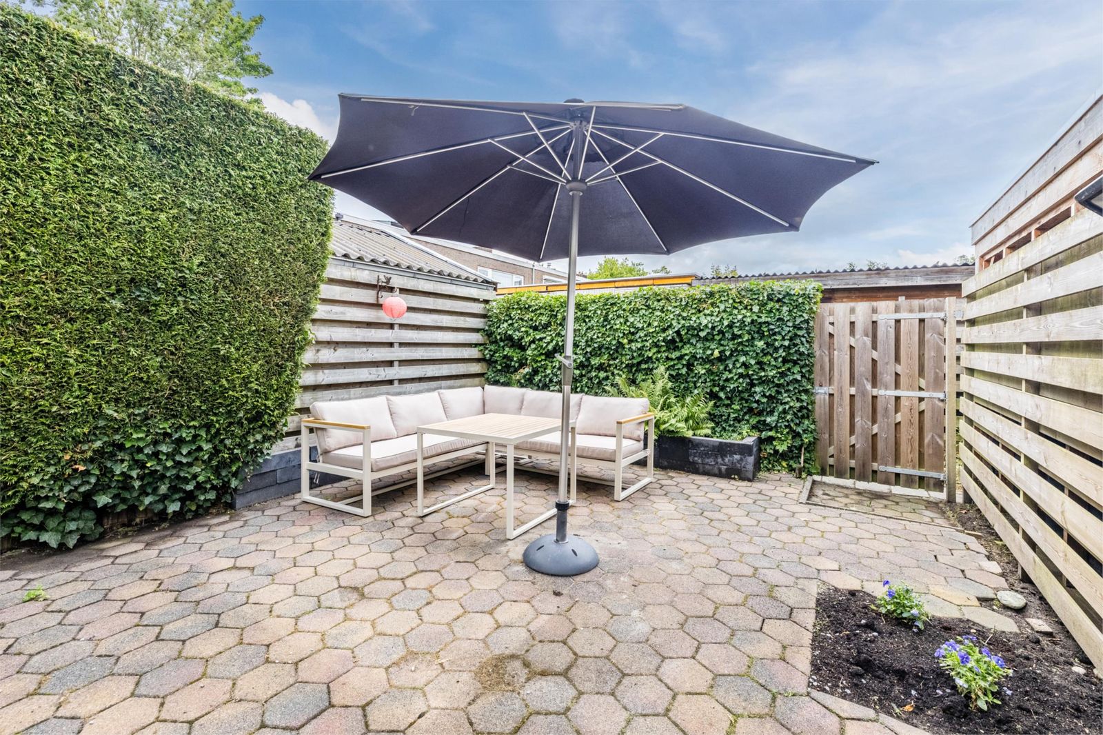 Ruime achtertuin met achterom