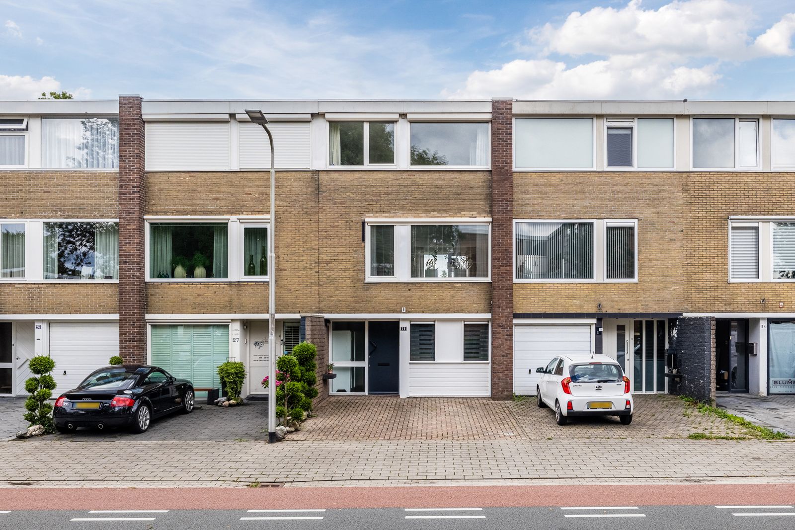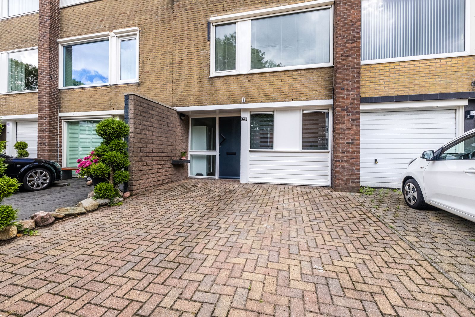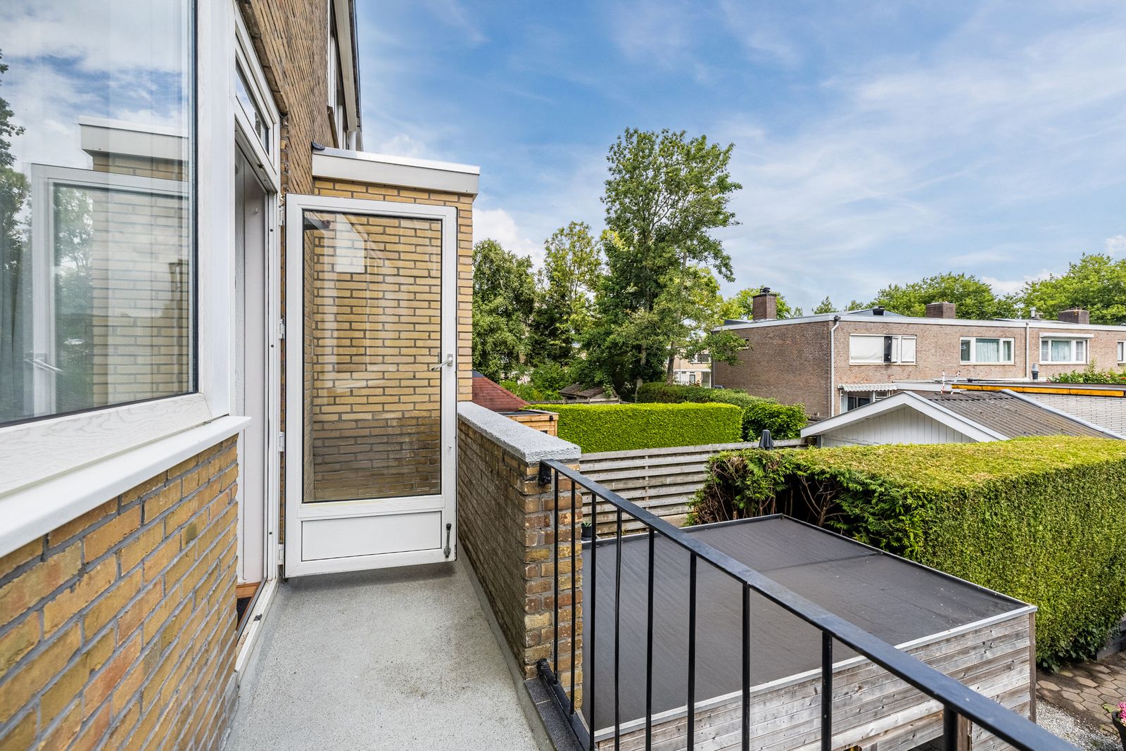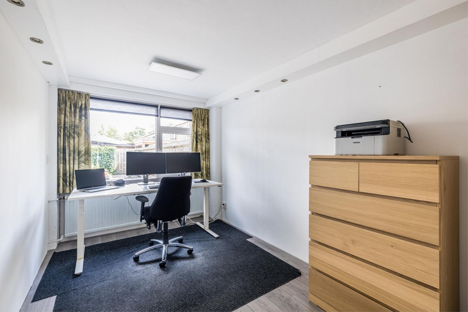 Op de begane grond bevindt zich onder andere een royale werk- of slaapkamer (voorheen de garage), met directe toegang tot de diepe achtertuin. Deze tuin biedt veel privacy en heeft een fijne zonligging. De woning is goed onderhouden en grotendeels voorzien van kunststof kozijnen met isolatieglas. In de zomer van 2020 is het platte dak vernieuwd door een erkend bedrijf.