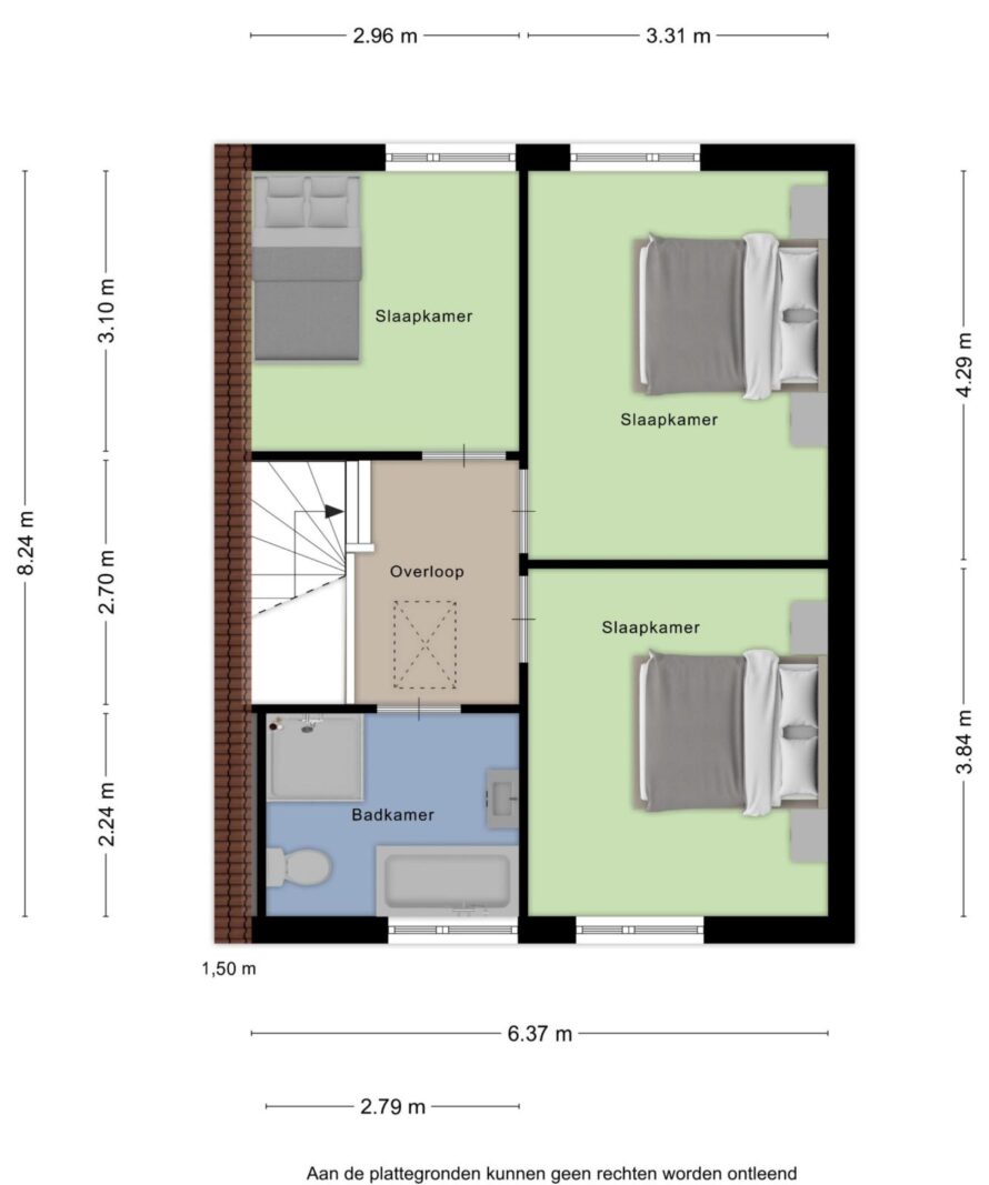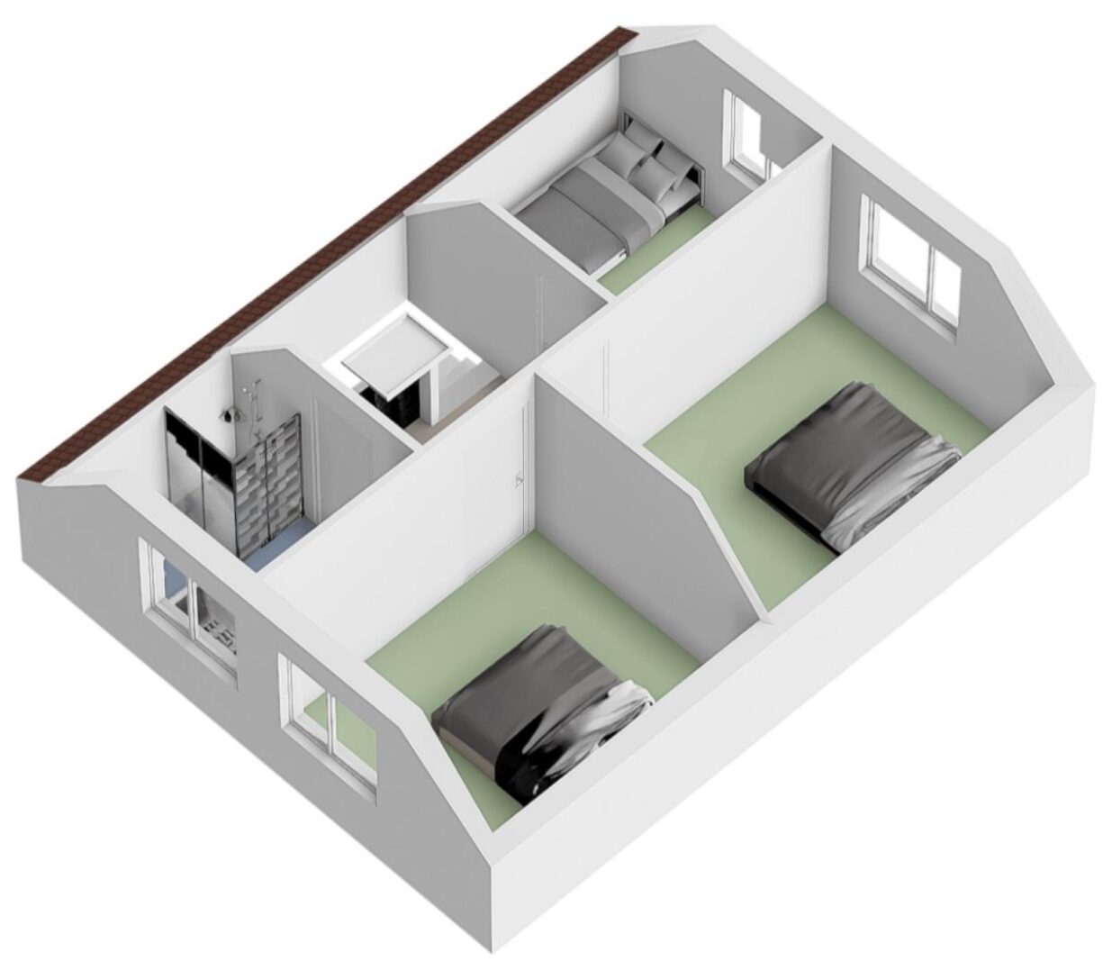 Via de trapopgang in de entreehal bereikt u de ruime overloop. De overloop geeft toegang tot een drietal slaapkamers en de tweede badkamer van de woning. De slaapkamers hebben prettig ruime afmetingen en voldoende daglicht. De badkamer heeft de mogelijkheid tot het plaatsen van een ligbad, inloopdouche, badkamermeubel en toilet. Alles aan leidingwerk is daarvoor reeds voorbereid.