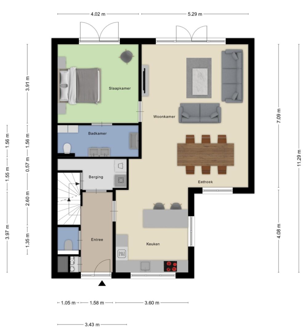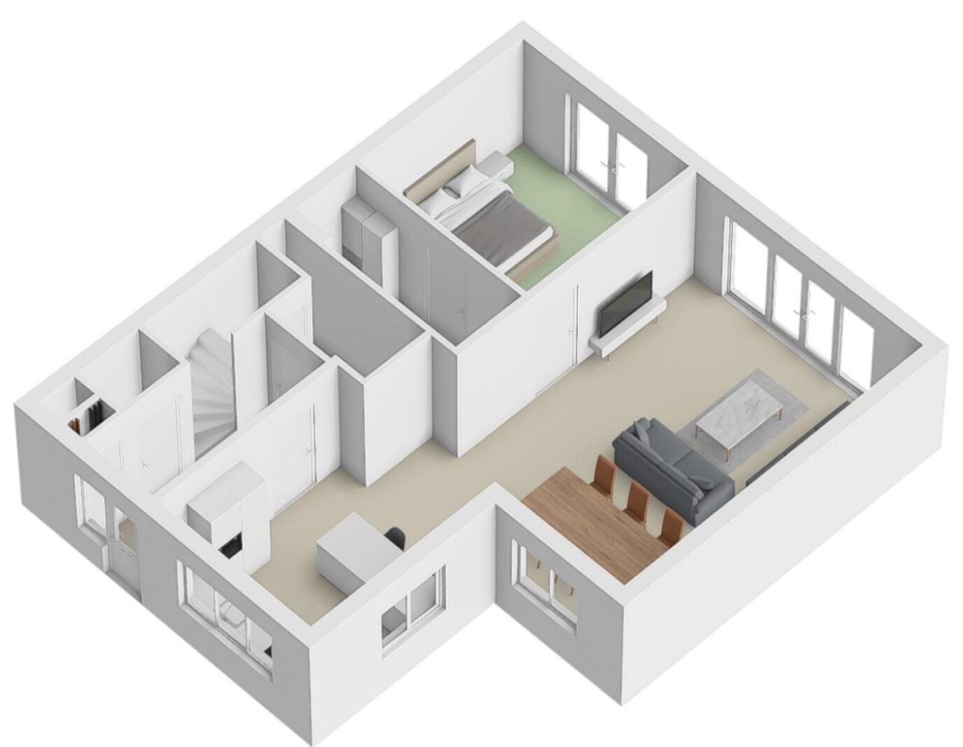 - Een loopdeur naar het buitenterras in de beneden slaapkamer;