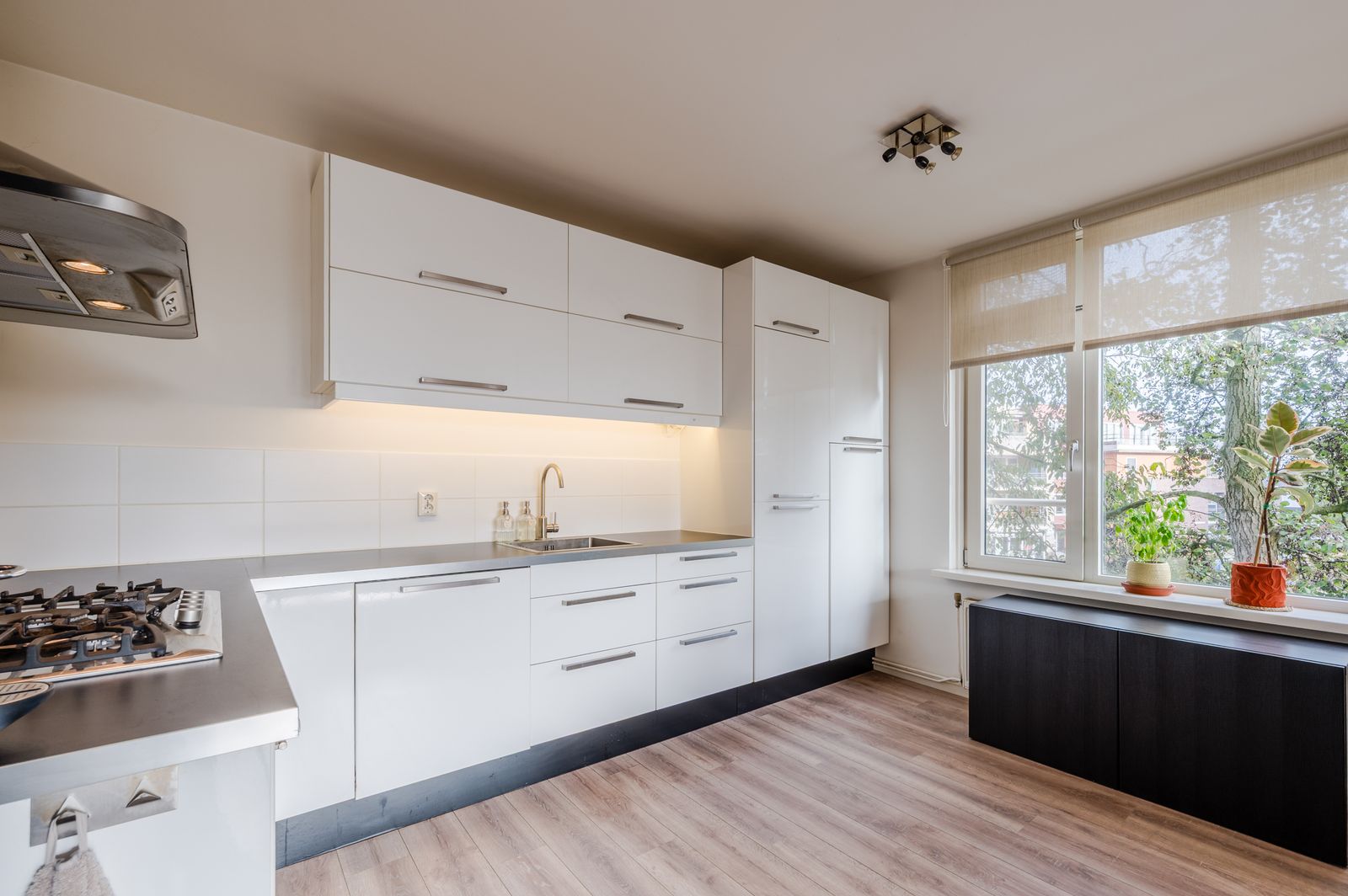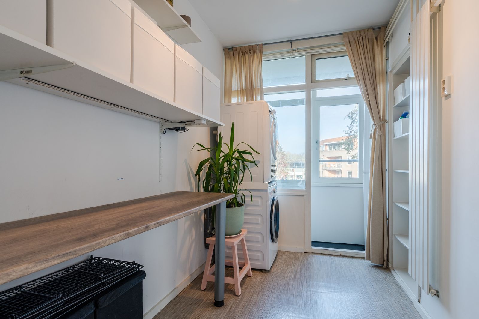 Binnenkomst in de hal met toegang tot de woonkamer. De woonkamer is praktisch ingedeeld, door de vele ramen erg licht en sluit aan op de open keuken die is voorzien van de nodige inbouwapparatuur. Er is via de grote schuifpui in de huiskamer toegang tot het zonnige balkon. Dankzij de indelingsaanpassing in 2011 voelt de ruimte modern en efficiënt. Er zijn 3 slaapkamers. De ruime badkamer heeft een wastafel, douche en bad. Er is een apart toilet. Alles is netjes onderhouden en door de goede isolatie bijzonder comfortabel.
