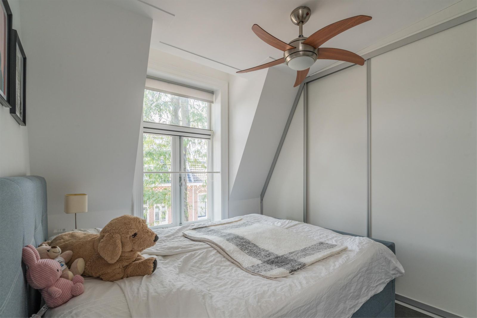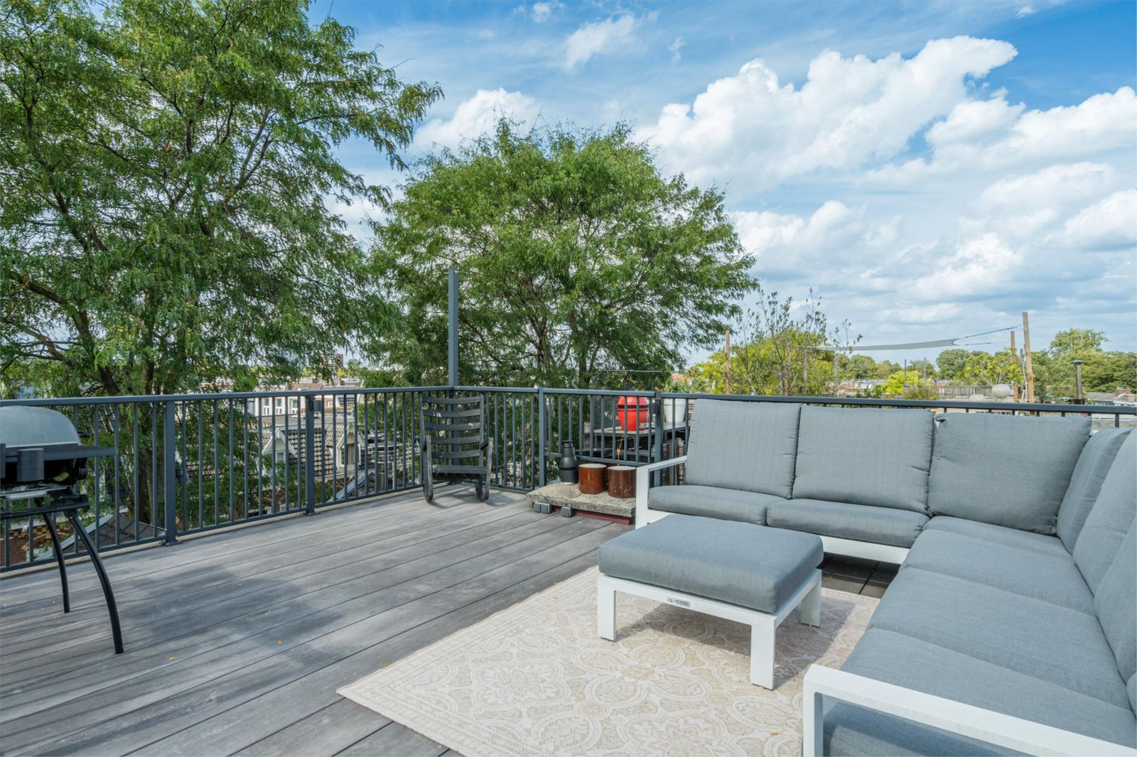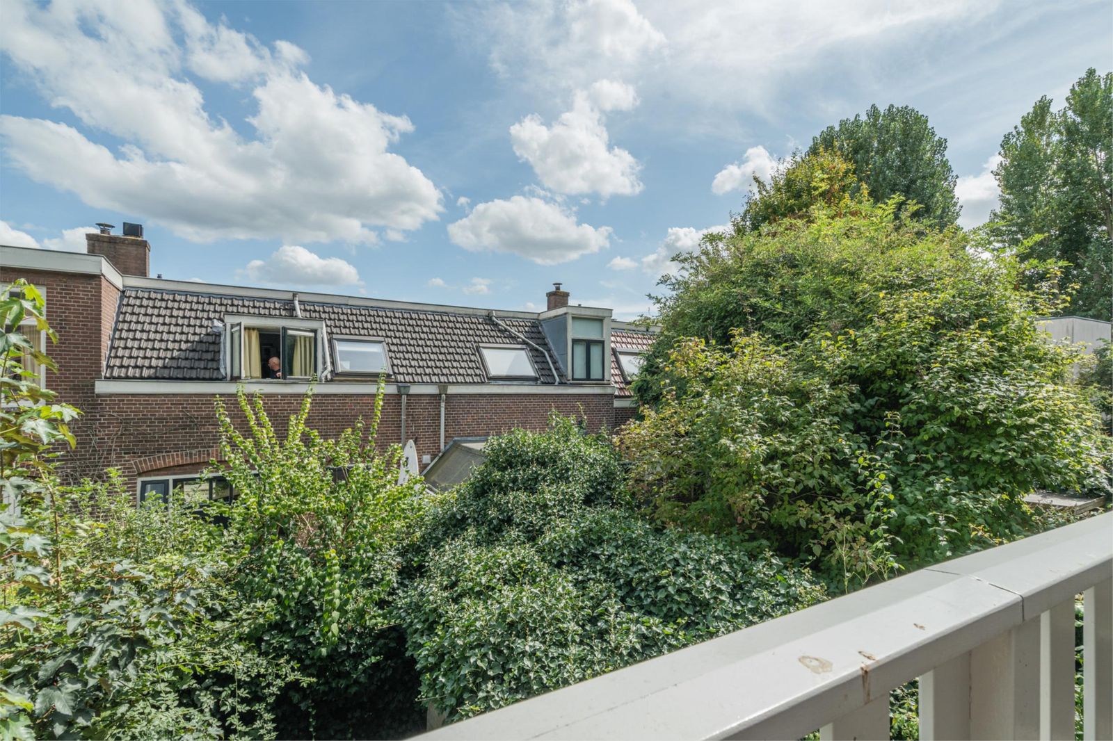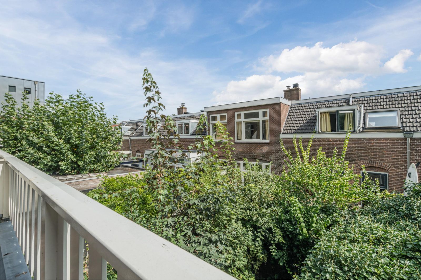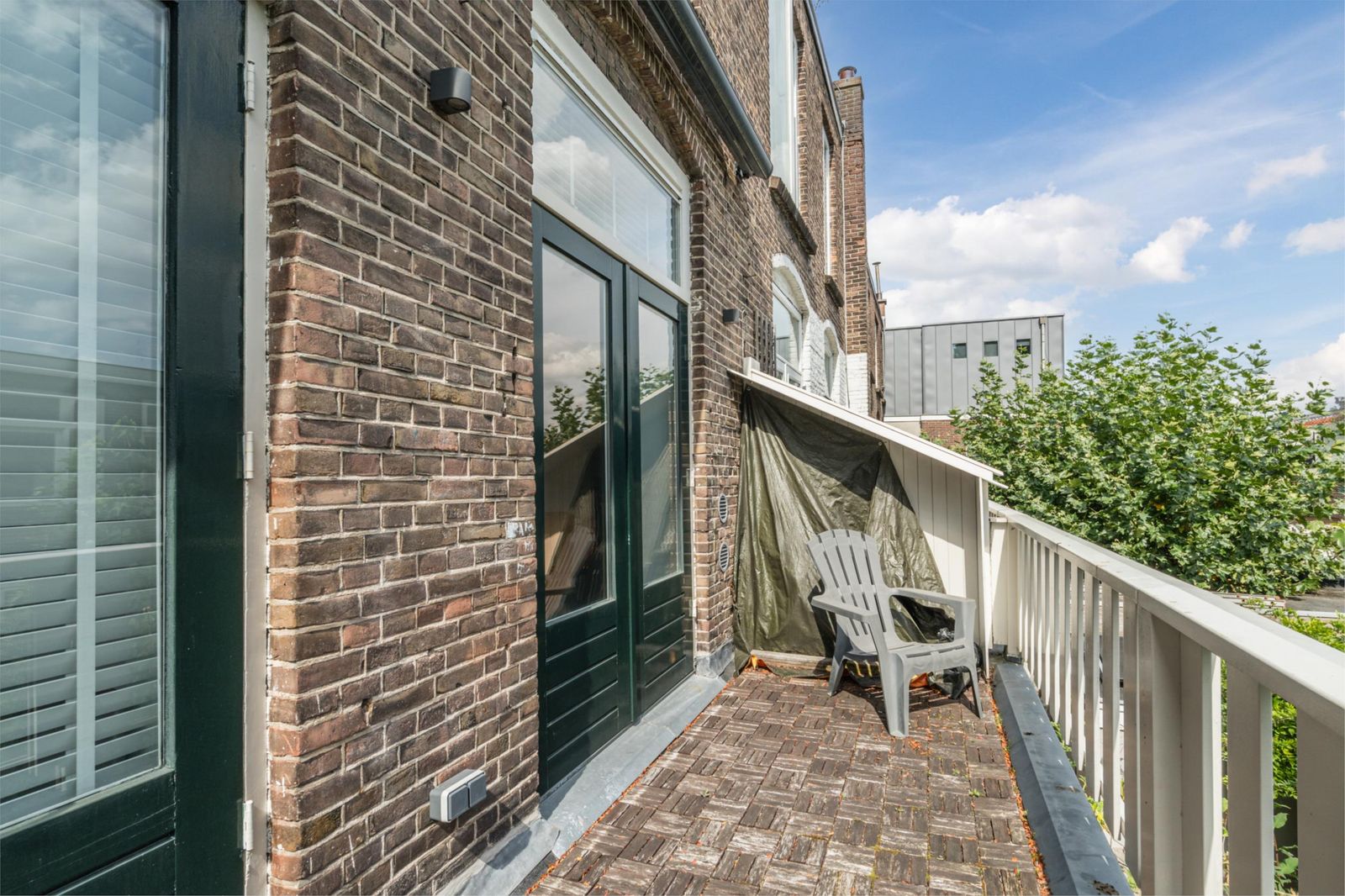 The roof terrace is an oasis of calm in the city and has a magnificent view. In summer, it is wonderfully green thanks to the surrounding trees. The roof terrace has mood lighting and a double socket. There is also a comfortable aluminium lounge sofa for 5 people and two large Keter boxes for storing the cushions during the season. There is also a sunshade that can be easily stretched between the four corner posts using straps. The roof terrace is made of durable and maintenance-free composite "wood" and aluminium fencing.