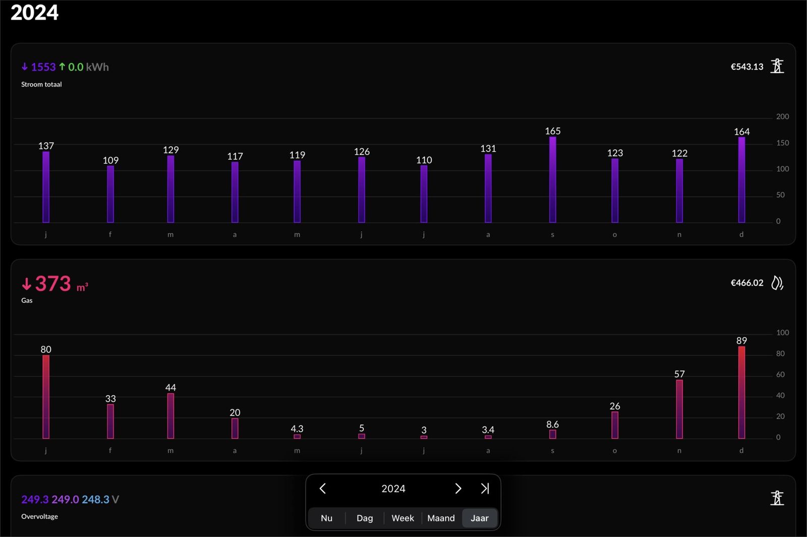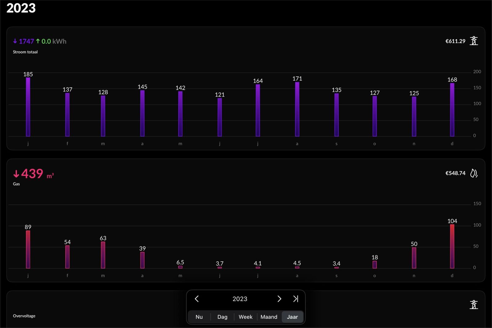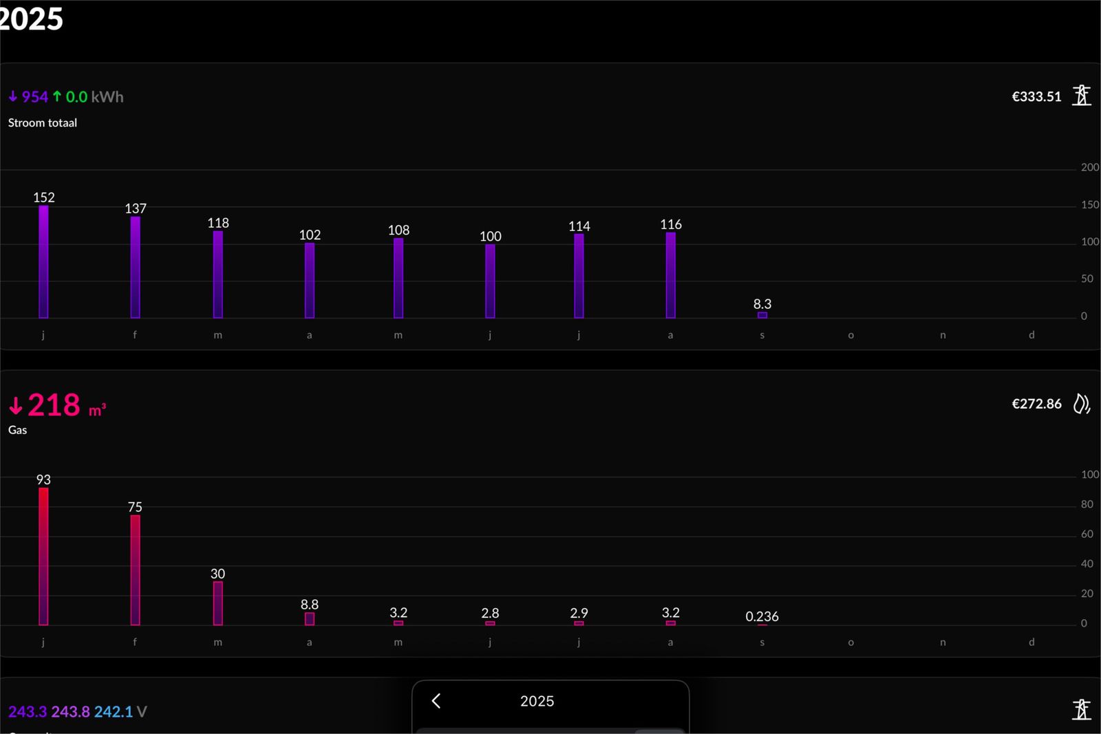 - huidige energiekosten per maand €108 (zie screenshots van energie verbruik)