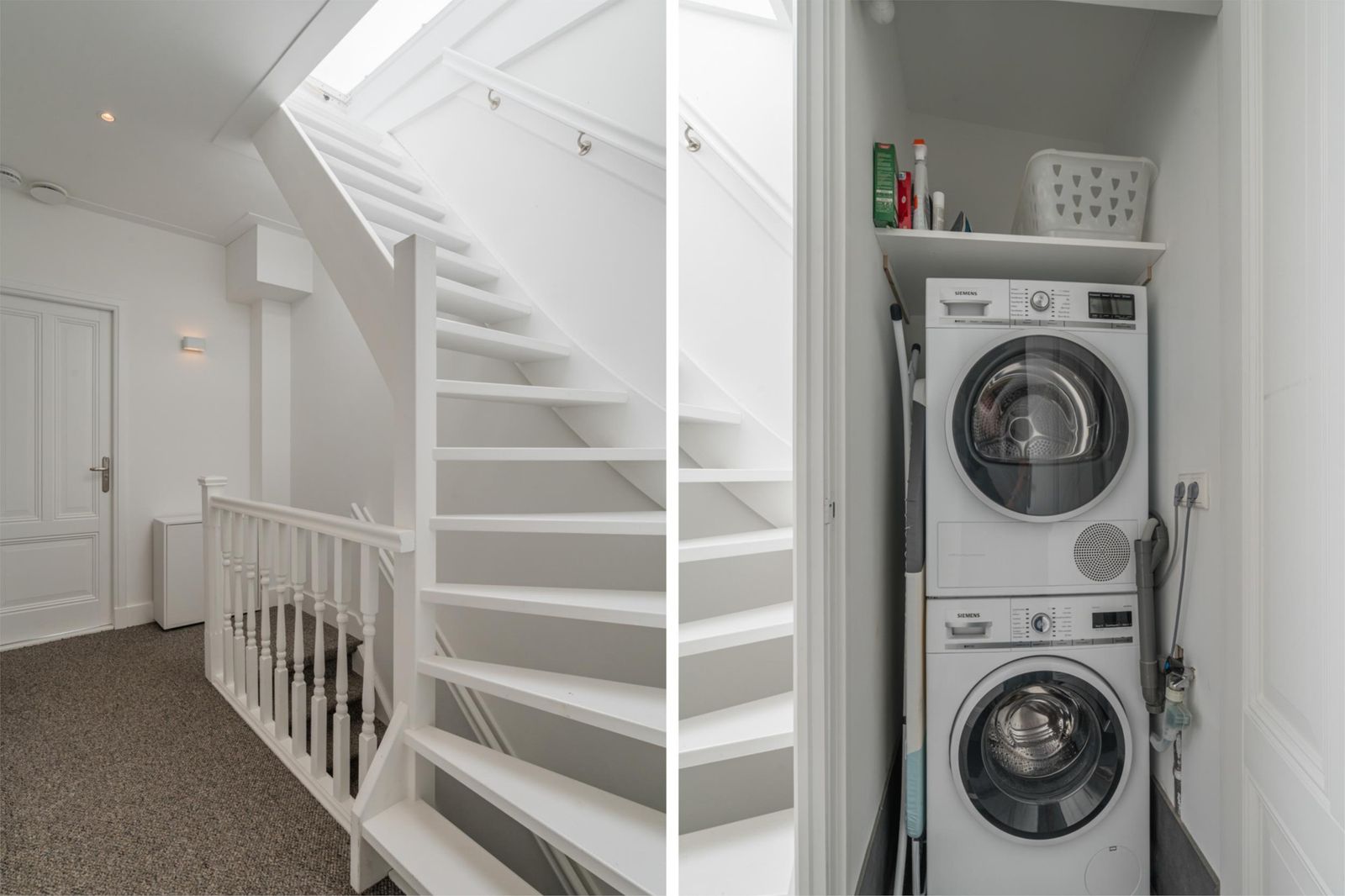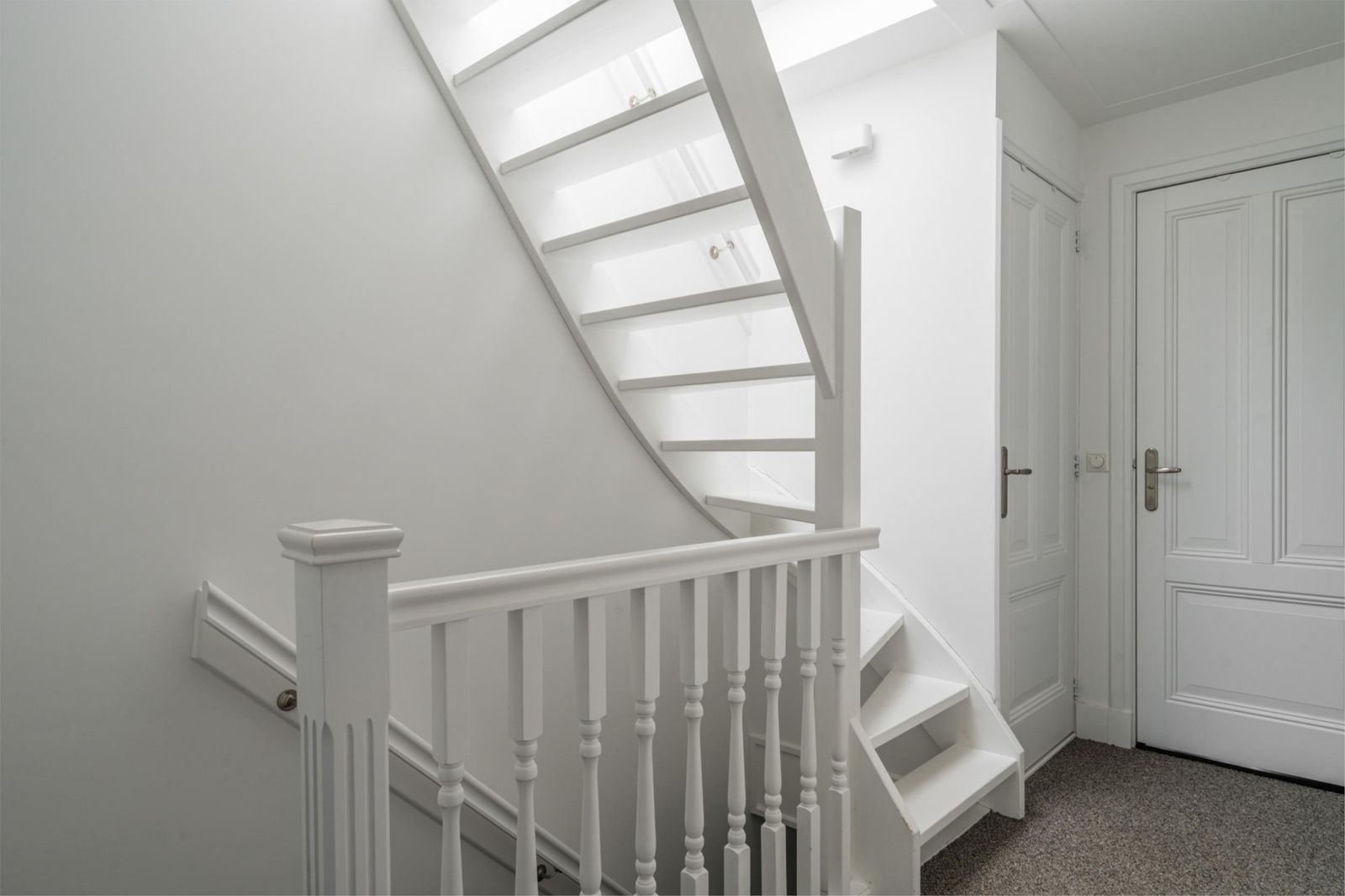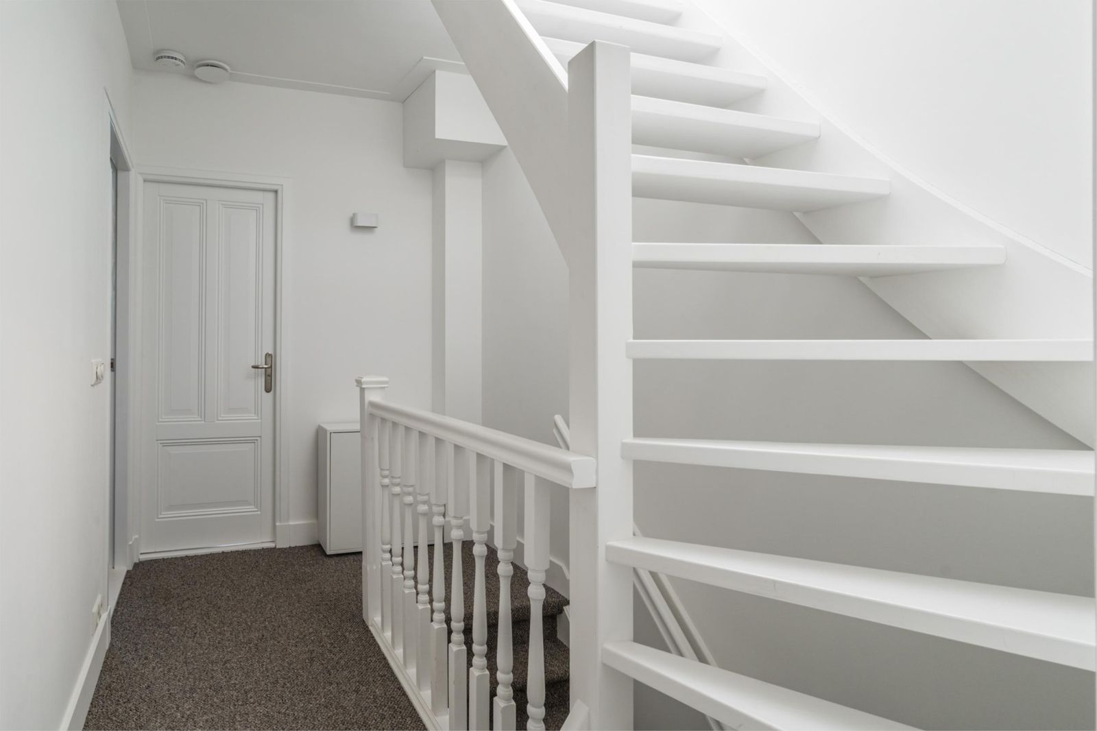 Achter de nieuwe “replica” deur met metaal versterking, anti-inbraak glas en driepuntssluiting vind je de hal met trapopgang, meterkast voor gas, elektra en glasvezel internet, kapstok en toegang tot de kleine (wijn)kelder.