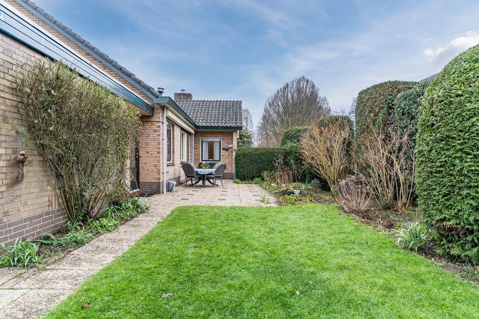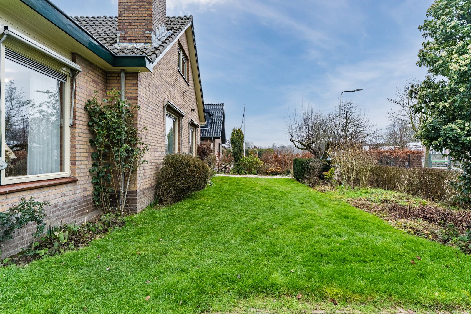 Rondom de woning ligt een prachtig perceel van 711 m². De tuin is verzorgd met veel volwassen beplanting maar ook een blanco canvas voor wie groene vingers heeft. Dankzij de grote breedte en diepte zijn er talloze mogelijkheden: