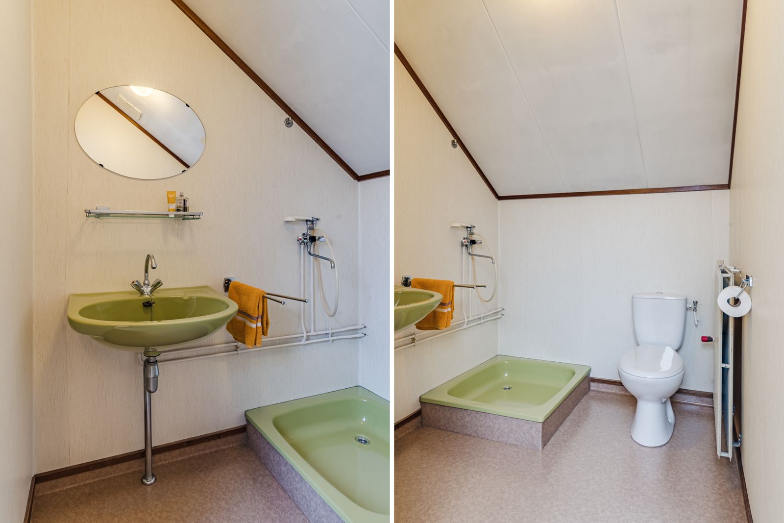 De eerste verdieping biedt twee uitzonderlijk ruime slaapkamers, elk met een knusse sfeer en voldoende ruimte voor een werkplek of zithoek. Een tweede badkamer maakt deze verdieping ideaal voor logees, een gezin of het creëren van een exclusieve werkomgeving. Achter de knieschotten bevindt zich extra bergruimte, waardoor het interieur strak en opgeruimd blijft.