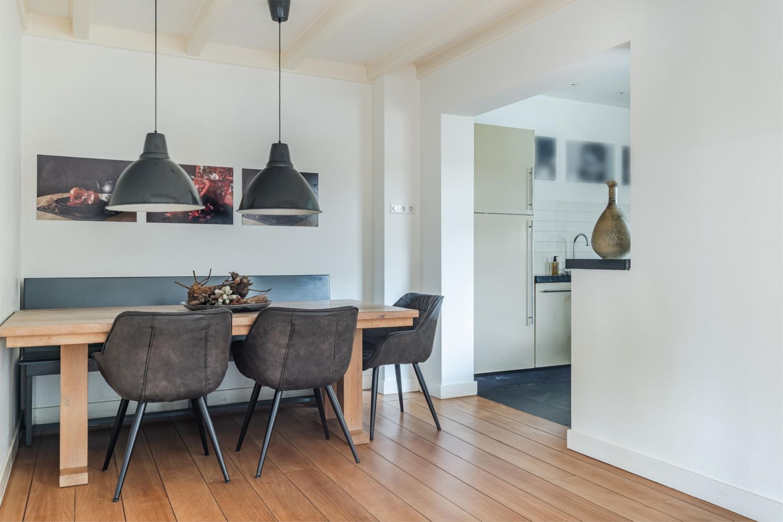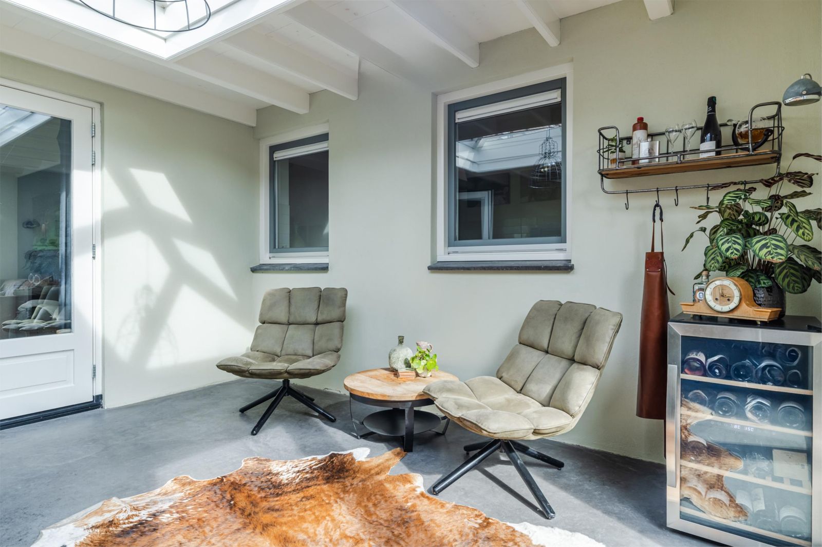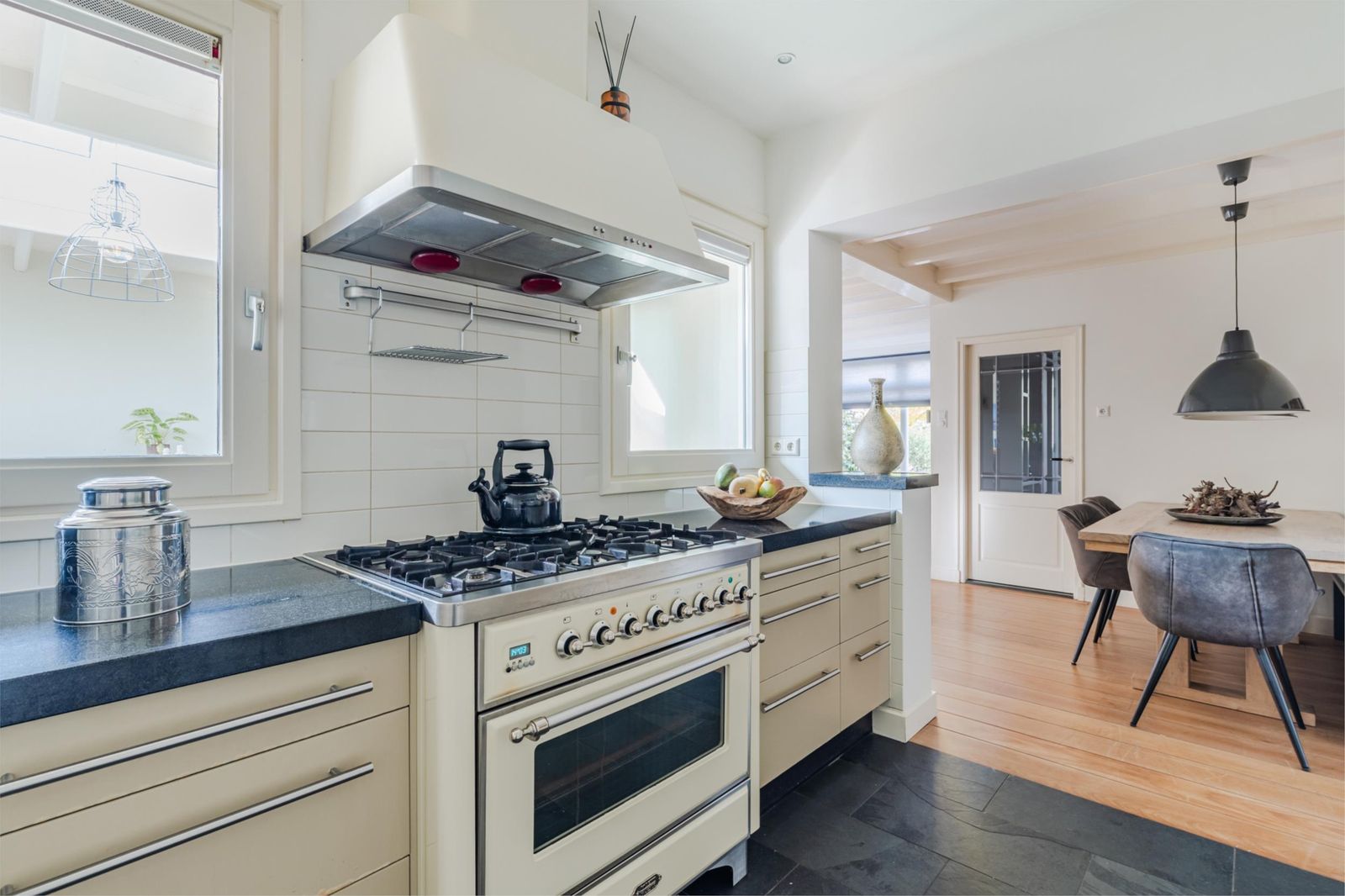 De ruime woonkamer is sfeervol en voorzien van een houtkachel, mooie houten vloer en een gezellige zithoek. Aan de andere kant van de woonkamer is er plaats voor een grote eettafel. De open keuken is uitgerust met een stijlvol Boretti-gasfornuis met 6 branders inclusief elektrische oven en afzuigkap, hardstenen aanrechtblad, koelkast, vaatwasser, voldoende kastruimte en vloerverwarming. Aangrenzend aan de keuken vind je een ruime bijkeuken met een vaste kast, de Remeha CV-combiketel (2020), de aansluiting voor wasmachine en droger. Deze ruimte heeft ook vloerverwarming en geeft tegelijk toegang tot de opvallend grote achtertuin. De tuinkamer op het zuiden is erg uniek door het vele glaswerk waardoor je geniet van veel natuurlijk licht.
