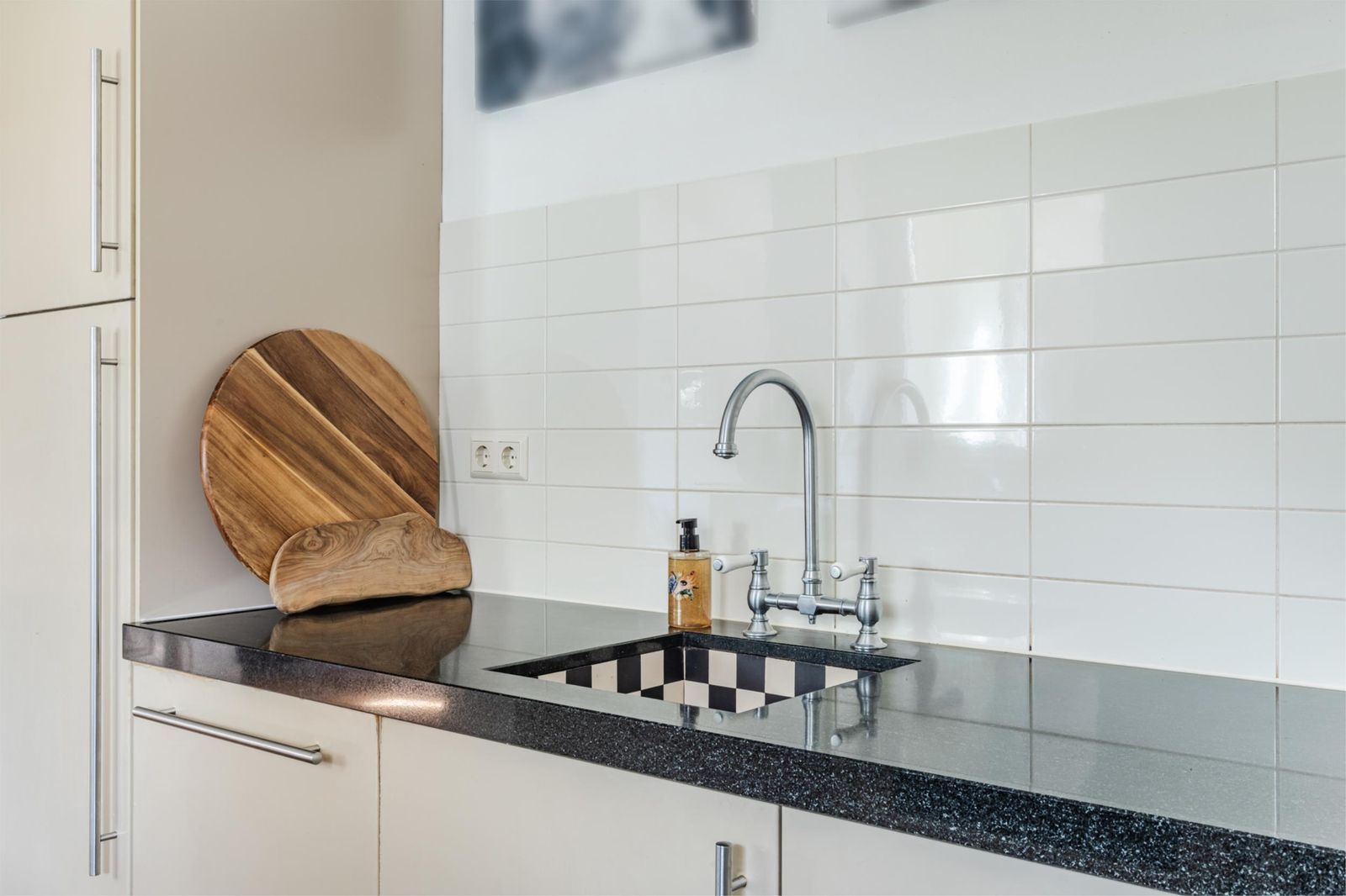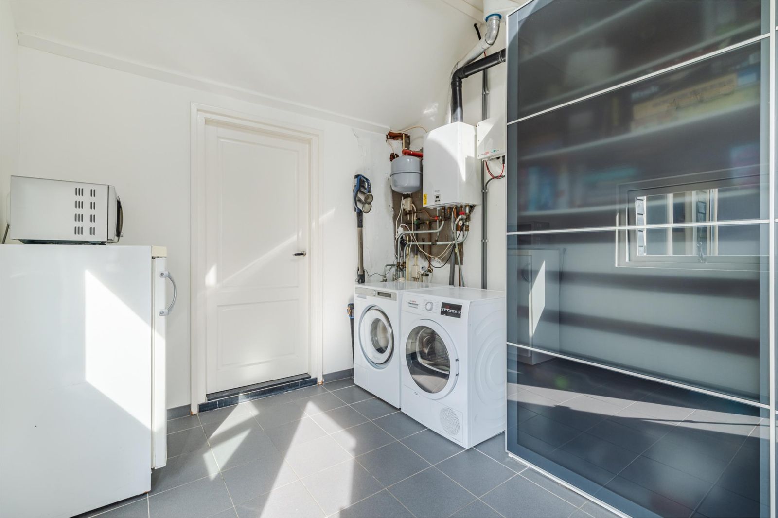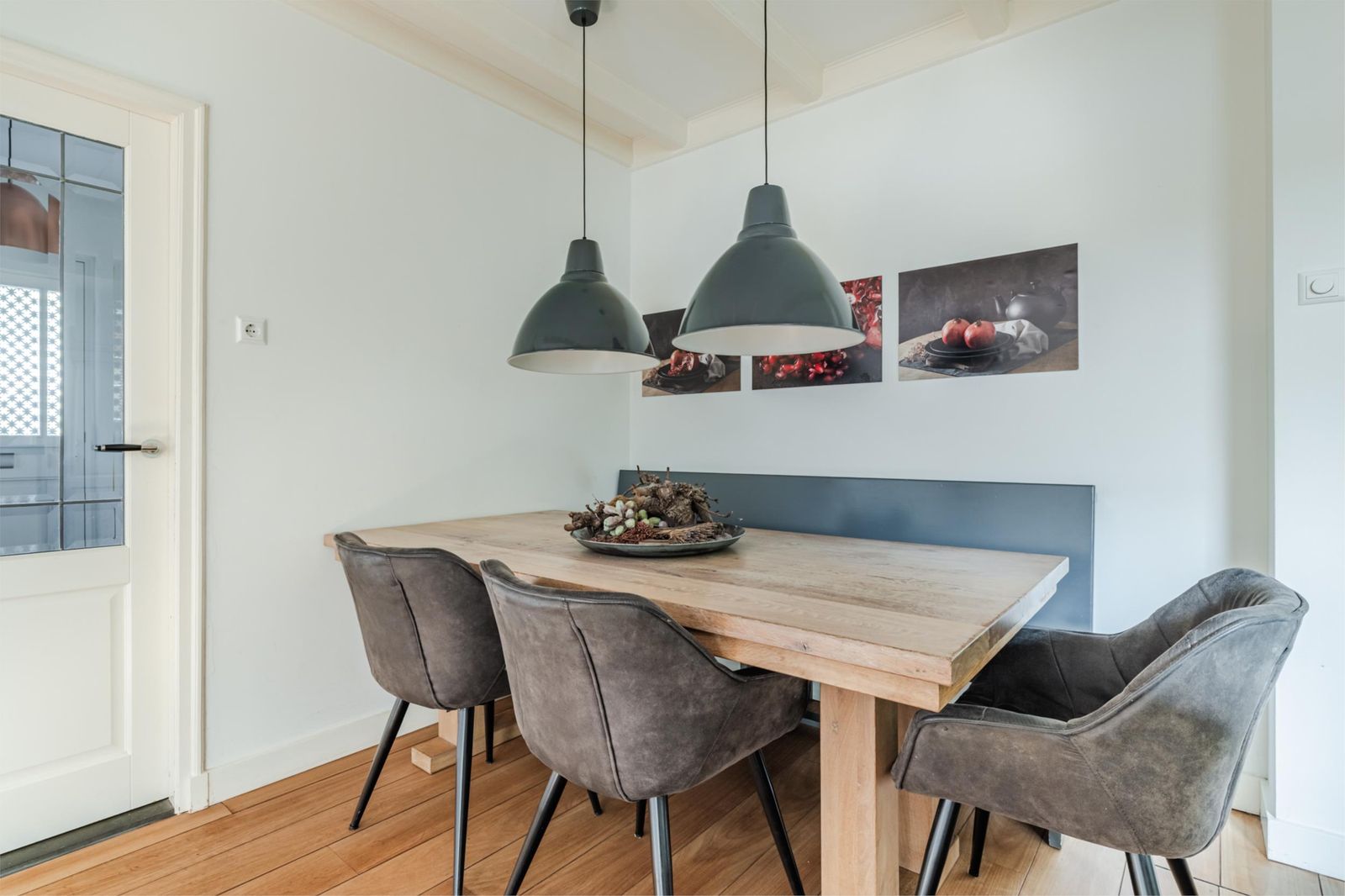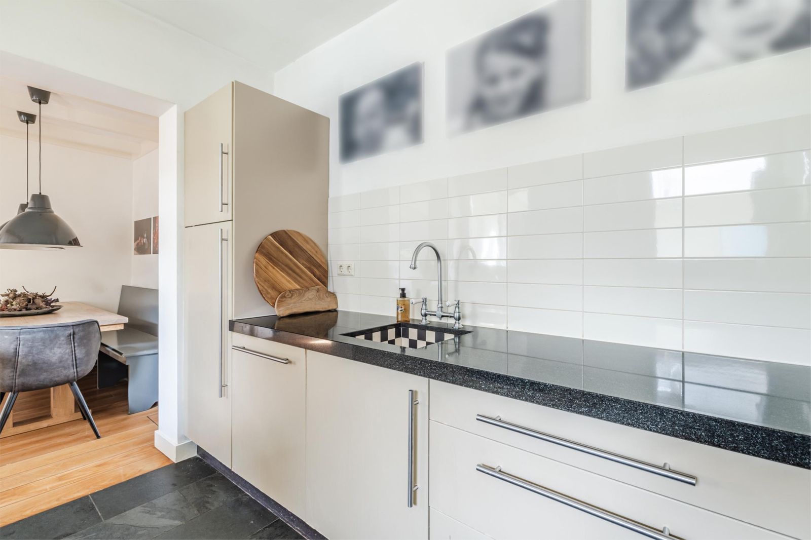 De ruime woonkamer is sfeervol en voorzien van een houtkachel, mooie houten vloer en een gezellige zithoek. Aan de andere kant van de woonkamer is er plaats voor een grote eettafel. De open keuken is uitgerust met een stijlvol Boretti-gasfornuis met 6 branders inclusief elektrische oven en afzuigkap, hardstenen aanrechtblad, koelkast, vaatwasser, voldoende kastruimte en vloerverwarming. Aangrenzend aan de keuken vind je een ruime bijkeuken met een vaste kast, de Remeha CV-combiketel (2020), de aansluiting voor wasmachine en droger. Deze ruimte heeft ook vloerverwarming en geeft tegelijk toegang tot de opvallend grote achtertuin. De tuinkamer op het zuiden is erg uniek door het vele glaswerk waardoor je geniet van veel natuurlijk licht.