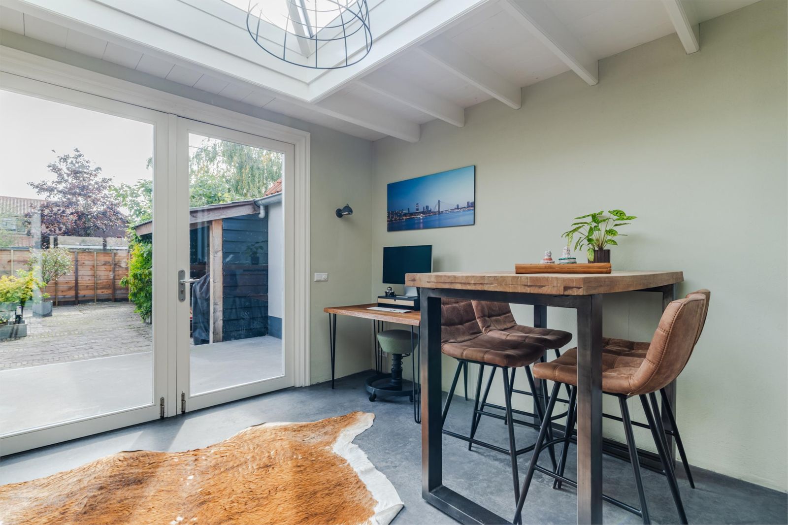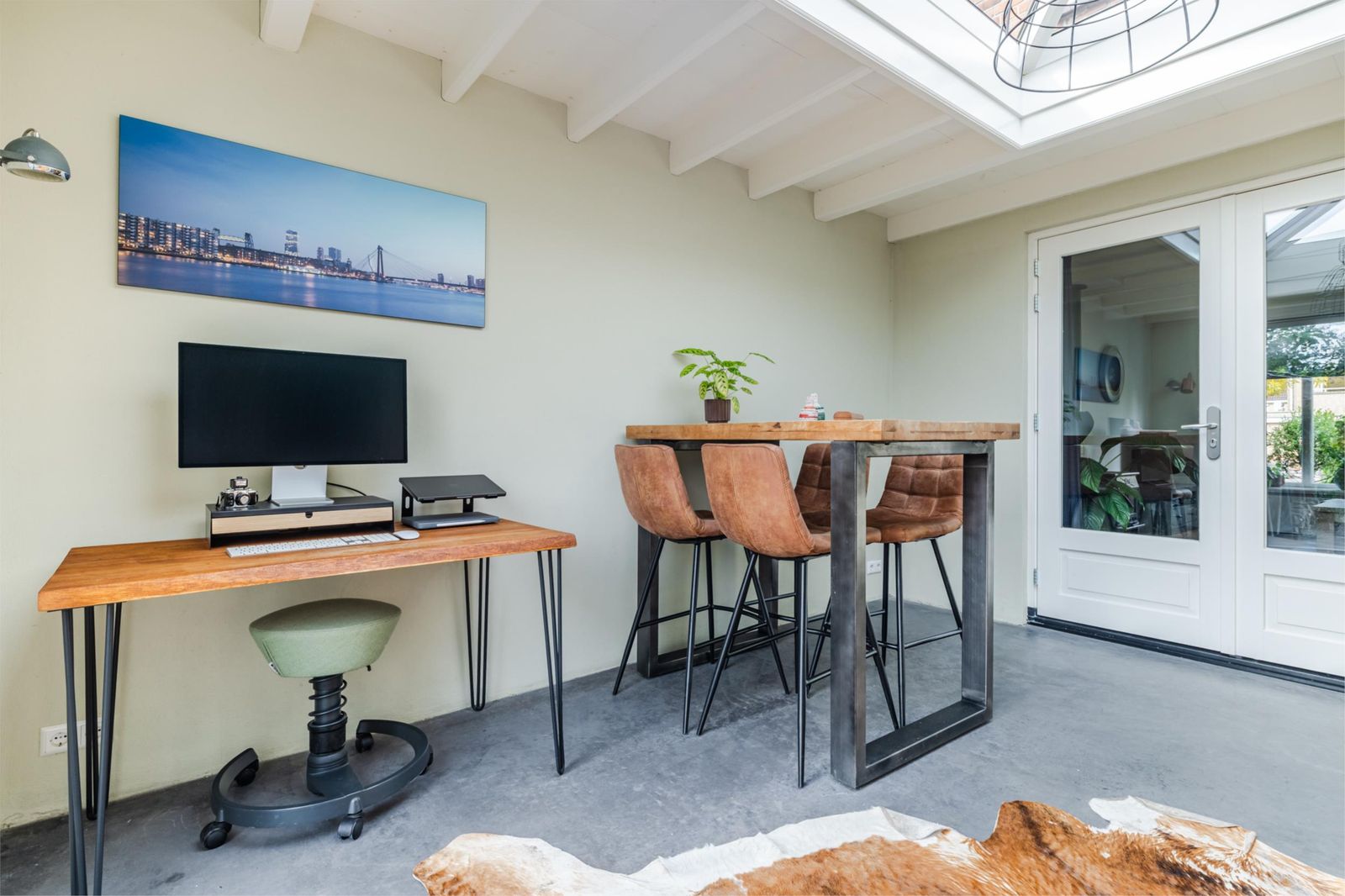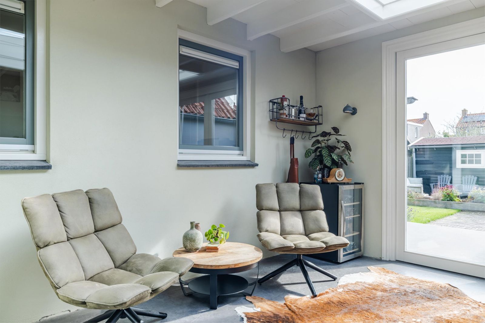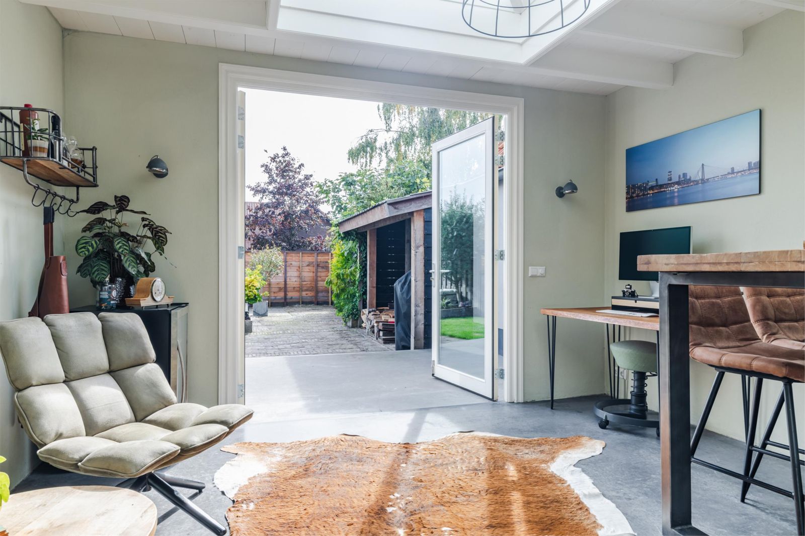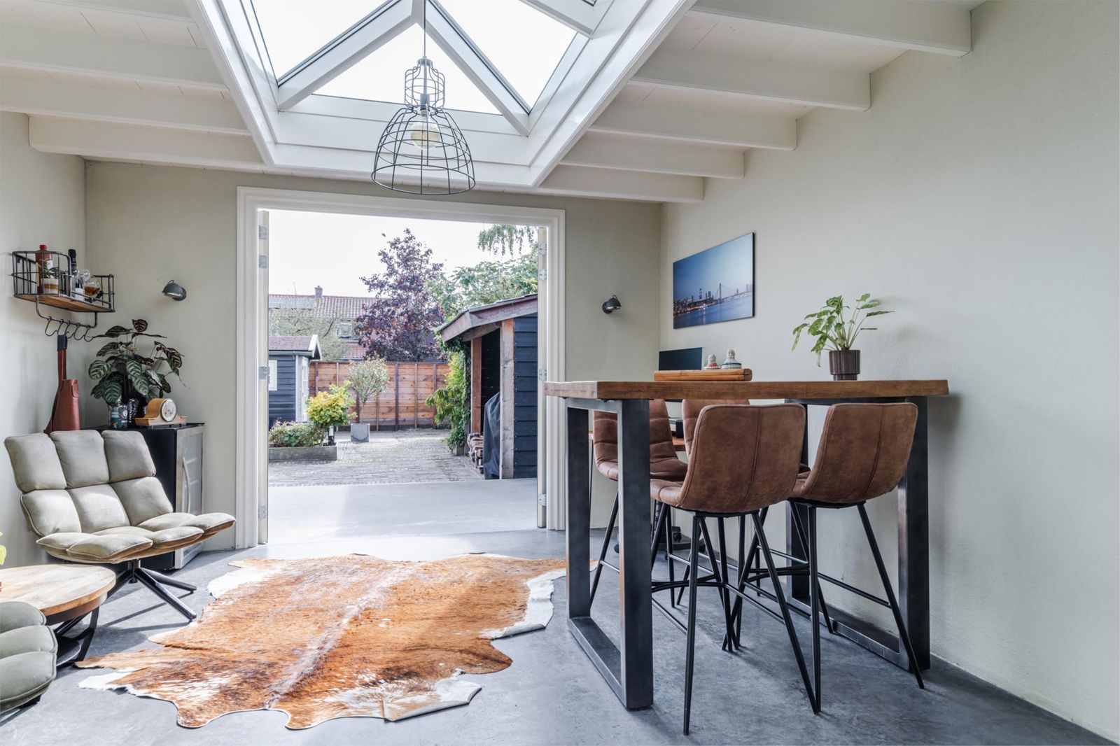 De woning ligt in een erg rustige straat met parkeergelegenheid direct voor de deur. Vanuit de voortuin is er een laadvoorziening voor een electrisch voertuig. De straat is doodlopend, kent hierdoor weinig verkeer, wat zorgt voor een veilige en prettige woonomgeving. Het sierwatertje aan de voorzijde maakt het straatbeeld compleet. Via de voordeur kom je in de hal met een grote garderobekast, toilet, betegelde kelderruimte, meterkast en de trap naar boven. Vanuit de hal loop je door naar de woonkamer met open keuken en de prachtige afsluitbare aanbouw / tuinkamer met daklicht en openslaande deuren naar de zonnige achtertuin.
