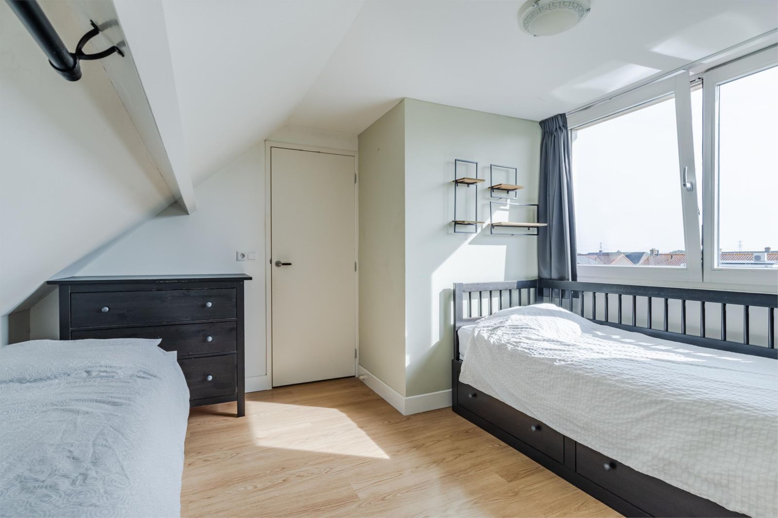 De zolderverdieping bereik je via een vaste trap. Aan de zuidkant bevindt zich over de gehele breedte een mooi afgewerkt dakkapel met twee nette slaapkamers en veel bergruimte achter de knieschotten en extra ruime opbergkast.