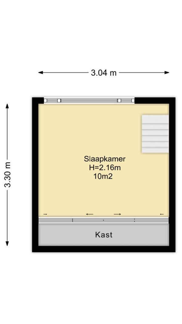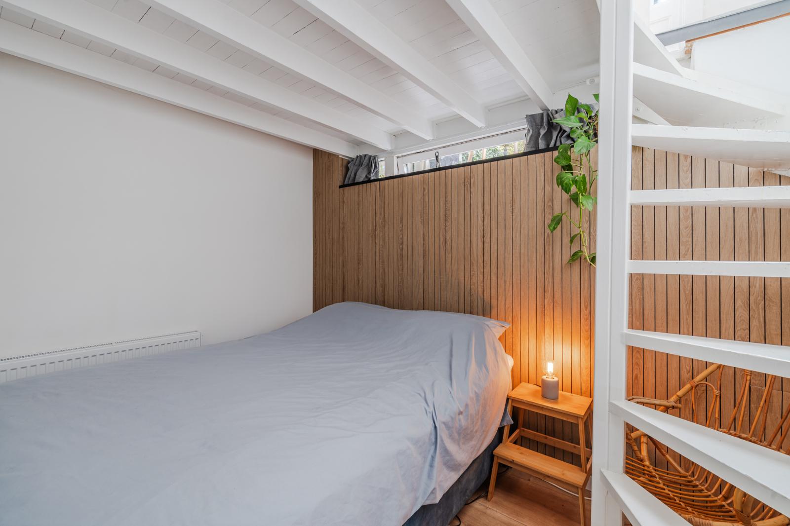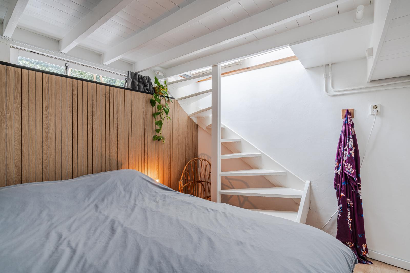 Via de trap bereik je het souterrain, waar zich de tweede slaapkamer bevindt. Een rustige, beschutte ruimte die zich uitstekend leent als slaapkamer, logeerkamer of werkruimte. In de zomer blijft het hier aangenaam koel, wat zorgt voor een comfortabel en constant binnenklimaat.