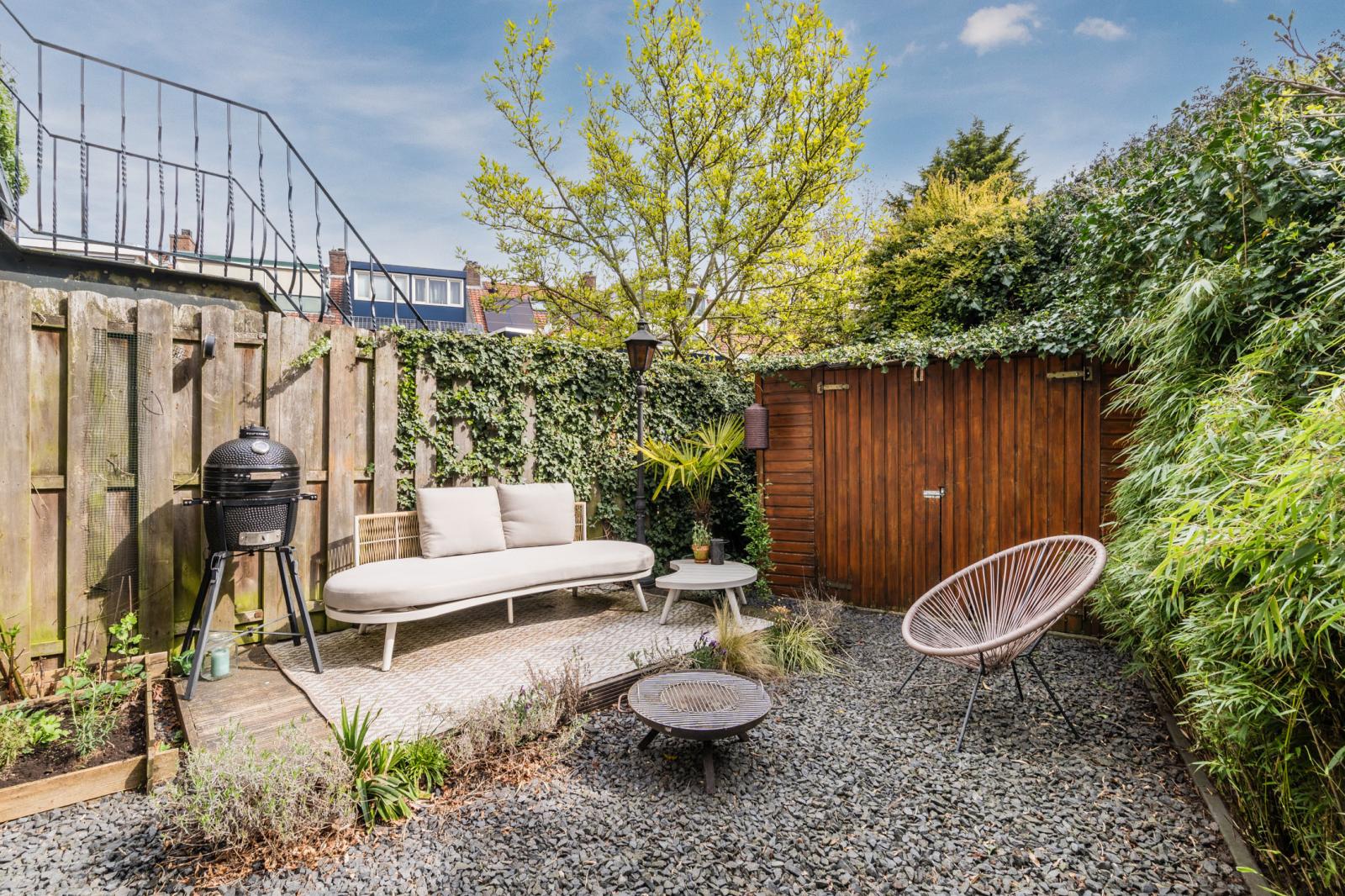 De tuin is zonder twijfel een van de grote kwaliteiten van deze woning. Door de gunstige ligging geniet je hier de hele dag van een mooie afwisseling tussen zon en schaduw. Of je nu wilt ontspannen in de zon, dineren in het avondlicht of verkoeling zoekt op warme dagen - hier kan het allemaal.
