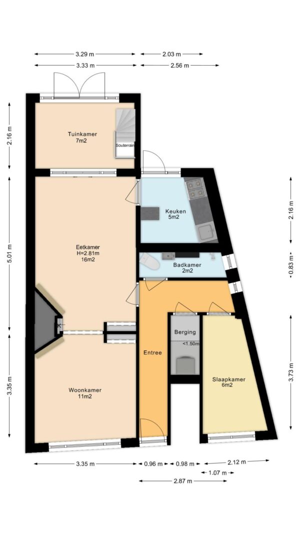 - Twee slaapkamers (een aan de voorzijde en een in souterrain)