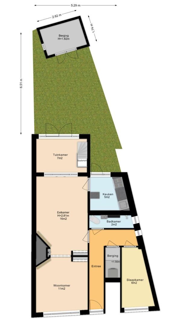 - Tuin op het oosten met schuur