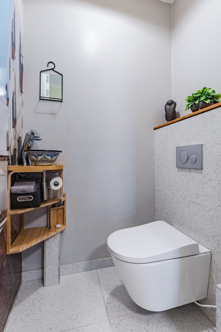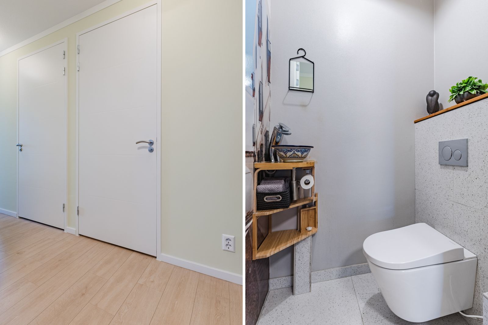 Separaat toilet, uitgevoerd als modern Japans toilet met geïntegreerde bidetfunctie, föhn en luchtafzuiging