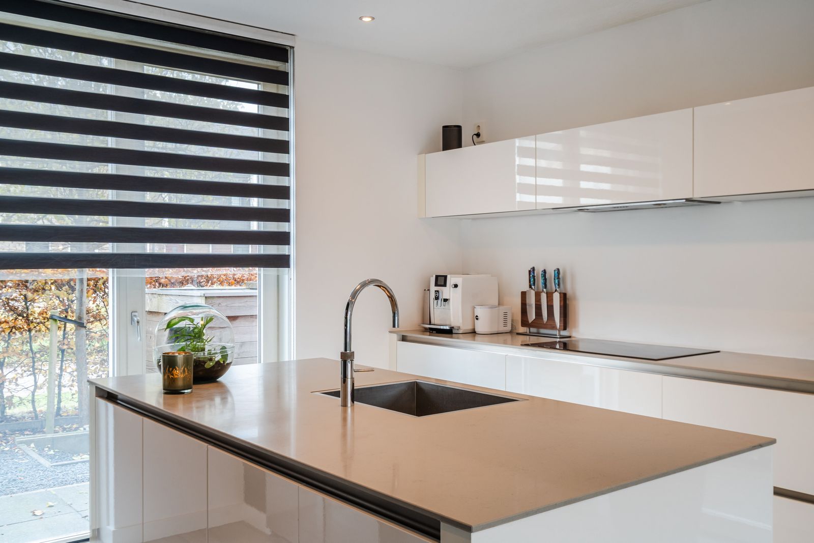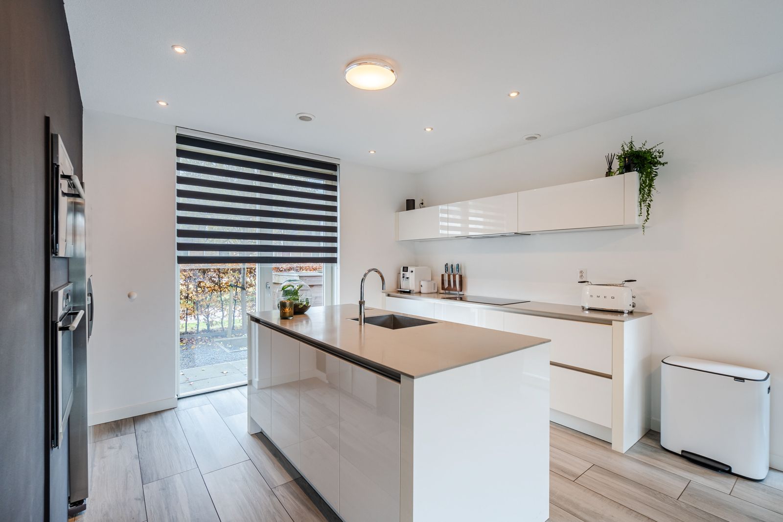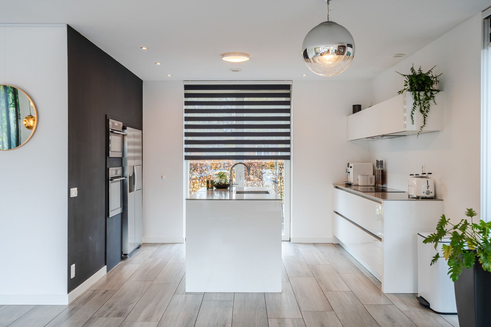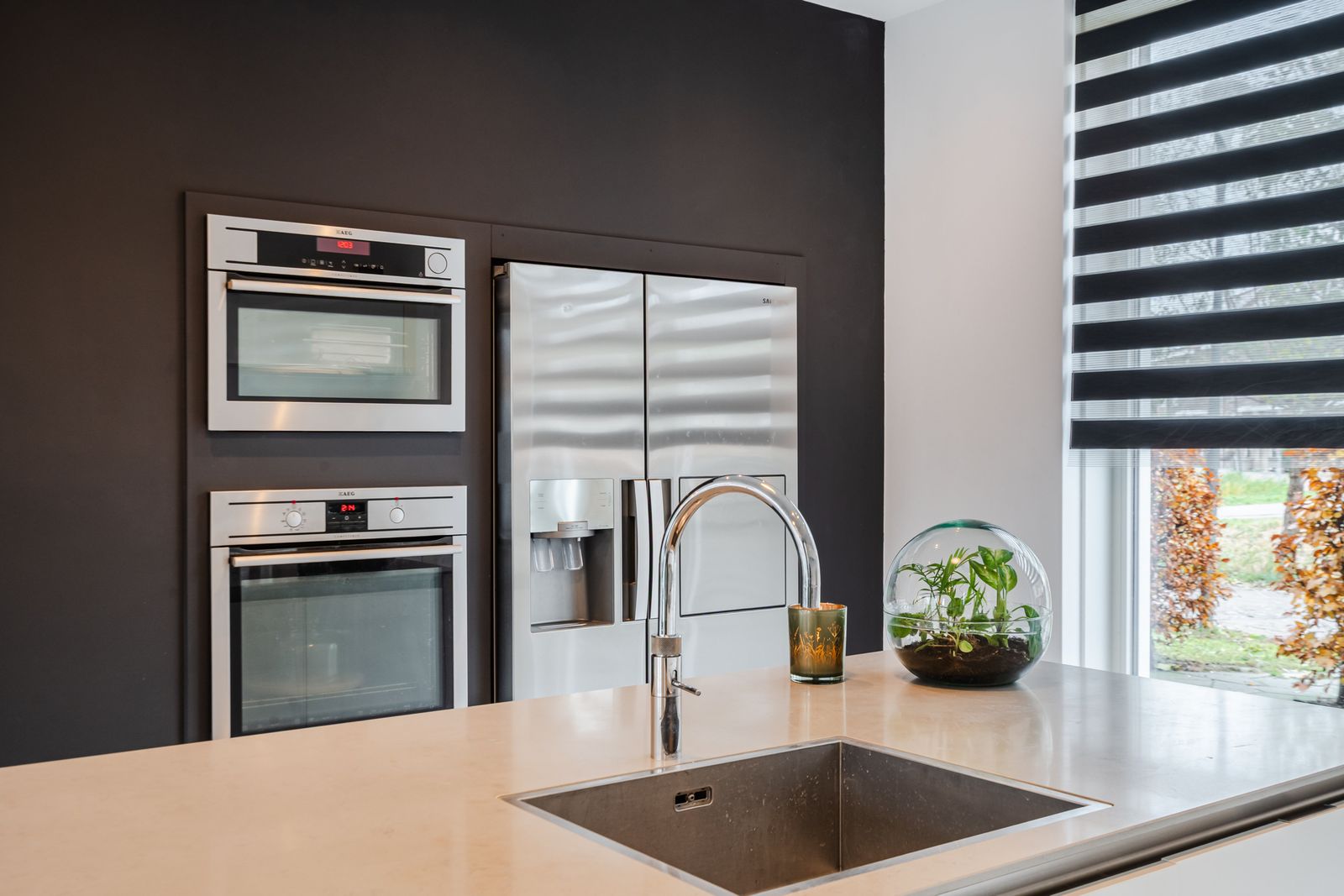 De hoogwaardige woonkeuken met een ruim spoel-eiland, is het hart van het huis. Een ideale plek om uitgebreid te bakken en/of koken. De keuken is voorzien van alle moderne apparatuur, zoals o.a. een Qooker, een ijsblokjesmachine, ruime vaatwasser, oven, stoomoven en inductie kooksysteem met meer dan genoeg ruimte voor veel pannen.