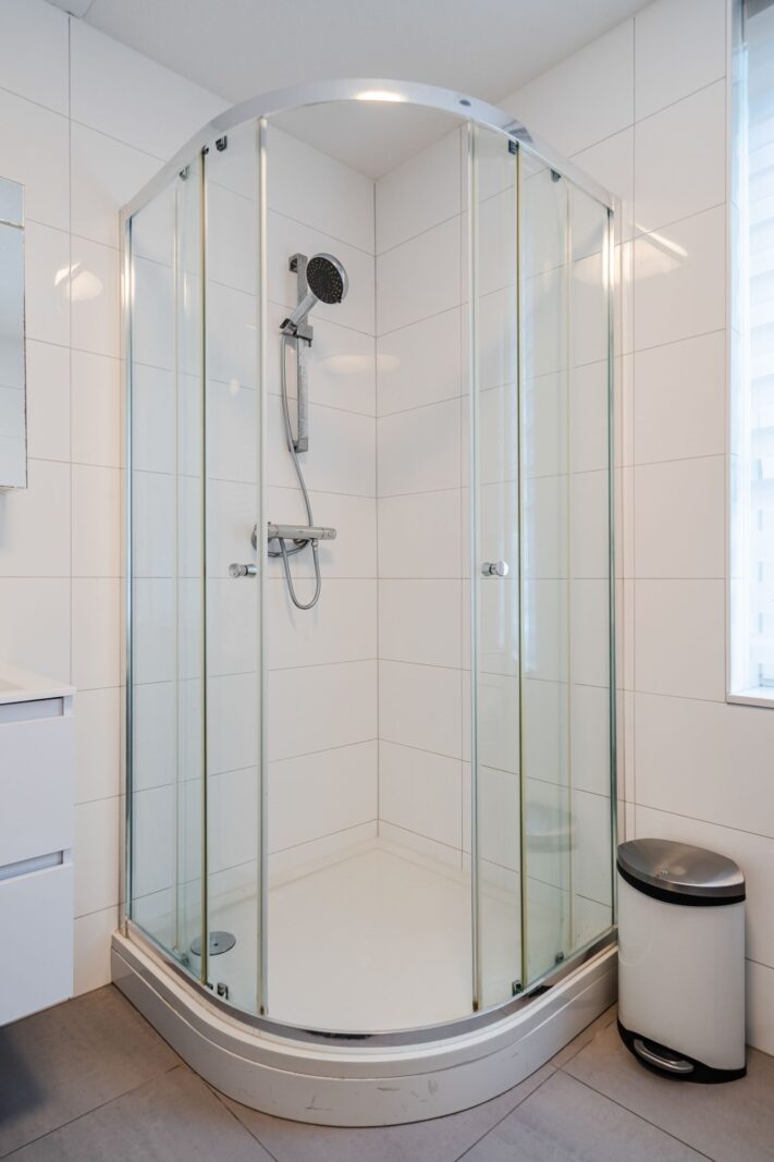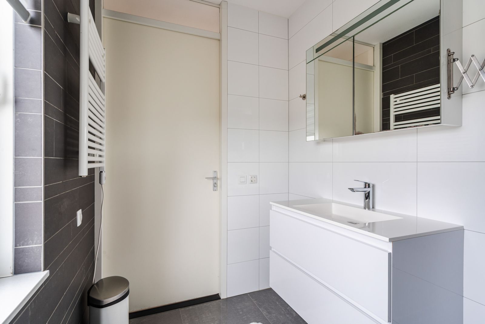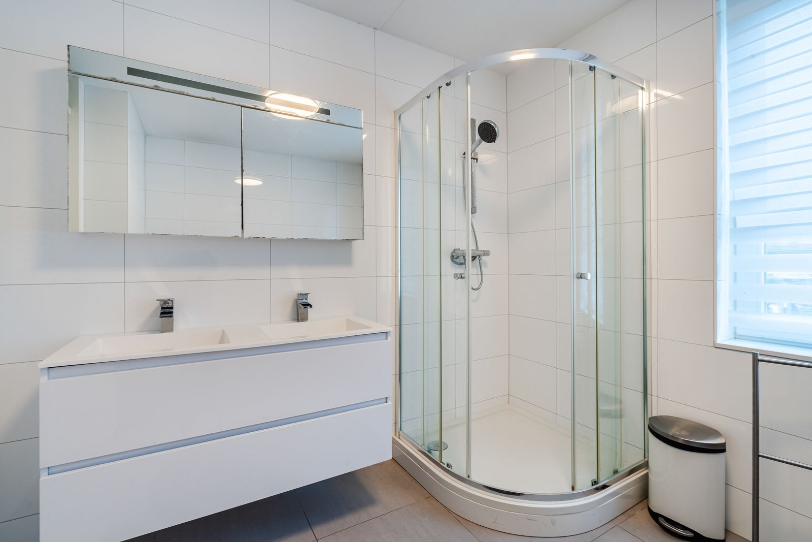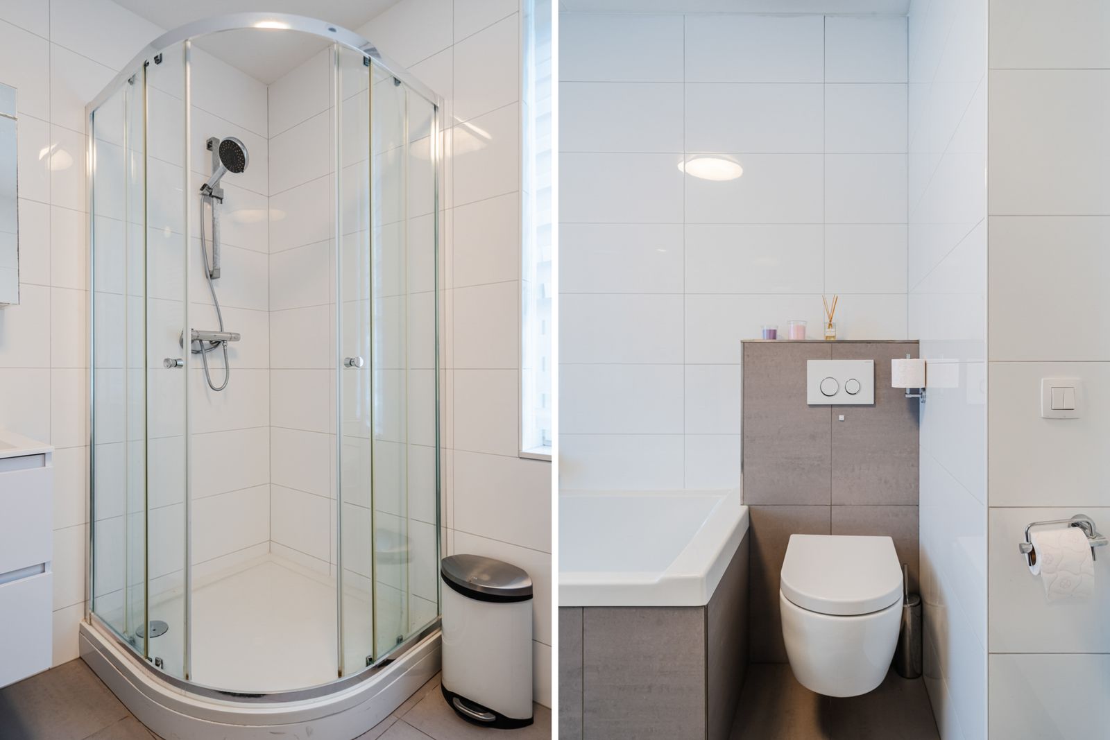 ’s Ochtends geen rij voor de badkamer! De twee strak afgewerkte badkamers bieden gemak en luxe. Op de eerste etage een badkamer met bad, aparte douche en dubbele wastafel en heerlijk licht door het grote raam met uitzicht op de tuin. Op de tweede etage een badkamer aansluitend aan de masterbedroom met een ruime douche, een wastafel en ook hier veel lichtinval door het raam naar het groen aan de voorzijde.