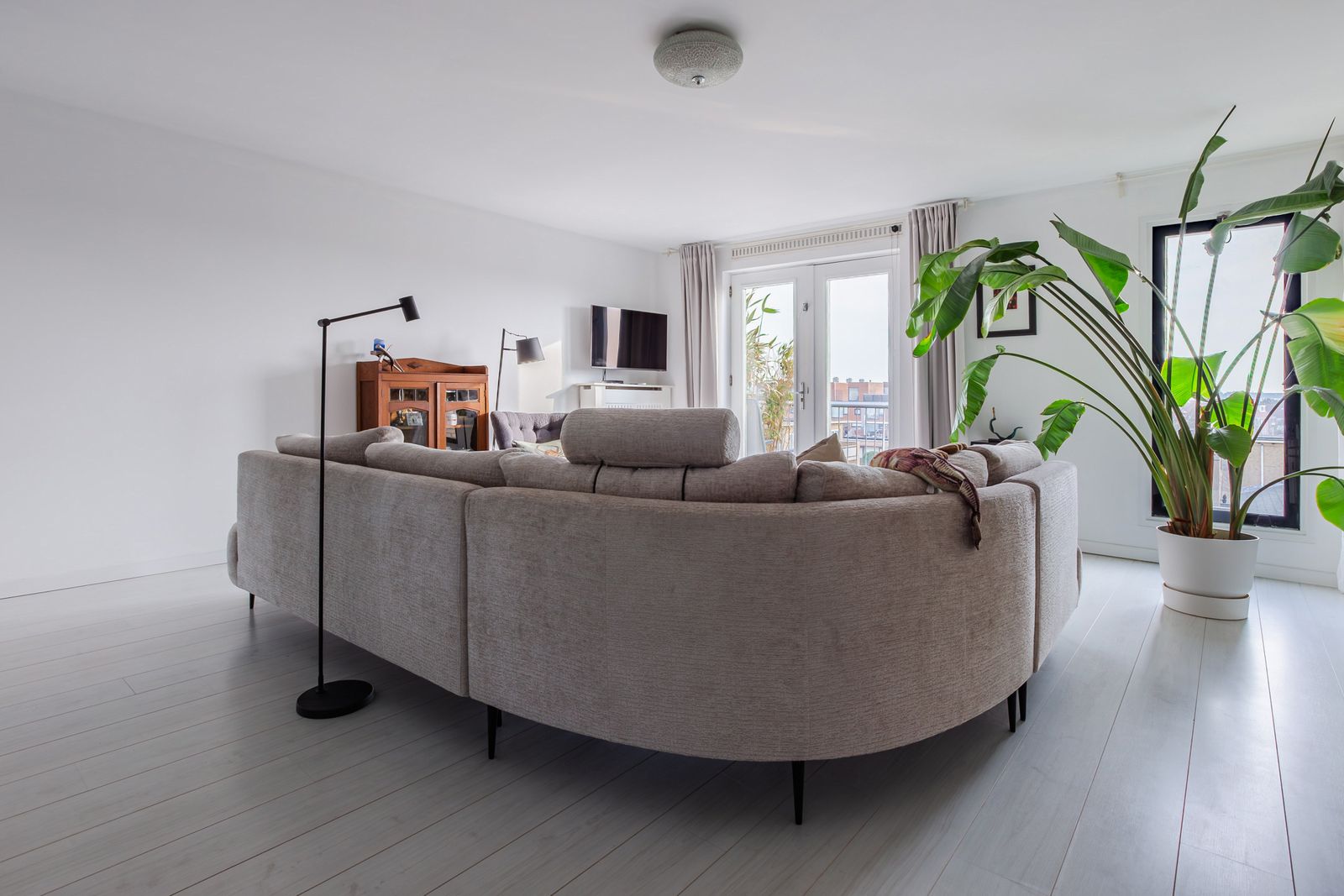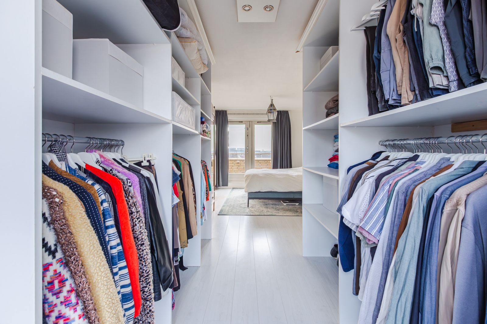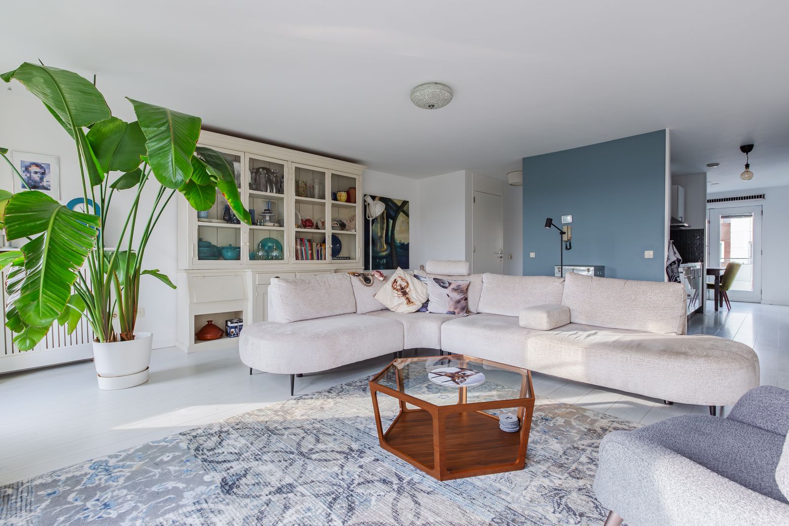 De eerste verdieping heeft aan de voorzijde een knusse eetkamer en aan de achterzijde een royale huiskamer met openslaande deuren aan een balkon met fraai uitzicht. Tevens een toilet en aparte ruimte voor de wasmachine en droger. Ook is er een zeer verrassende, aan het zicht onttrokken, garderobe- annex bergingsruimte. De strak gestuukte wanden zijn in juni 2025 opnieuw in de verf gezet.
