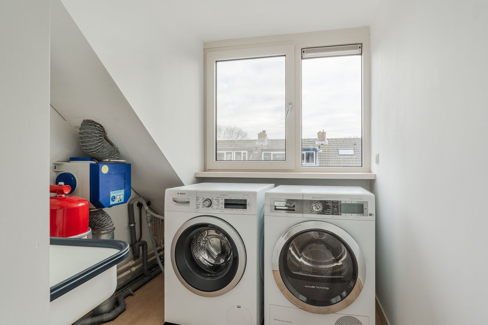 Overloop met toegang tot een stook- en wasruimte met kraan en uitstortgootsteen. De 2 grote dakkapellen met rolluiken zorgen voor 2 ruime slaapkamers. Als bonus op deze verdieping ook nog een 6e slaapkamer, nu in gebruik als kantoorruimte, ideaal voor thuiswerken! De zolderverdieping biedt extra bergruimte met een vliering en bergruimte achter knieschotten.