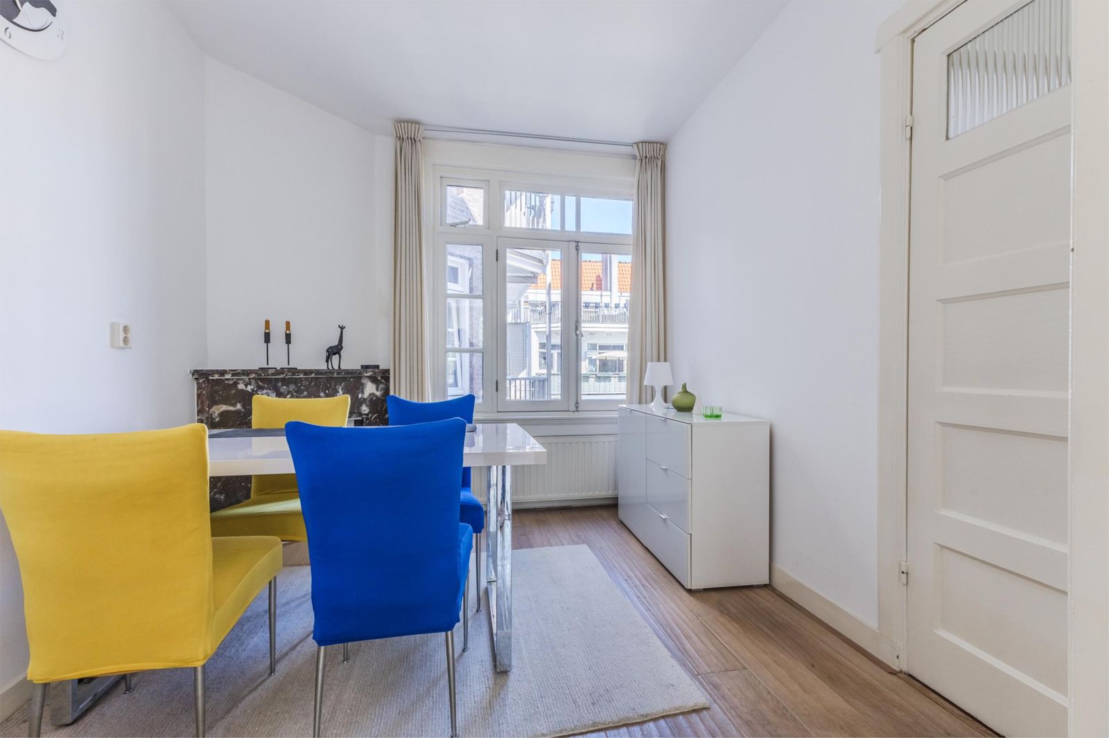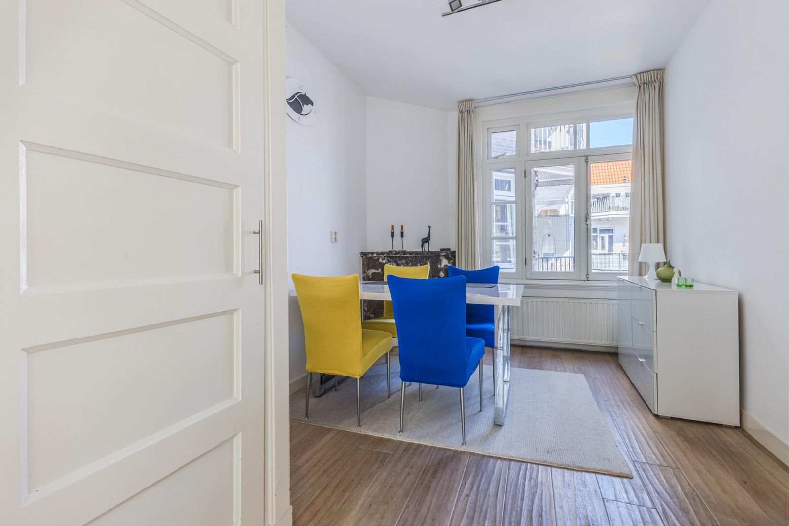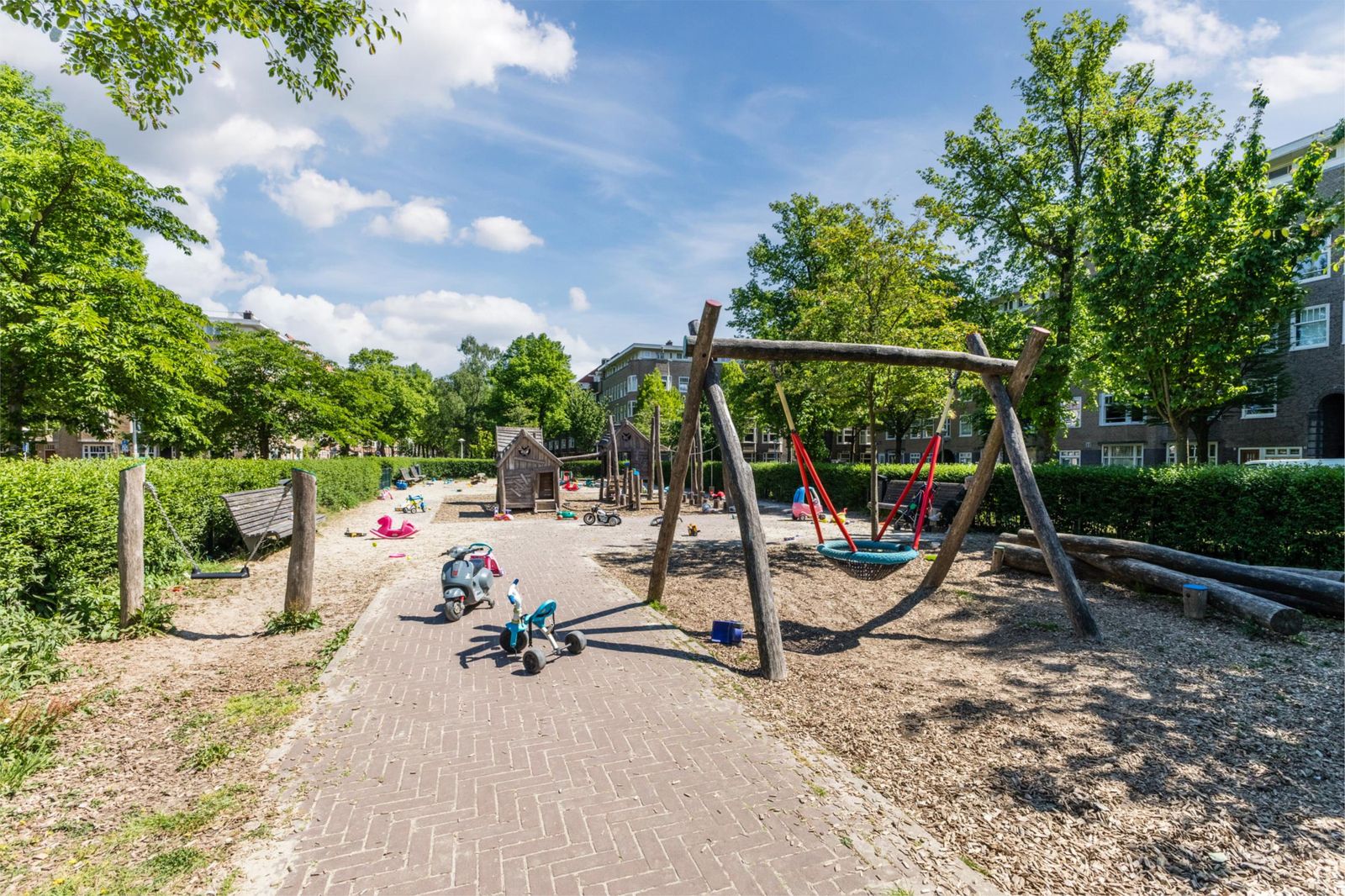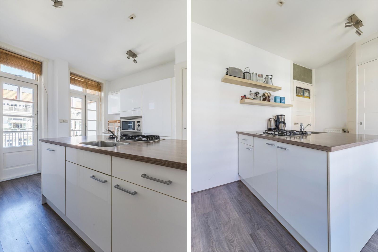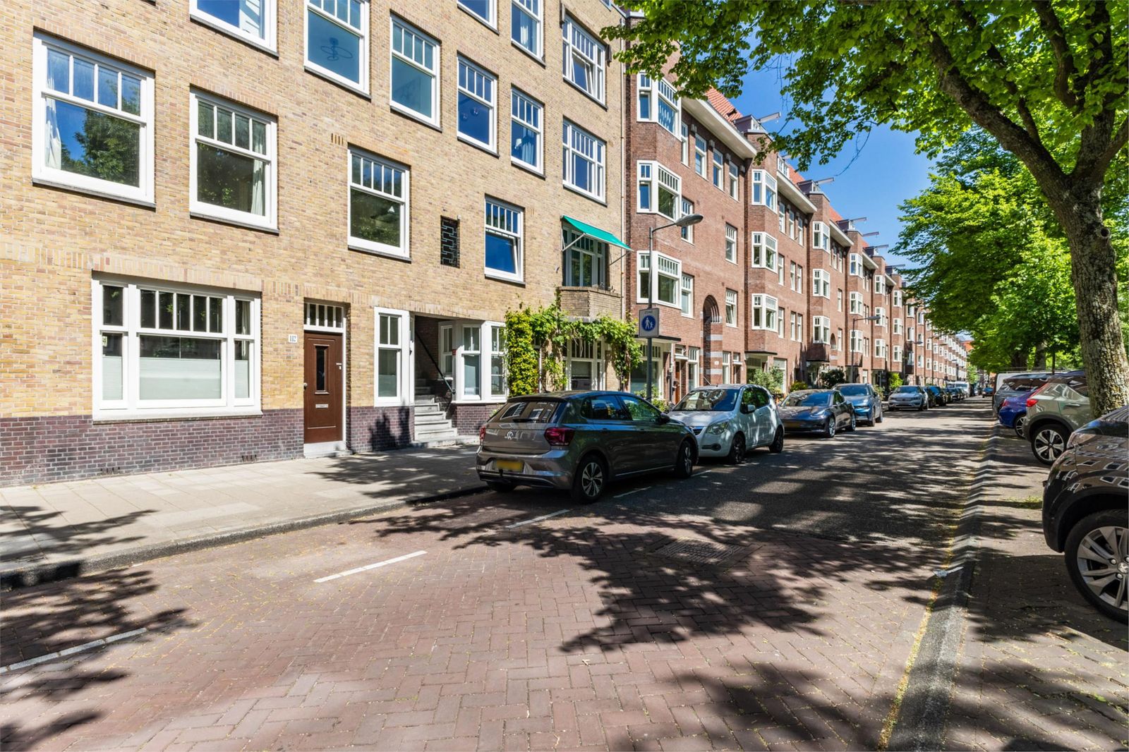 Authentiek jaren 30 drie kamer appartement op de tweede etage, met glas in lood deuren in de woonkamer ensuite, en alle originele ornamenten van het Olympisch dorp. Maar dan wel geheel geÏsoleerd met voorzetwanden, dubbel glas, en een optimale CV. De woonkamer ensuite, ook te gebruiken als twee aparte kamers, wordt gedeeld door prachtige glas in lood deuren. De achterkamer heeft nog steeds de twee grote inbouwkasten en de originele ombouw van de open haard/ gaskachel. Ook de keuken is prachtig, met een groot kook(schier)eiland, nieuwe koelkast en vaatwasser, een magnetron en heel veel kastruimte. Dit appartement heeft een actieve en gezonde professioneel beheerde VVE, en het hele pand is dan ook perfect onderhouden. De voorgevel is in 2024 met verf technisch advies geschilderd.