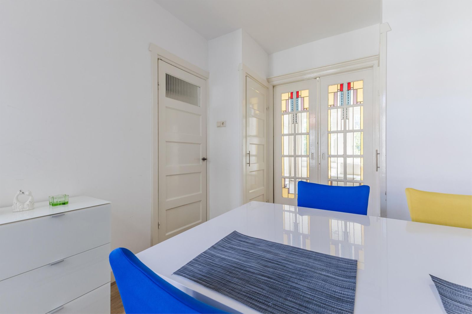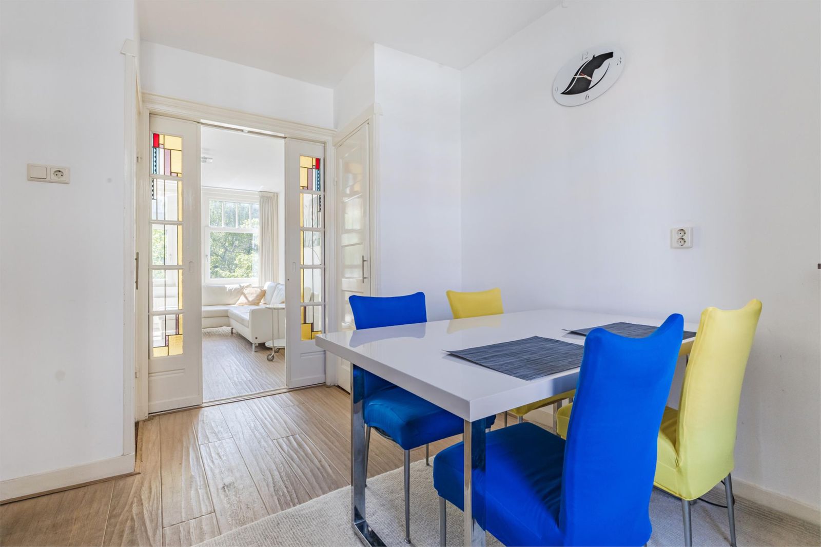 Authentic 1930s three-room apartment on the second floor, with stained glass doors in the living room ensuite, and all the original ornaments of the Olympic village. It is completely insulated with false walls, double glazing, and an optimal CV. The living room ensuite, which can also be used as two separate rooms, is divided by beautiful stained glass doors. The back room still has the two large built-in wardrobes and the original conversion of the fireplace / gas stove. The kitchen is also beautiful, with a large cooking (peninsula) island, new refrigerator and dishwasher, a microwave and lots of cupboard space. This apartment has an active and healthy professionally managed VVE ( Owners Society ), and the entire building is therefore perfectly maintained. The front facade was painted in 2024 with paint technical advice.