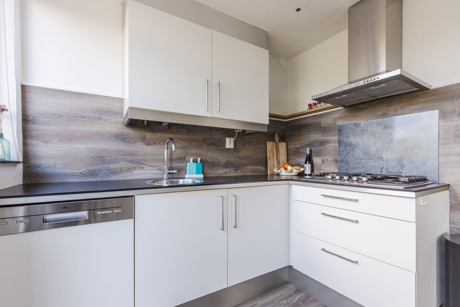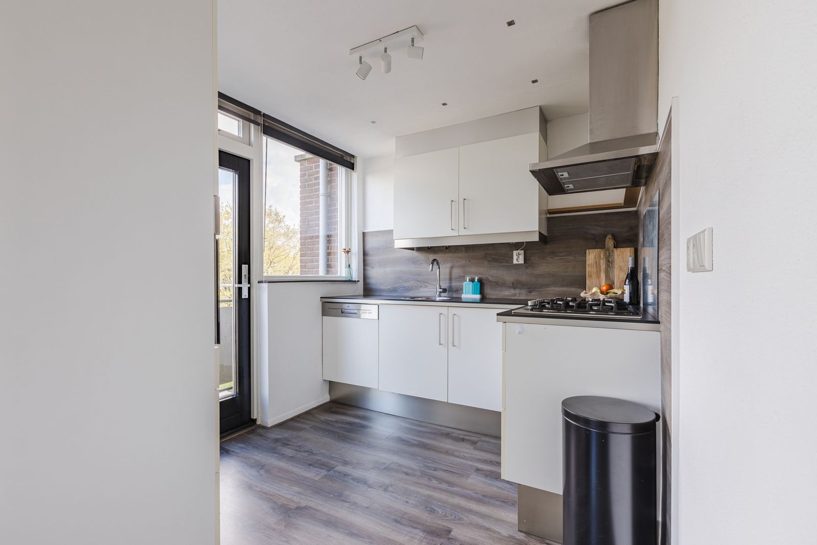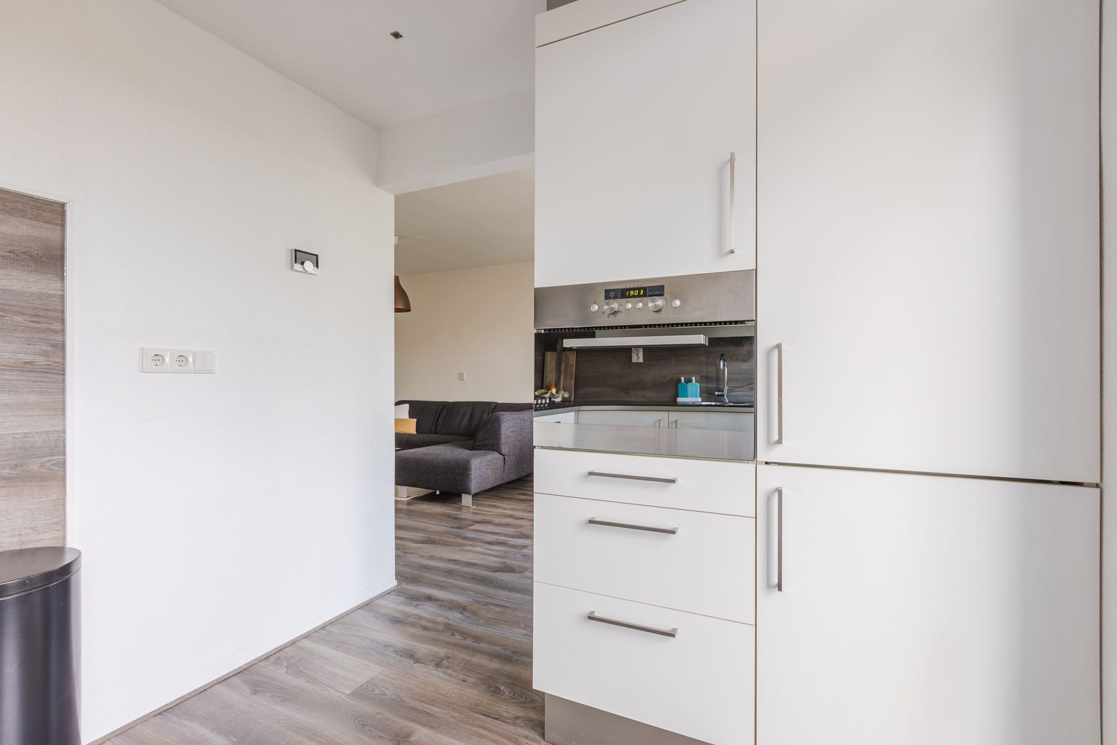 De keuken is voorzien van moderne inbouwapparatuur (5-pits gasfornuis, combi-oven, koel-vriescombinatie en vaatwasser uit 2025) en geeft toegang tot het balkon op het noorden.