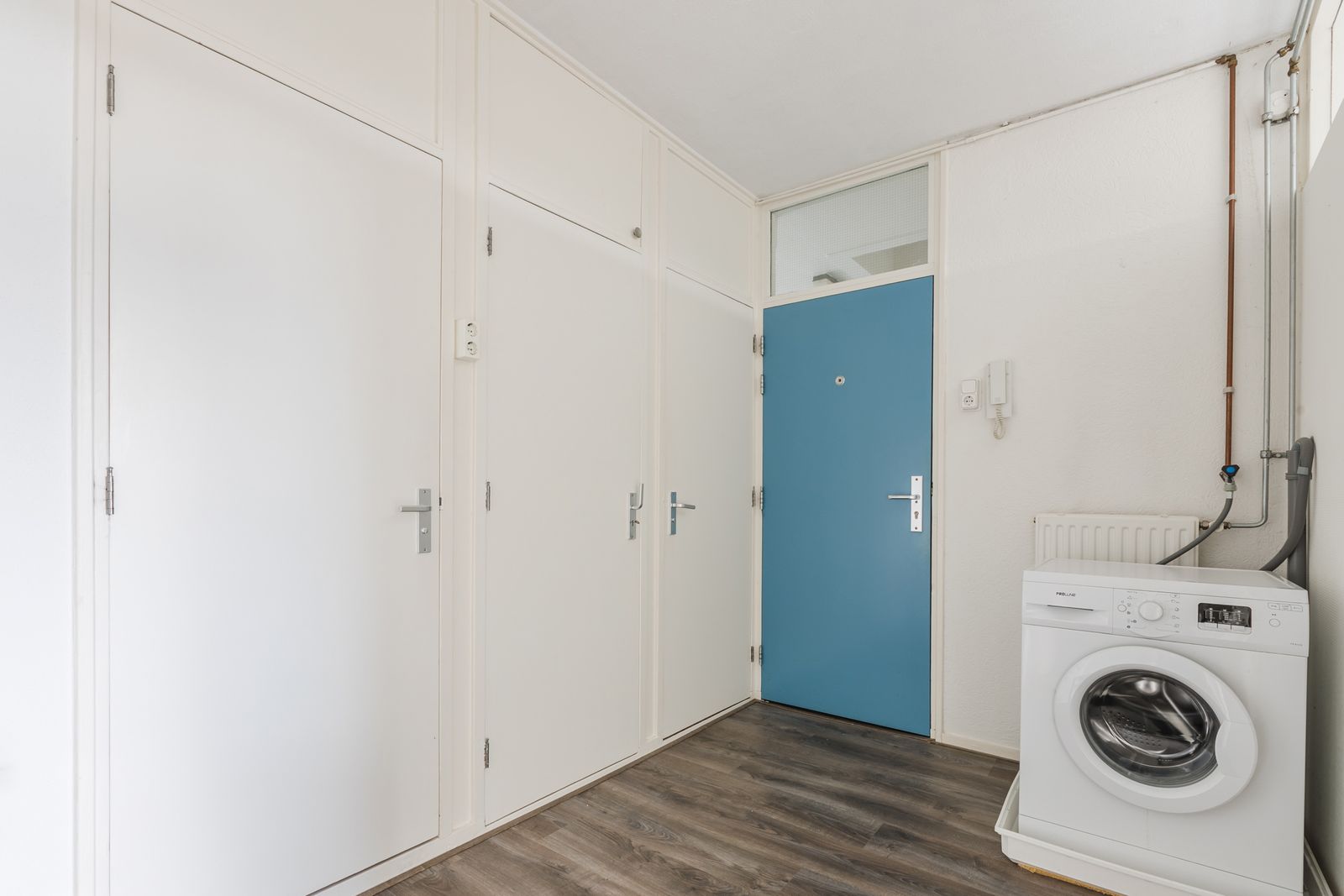 U komt binnen via de centrale, afgesloten hal met intercom.