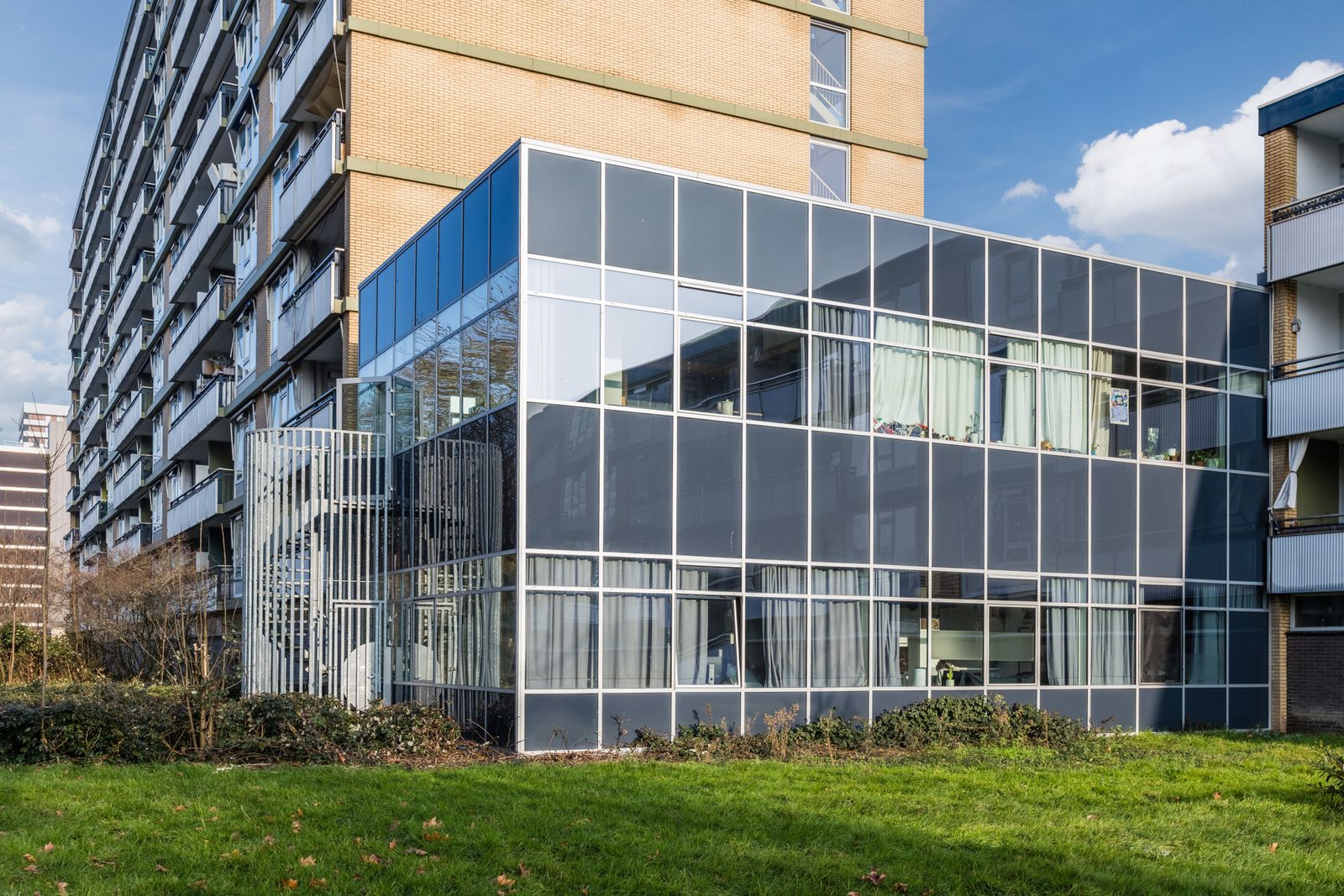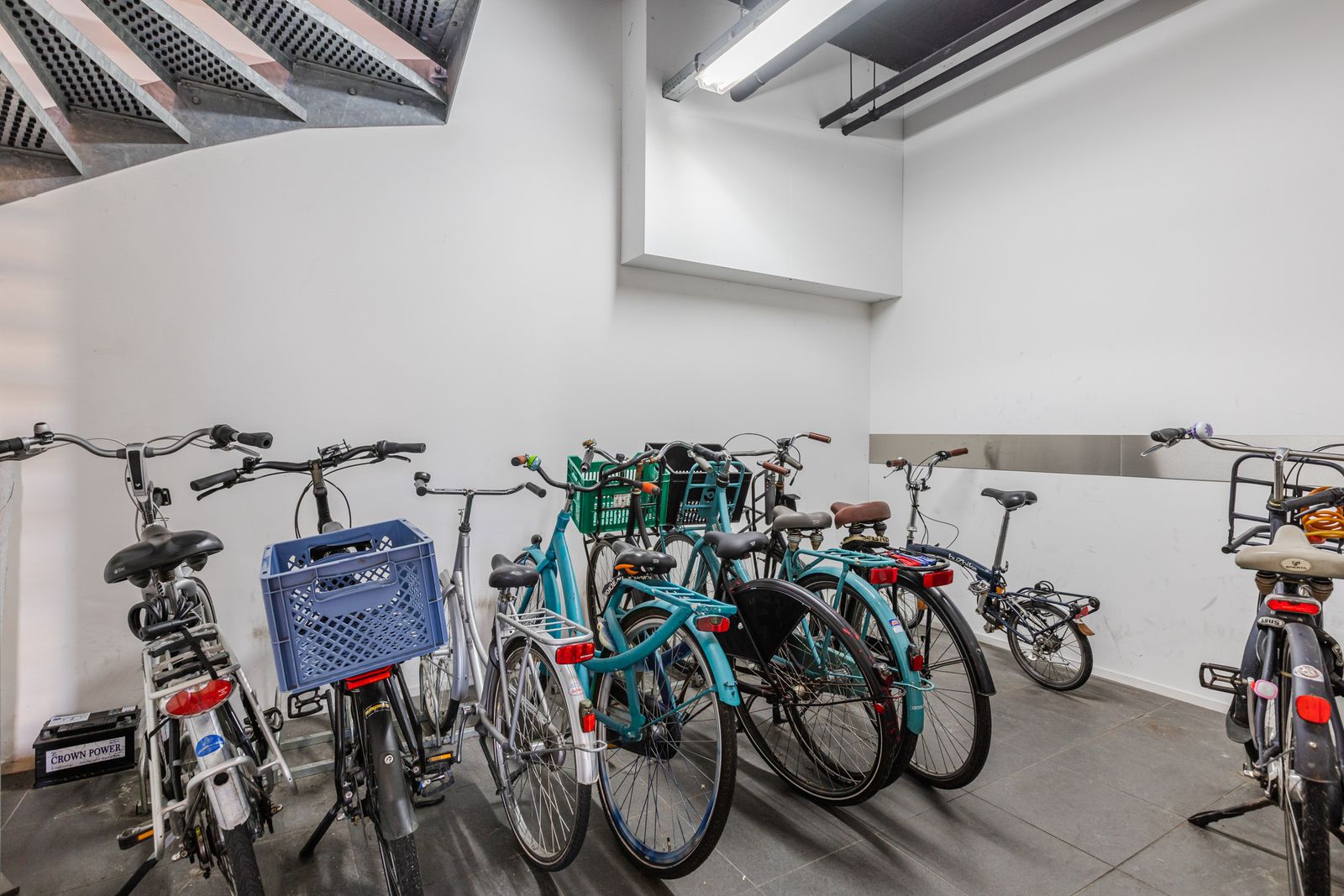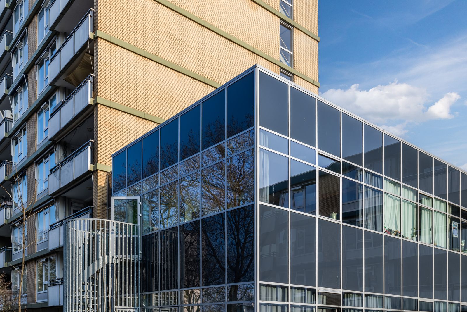 De studio is gelegen op de eerste verdieping en bevindt zich in een rustig deel van het gebouw, waar alleen bewoners komen die er daadwerkelijk moeten zijn. De hoge ruimte en grote raampartijen zorgen de hele dag voor veel daglicht en een prettige woonbeleving.