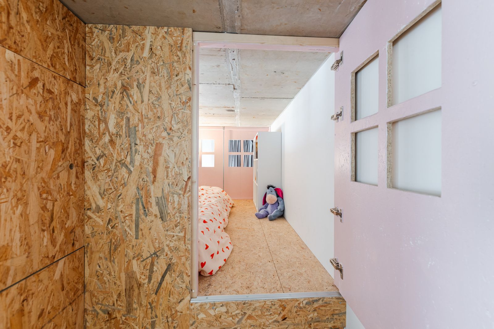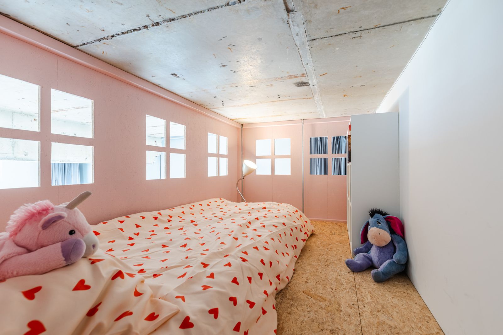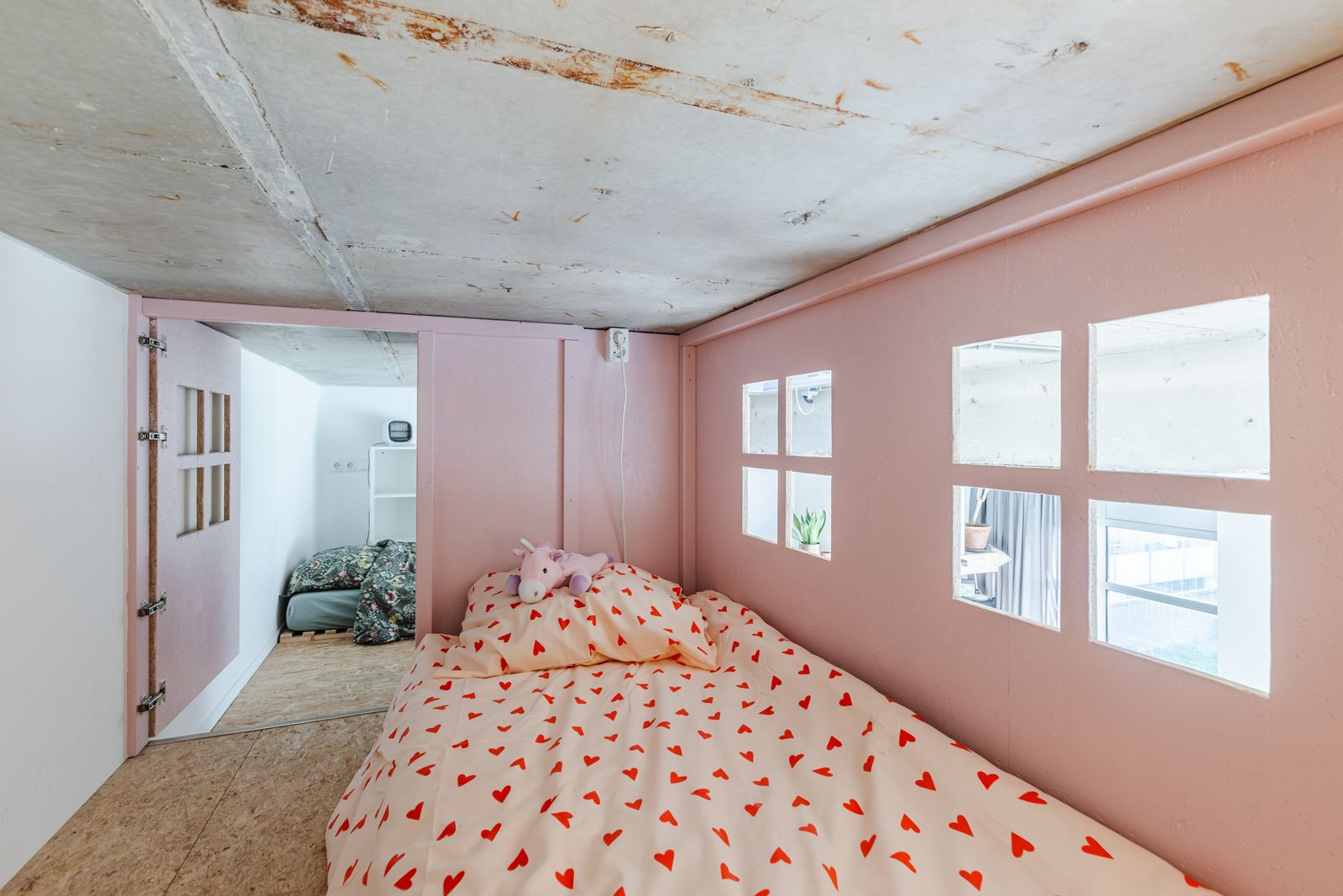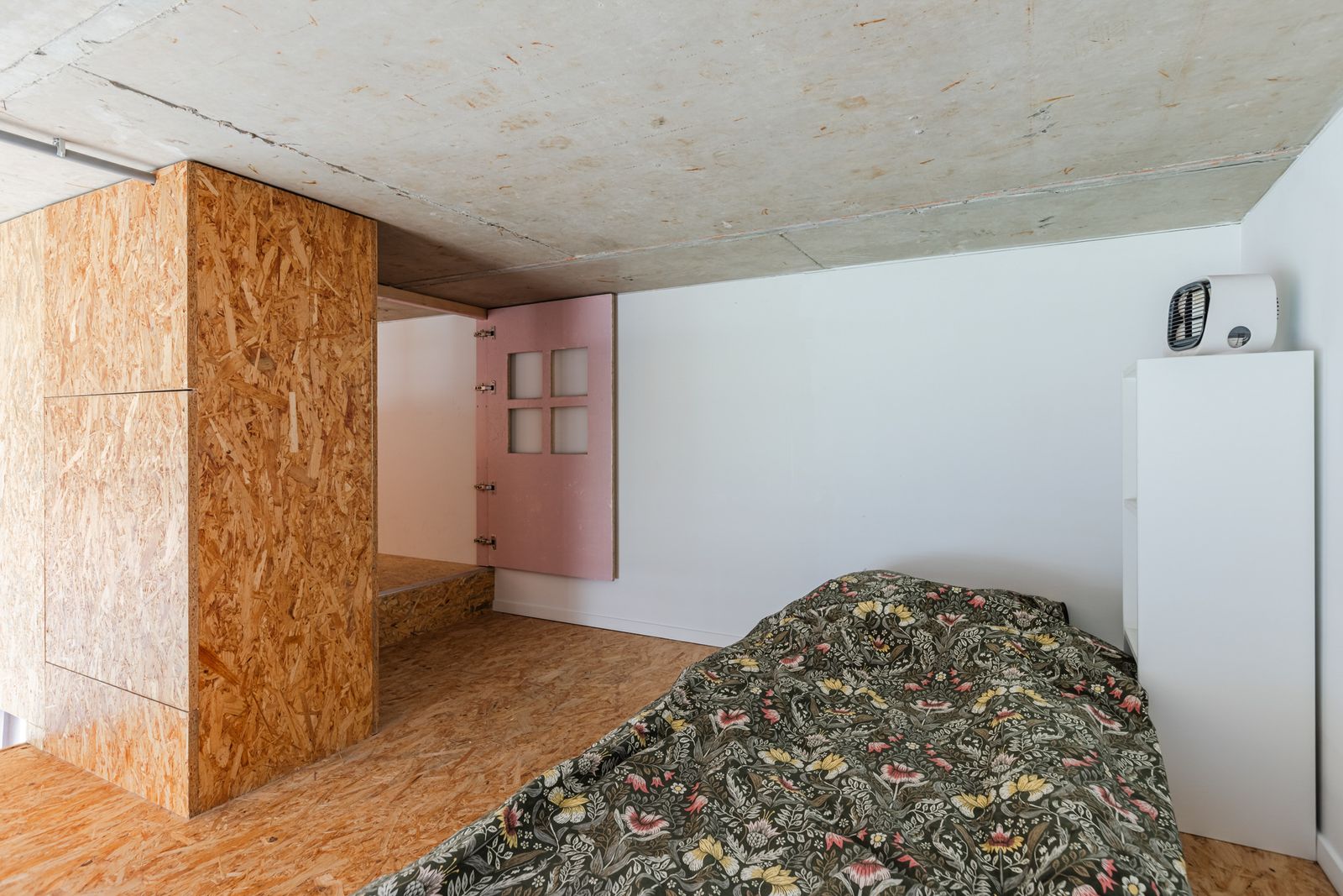 In de studio bevindt zich een vide die niet alleen een fijne slaapplek biedt, maar in 2023 aan twee zijden uitgebreid is, waardoor er opvallend veel extra bergruimte is ontstaan.