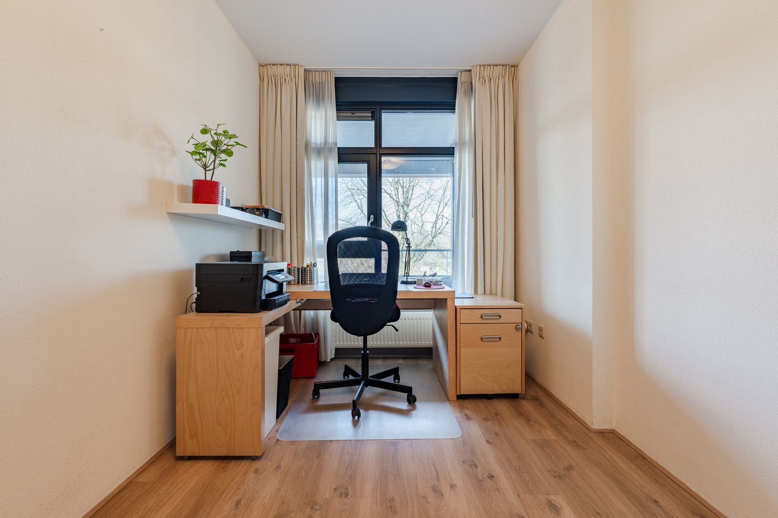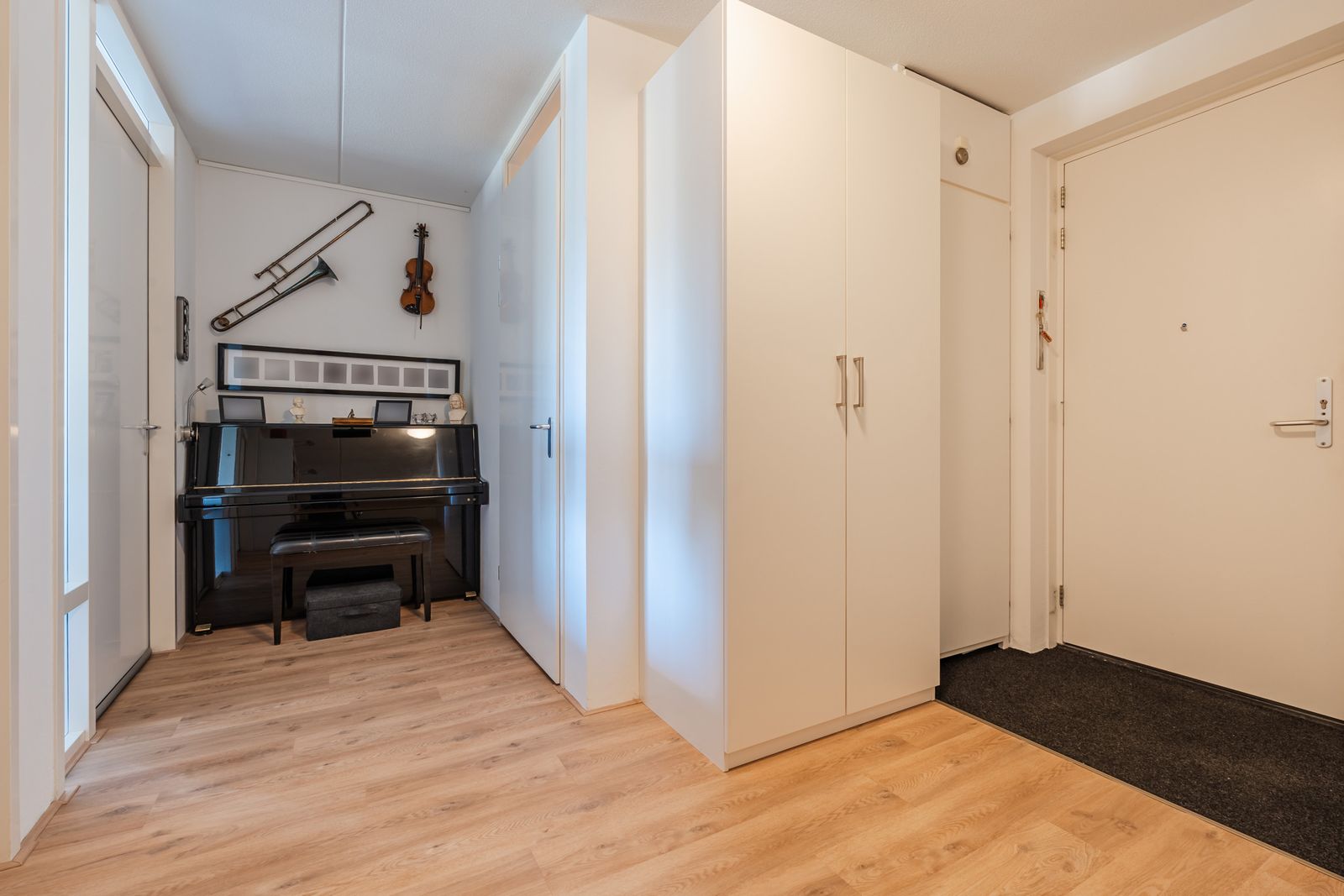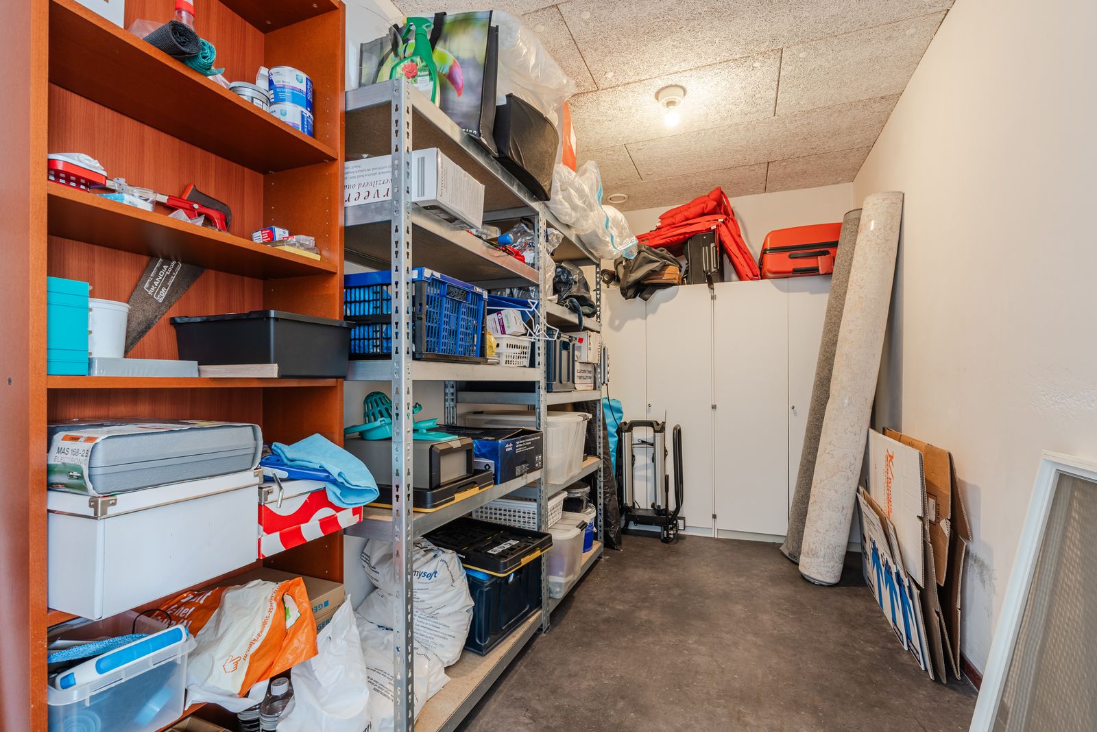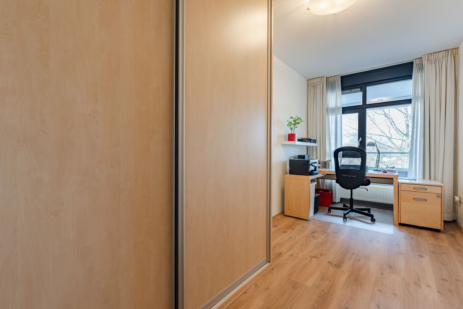 In de grote slaapkamer bevindt zich een grote linnenkast met een spiegeldeur. In de kleine slaapkamer is een grote vaste schuifdeurkast.