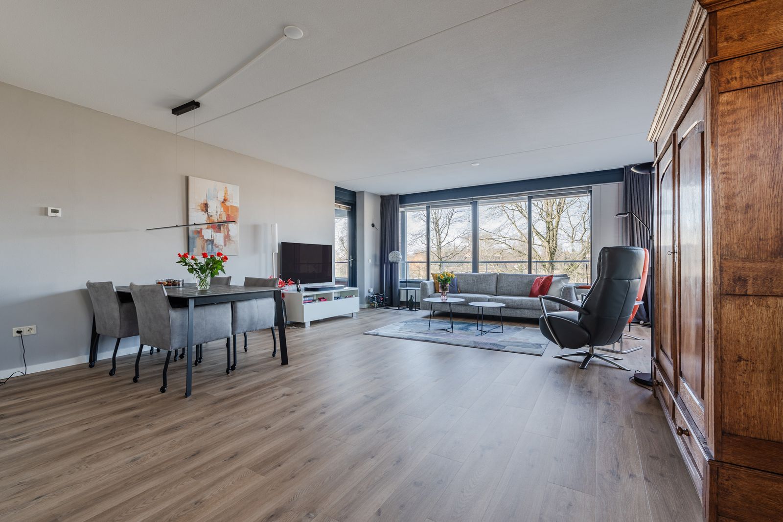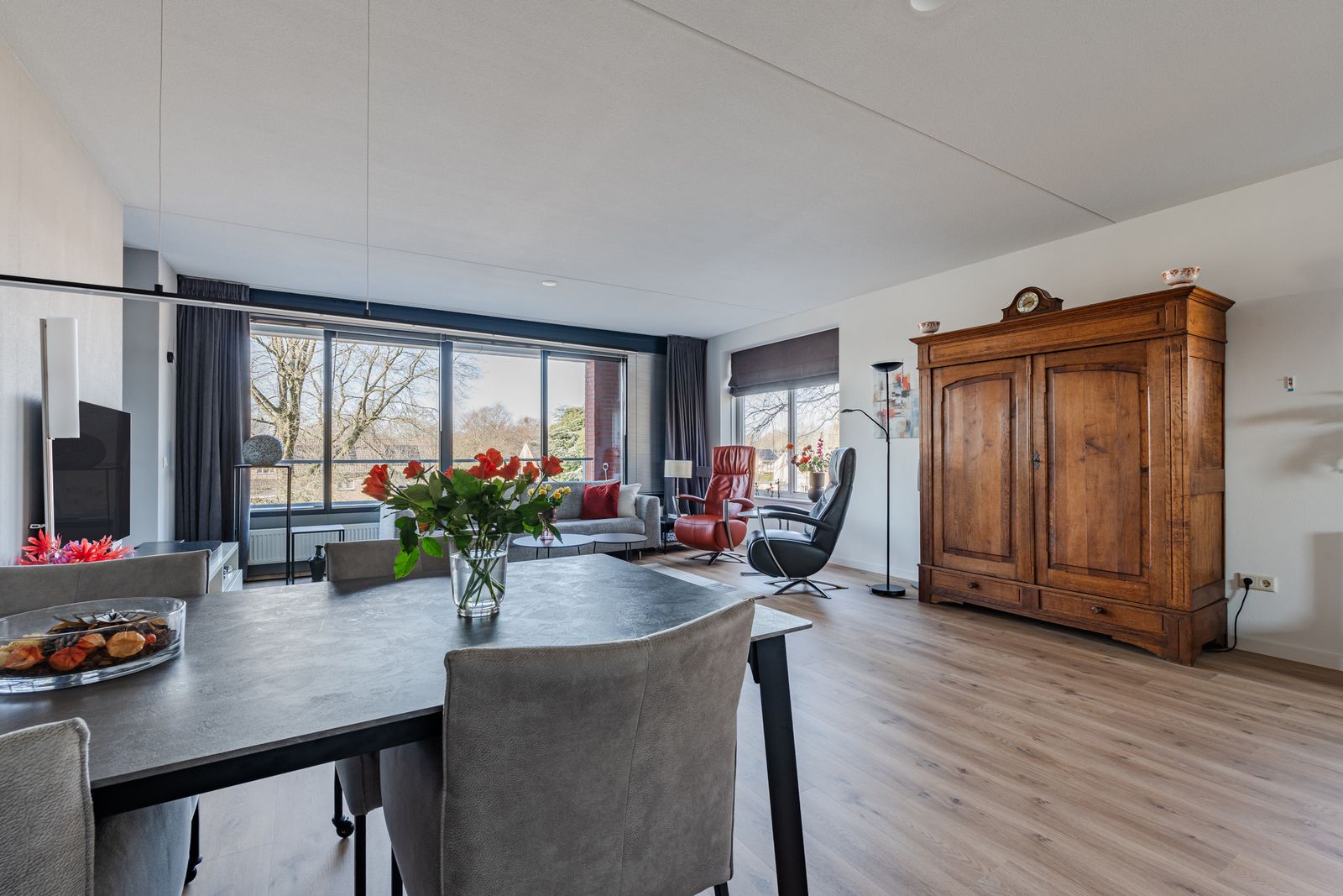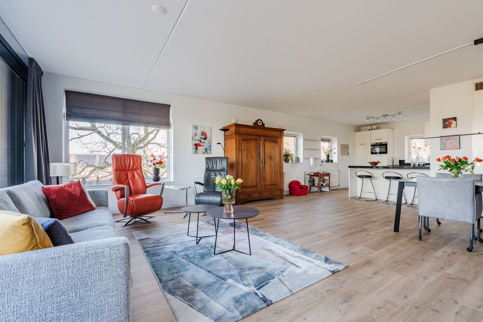 Het gehele appartement heeft een prachtige lichte eiken PVC vloer ( 2021), nieuwe elektrisch bedienbare screens ( 2025 ) , luxaflex en horren voor alle ramen.