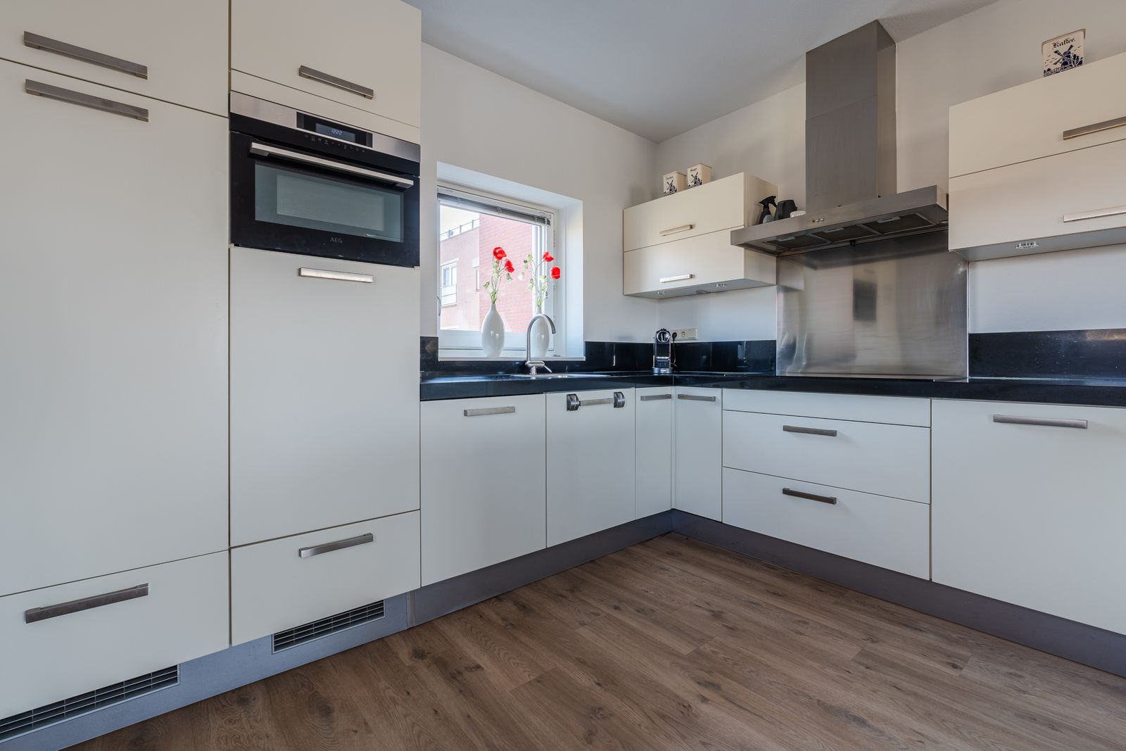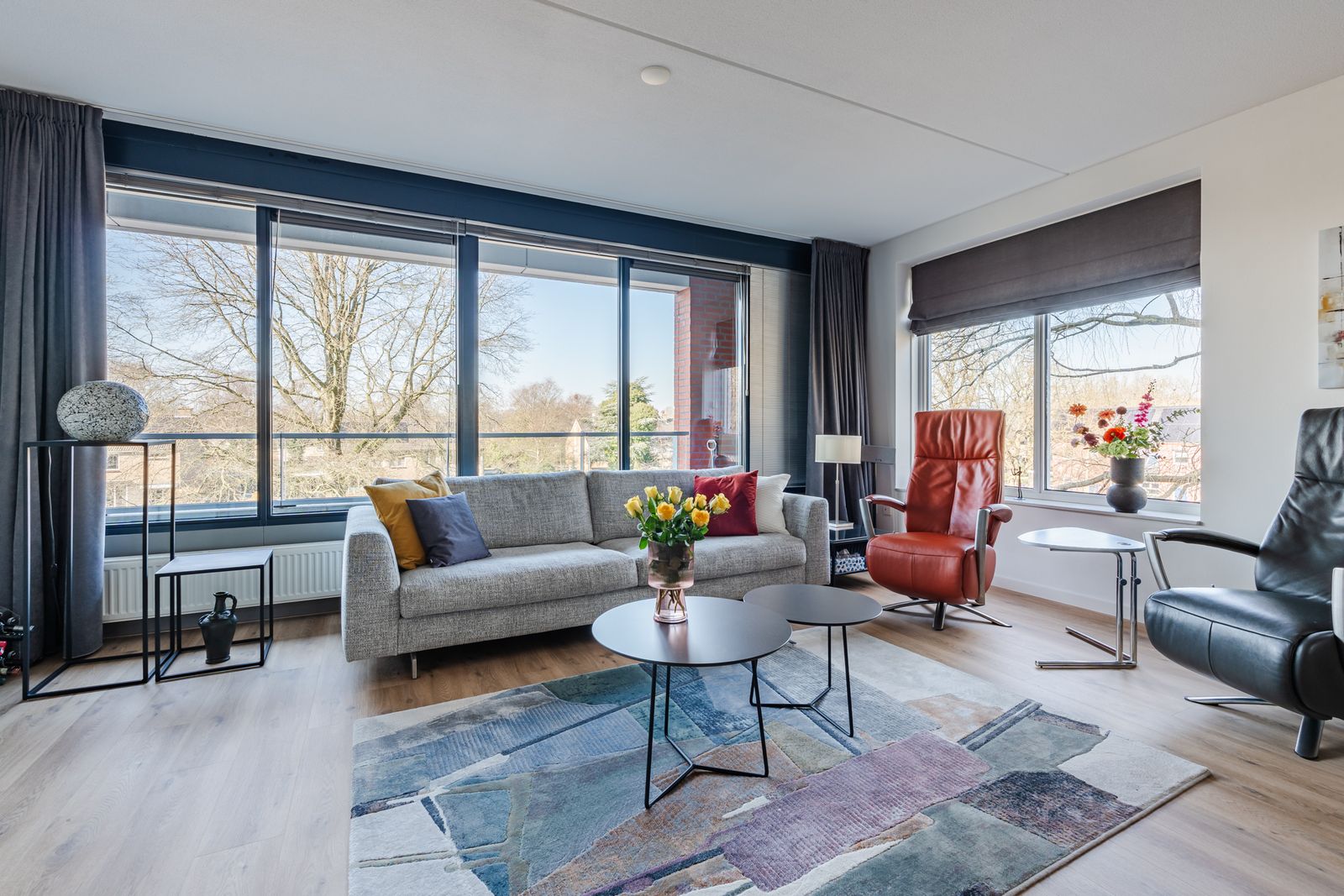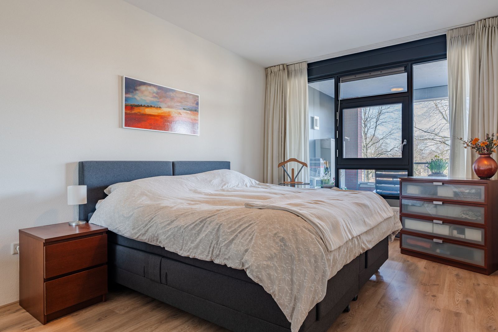 Het gehele appartement heeft een prachtige lichte eiken PVC vloer ( 2021), nieuwe elektrisch bedienbare screens ( 2025 ) , luxaflex en horren voor alle ramen.